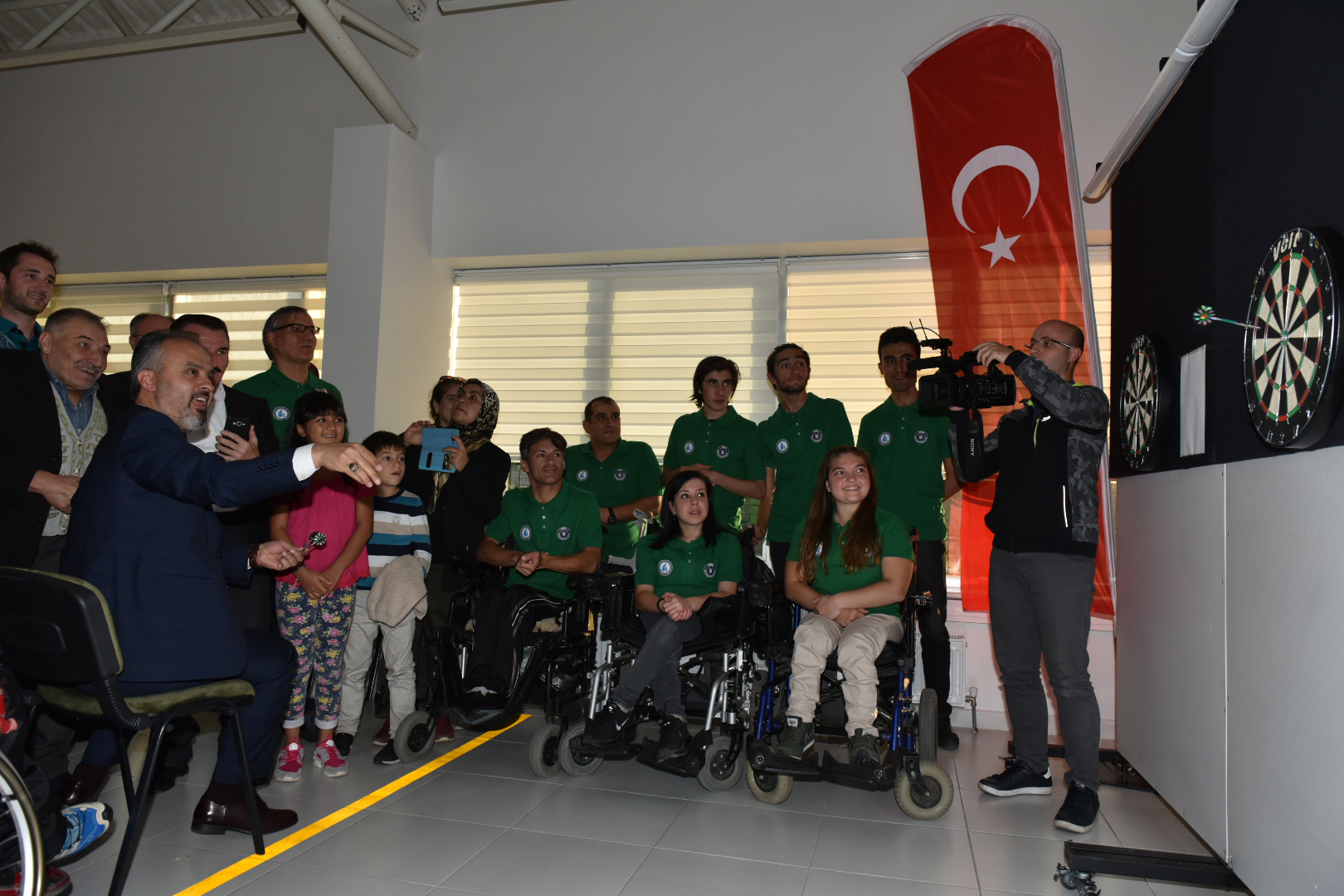 Konuşmaların ardından eline dart alan Başkan Aktaş, ilk atışları da kendisi yaptı. Şartları eşitlemek için sandalyeye oturup, atış yapan Başkan Aktaş, Milli sporcu Dart Antrenörü Nihat Demir’in de verdiği taktiklerle hedefi tutturmayı başardı. Engelli gençlerin atışlarını da izleyen Başkan Aktaş, tören sonunda sporculara çeşitli hediyeler verdi.