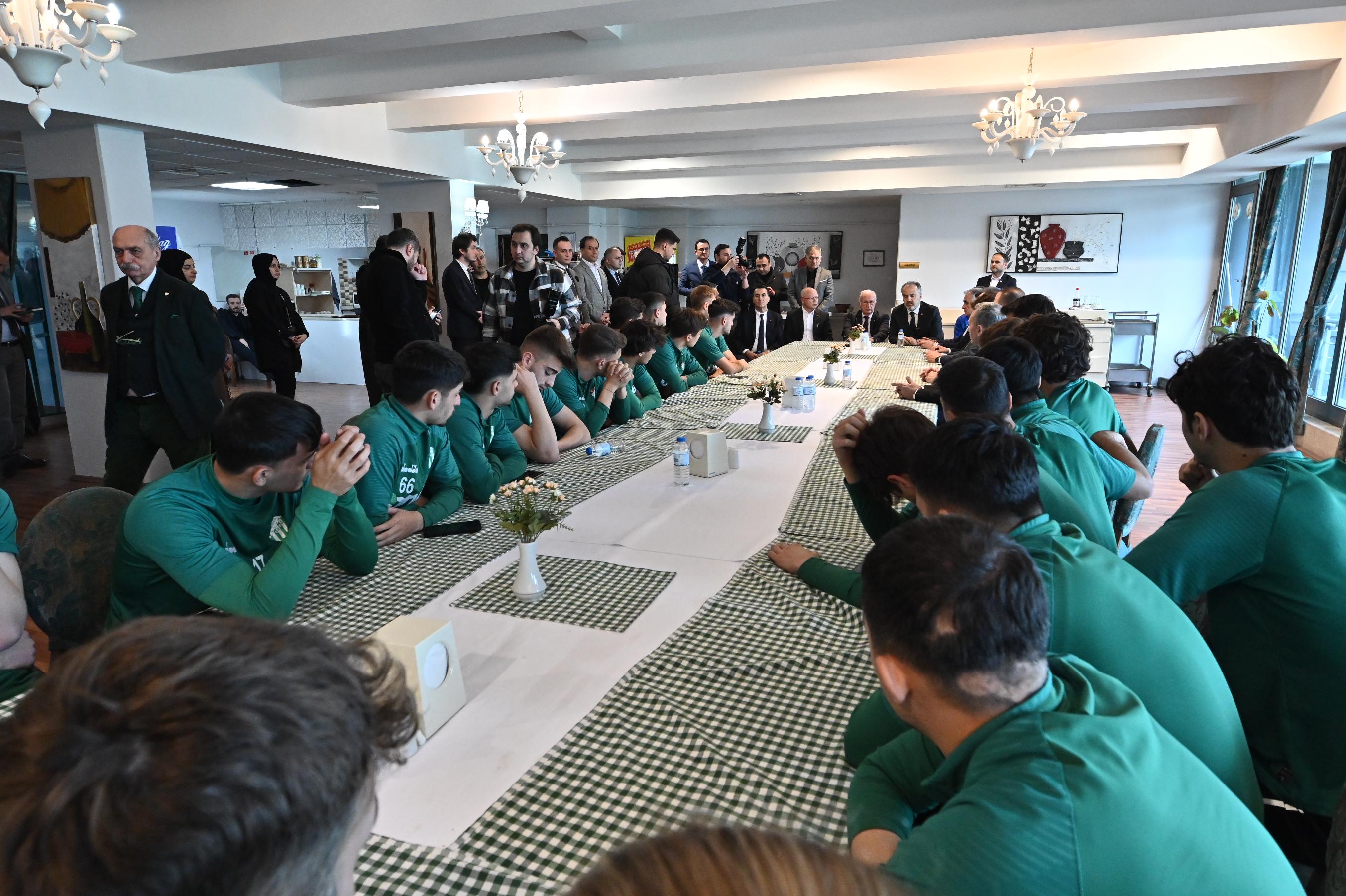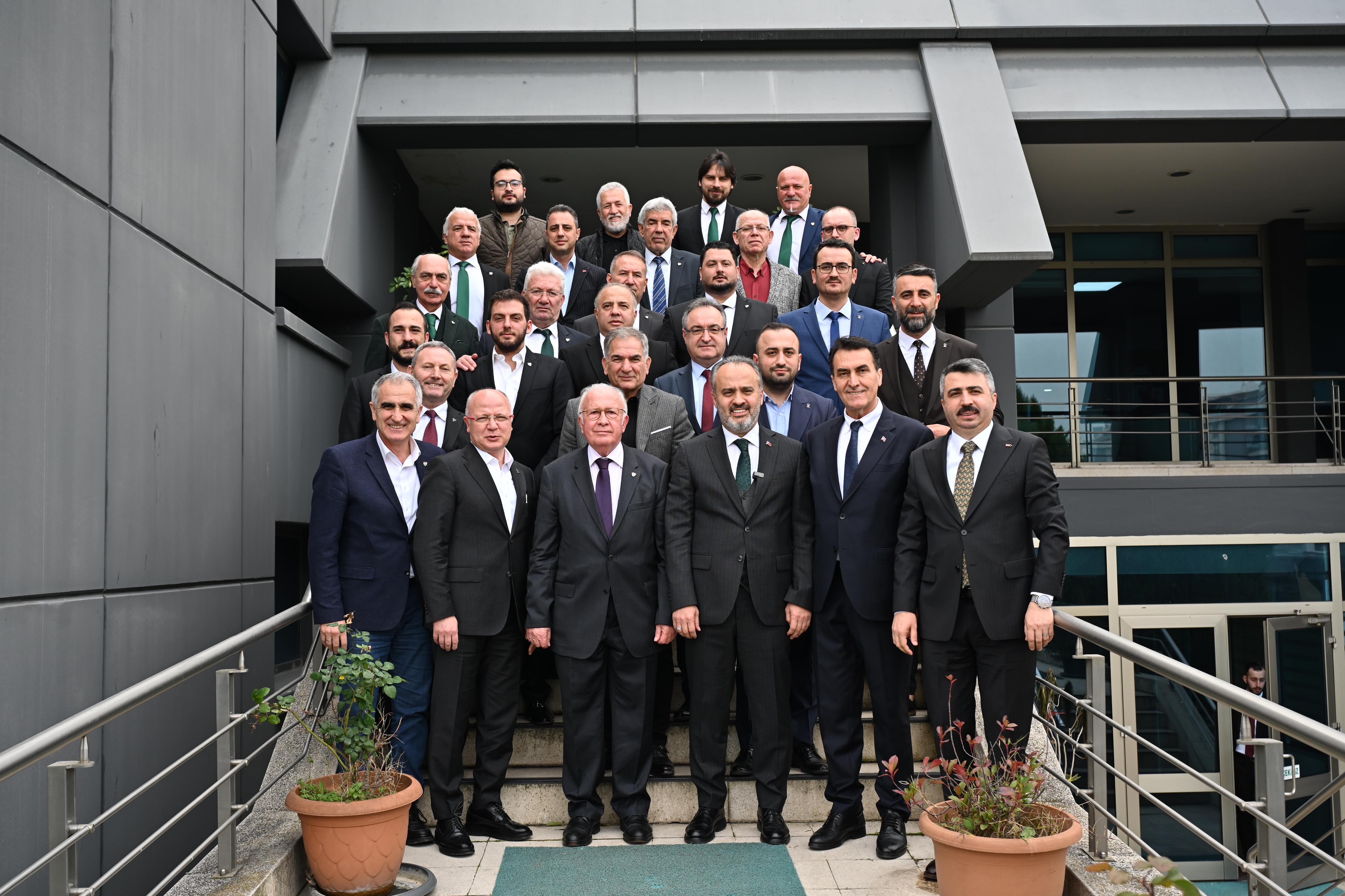 Bursa Büyükşehir Belediye Başkanı Alinur Aktaş, beraberindeki AK Parti İl Başkanı Davut Gürkan, MHP Bursa İl Başkan Yardımcısı Ali Cansevdi, Osmangazi Belediye Başkanı Mustafa Dündar, Yıldırım Belediye Başkanı Oktay Yılmaz, AK Parti Nilüfer Belediye Başkanı adayı Celil Çolak, AK Parti Nilüfer İlçe Başkanı Furkan Alpaslan ile birlikte Özlüce Tesisleri’nde Bursaspor Kulübü’ne iade-i ziyarette bulundu.