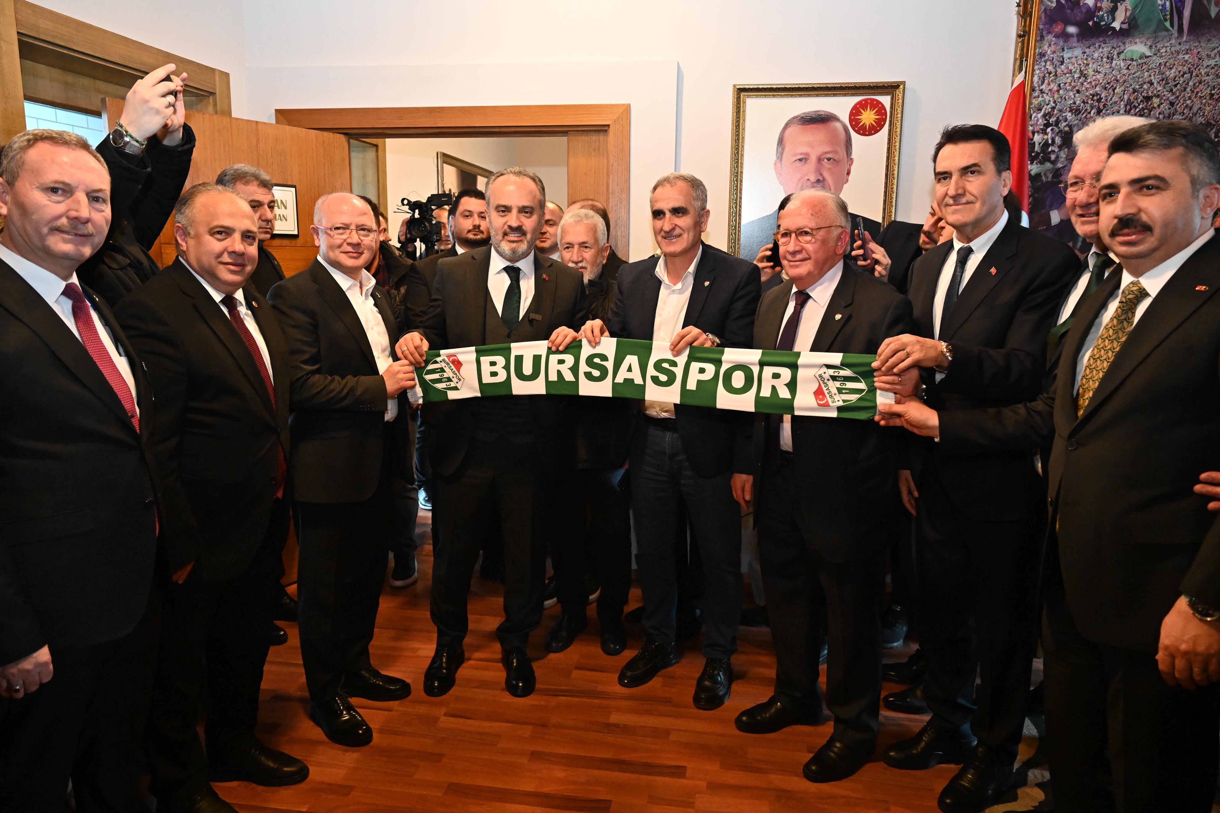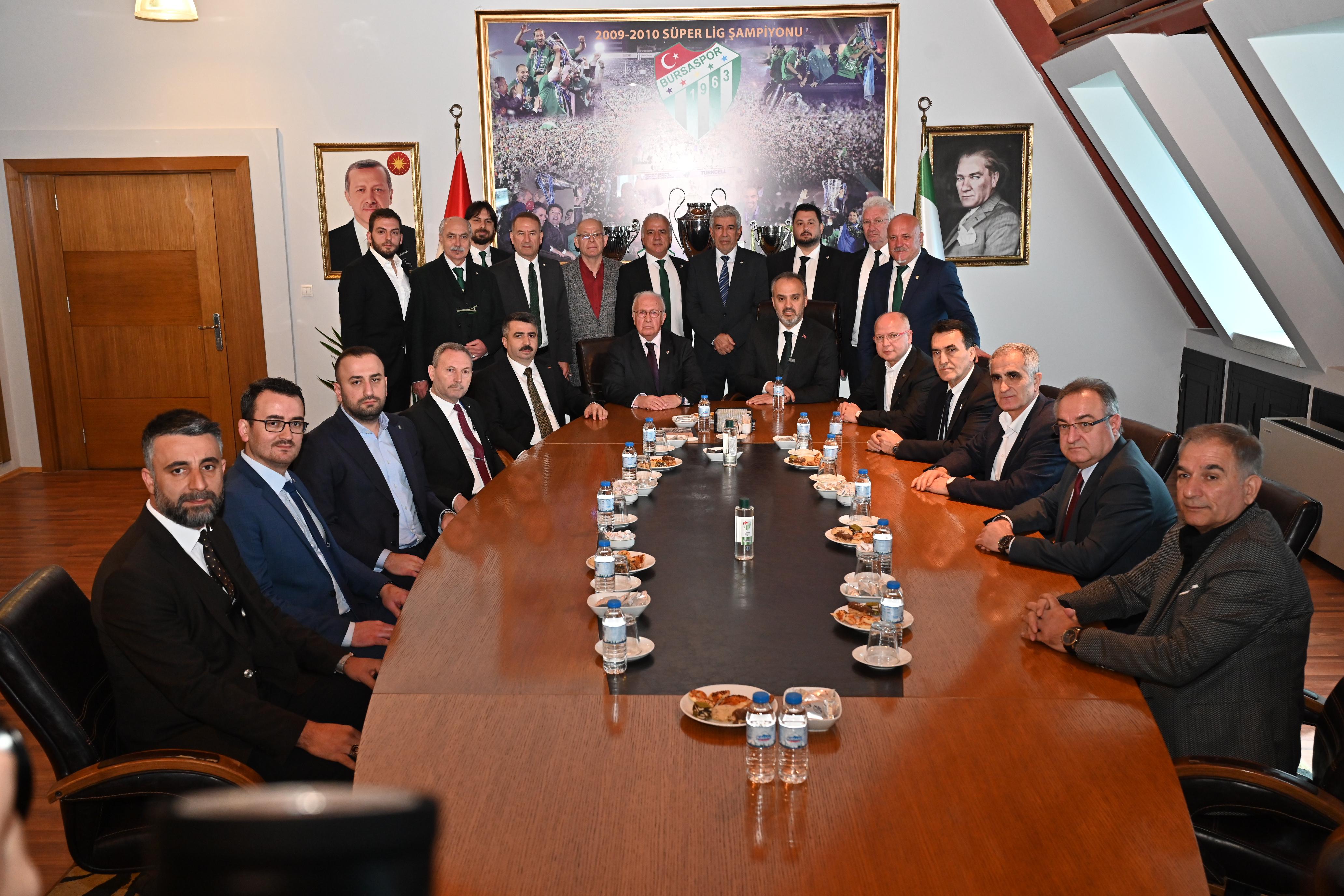 Bursaspor Başkanı Sinan Bür ve yönetim kurulu üyelerinin yer aldığı ziyarette konuşan Büyükşehir Belediye Başkanı Alinur Aktaş, Bursaspor forması için ter akıtan herkesin Bursa’nın evladı olduğunu söyledi. Matematiksel olarak en altta olunmasına rağmen sezon sonunda başarıya ulaşılacağına inandığını belirten Başkan Aktaş, “Ben Bursaspor’u çok seviyorum. Bursaspor'un bu şehrin bir reklam yüzü, bir markası olduğunu çok iyi biliyorum. Bursa'nın tüm dinamiklerini kalan 11 haftasında takımımıza odaklanmasını ve destek vermesini istiyorum. Bizim Bursaspor için kurumsal bir bakış açısına, kısa, uzun ve orta vadede planlara ihtiyacımız var. Biraz inanç ve kenetlenmenin bu haftadan itibaren bizlere çok önemli değişiklikler getireceğine inanıyorum. Kara sayfaları kapatıp yepyeni sayfalar açmak lazım. Buca maçını kazanmak adına her şeyi yapmalıyız. İnşallah coşkuyu hep birlikte soyunma odasında yaşarız. Buca maçı bir şeyleri değiştirmek adına çok önemli bir başlangıç” dedi.