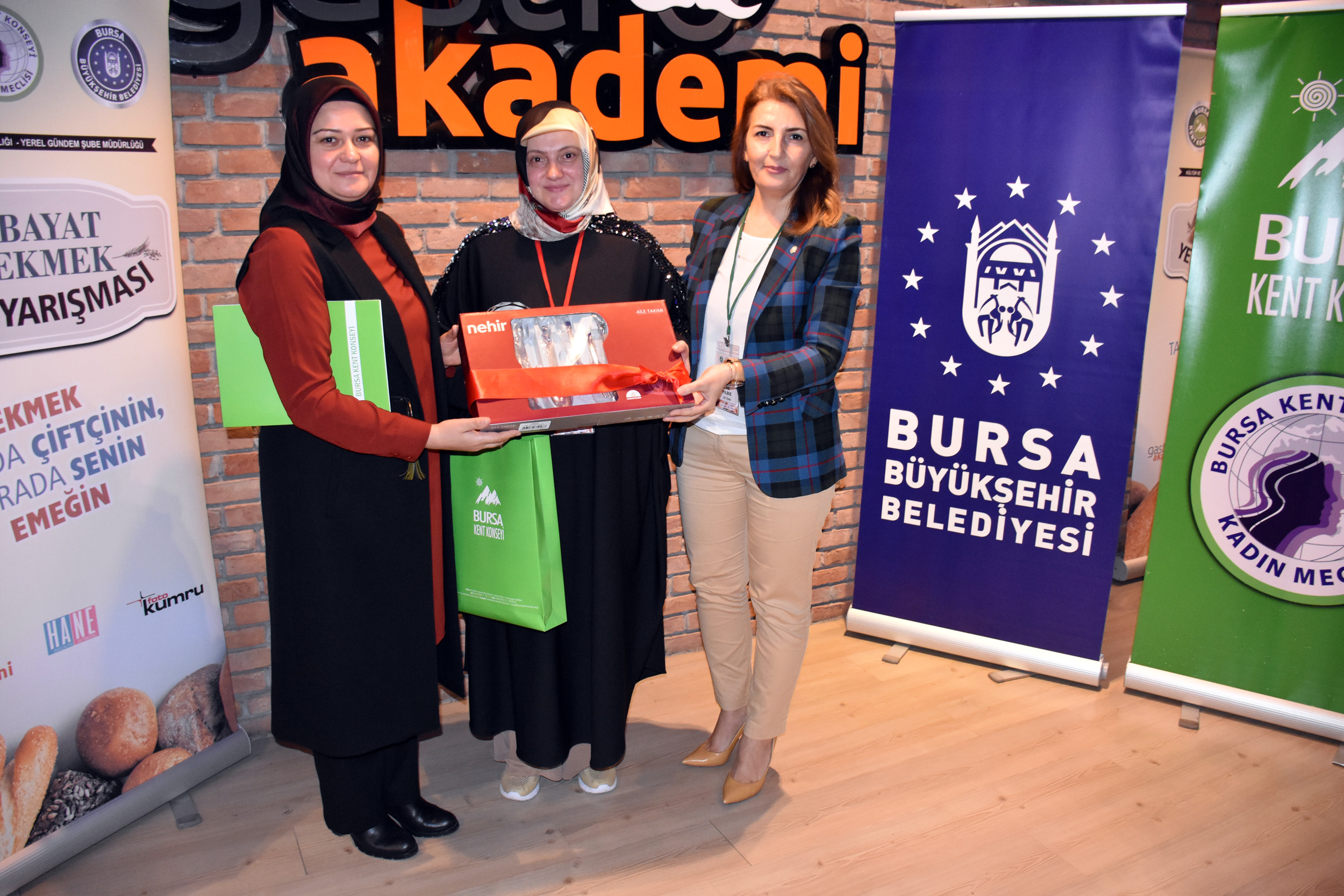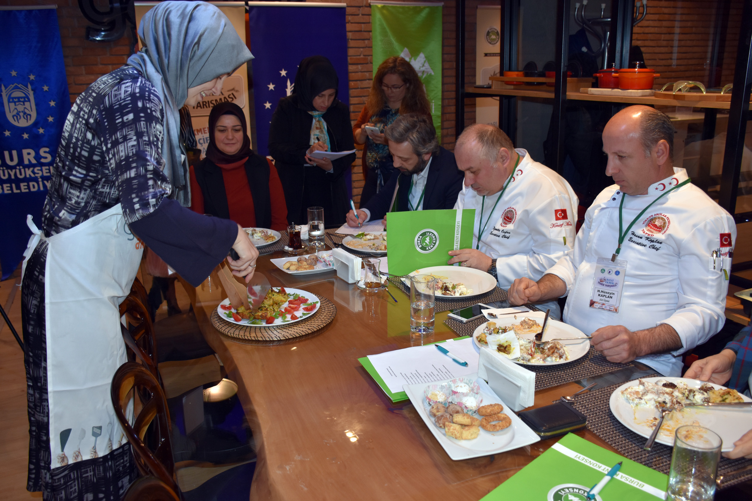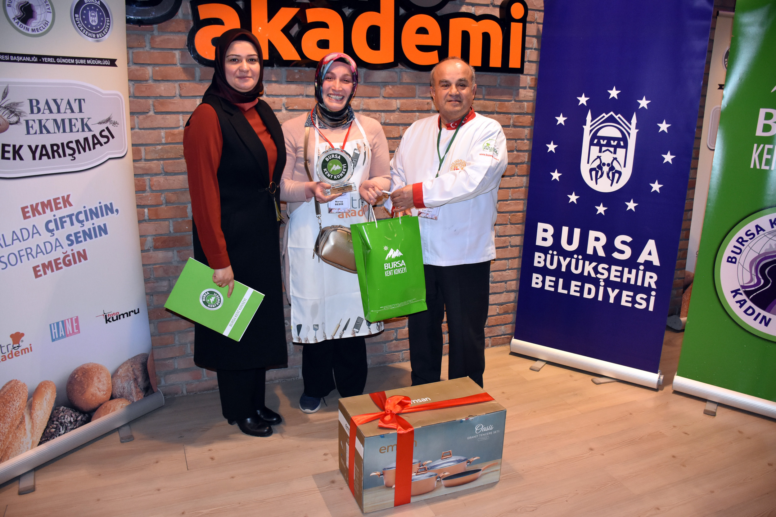 Ekmek israfına dikkat çekmek amacıyla Bursa Kent Konseyi Kadın Meclisi’nin ‘Ekmek, Tarlada Çiftçinin Sofrada Senin Emeğin’ sloganı ile düzenlendiği ‘Bayat Ekmek Yemek Yarışması’nda dereceye girenler belli oldu. Onlarca ev hanımının bayat ekmekleri kullanarak hünerlerini sergilediği yarışmanın jüri üyeliklerini ise Nizamettin Ceylan, Hasan Hüseyin Kaplan, Reşat Kahrıman, Recep Hakan Ziya ve Lale Yıldız gerçekleştirdi. Yapılan jüri değerlendirmesi sonucunda birinci olan Fatma Çiftçi’ye sürahi takımı, ikinci olan Nuray Bedir’e tencere takımı ve üçüncü olan Hatice Yıldız’a çatal-kaşık-bıçak takımı verildi. Mansiyon kazanan Esra Aydı ile Necla Kaplan Yörüklü’ye ise masa örtüsü ve tava takdim edildi.