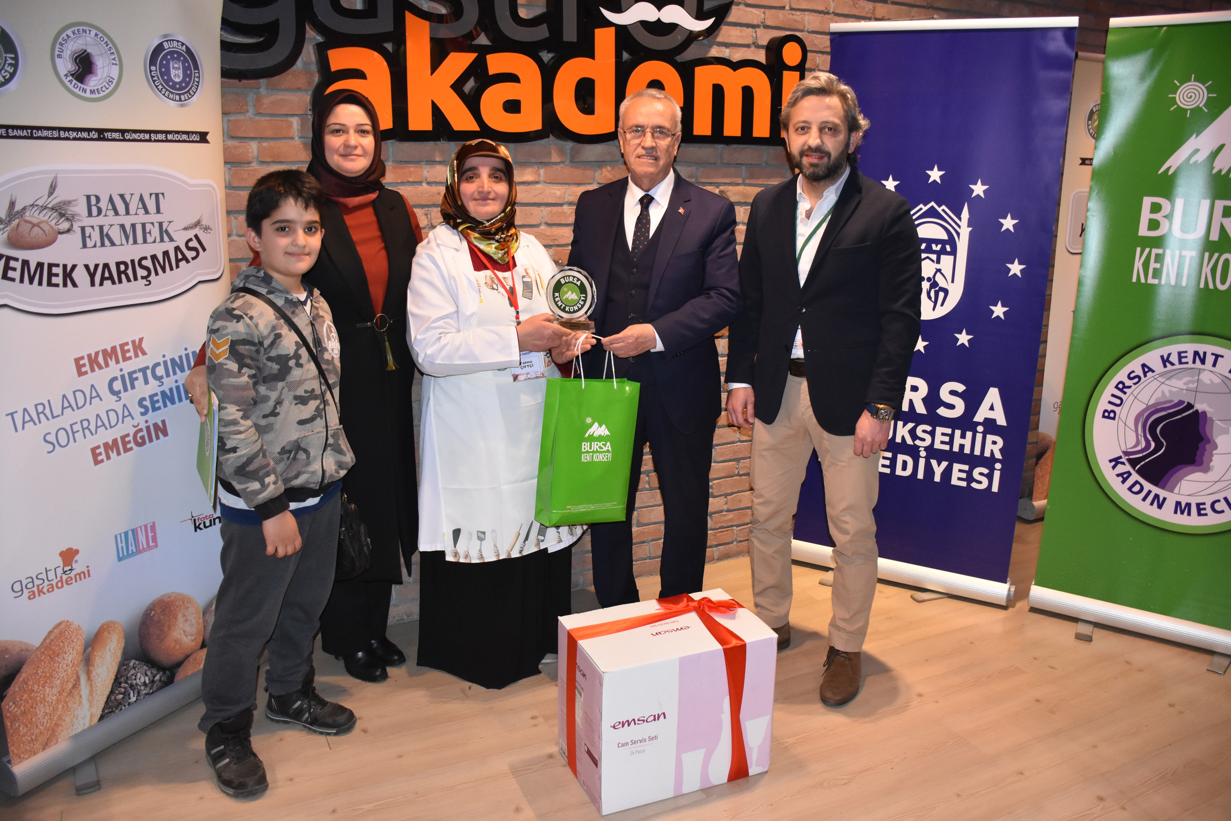Yarışmada dereceye giren ve mansiyon alanlara ödüllerini, Bursa Kent Konseyi Başkanvekili Şuayip Toprak ve Kadın Meclisi Başkanı Mihrimah Kocabıyık teslim etti. Bayat Ekmek Yemek Yarışması’na verdiği desteklerden ötürü Gastro Akademi Kurucusu Recep Hakan Ziya’ya da protokol üyeleri tarafından teşekkür plaketi takdim edildi.