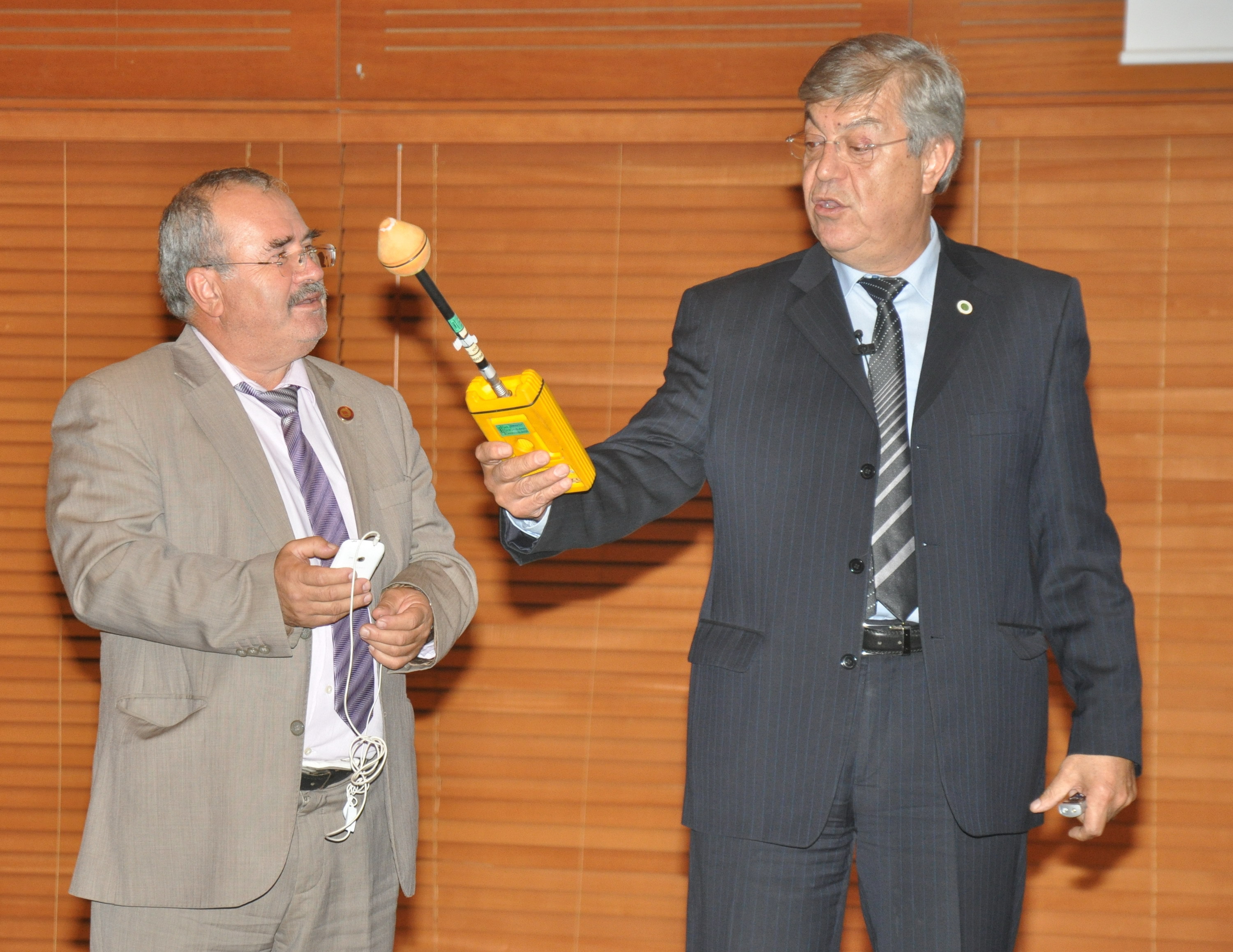 Konuşmasının sonuna salondan bir katılımcıyı yanına çağırarak cep telefonu üzerinde ölçüm yapan Kalkan, değerin 2.14 altında çıktığını, telefonun arama yaptığında ise değerin 11.28’e çıktığını gösterdi.