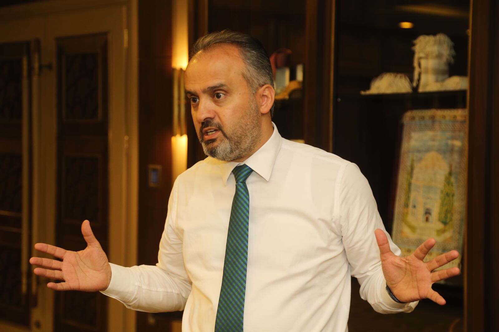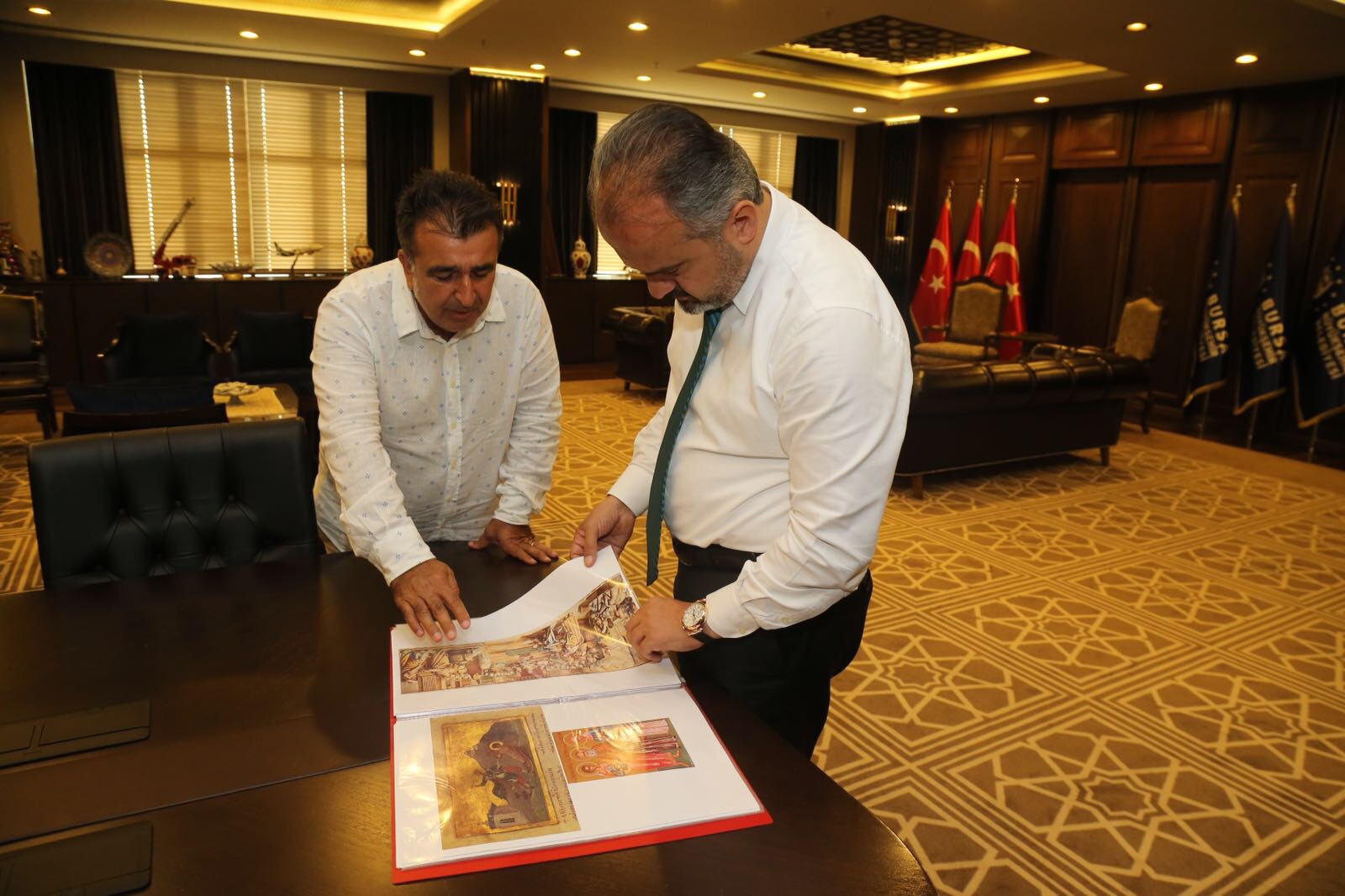 Uludağ Üniversitesi Fen Edebiyat Fakültesi Öğretim Üyesi ve Arkeoloji Bölüm Başkanı Prof. Dr. Mustafa Şahin’i ağırlayan Başkan Aktaş, 1500 yıllık bazilikada ‘Büyükşehir Belediyesi, Kültür ve Turizm Bakanlığı ve Uludağ Üniversitesi’yle ortaklaşa’ sürdürülen kazı faaliyetleri ile bölgeye kazandırılması düşünülen müze projesini değerlendirdi.