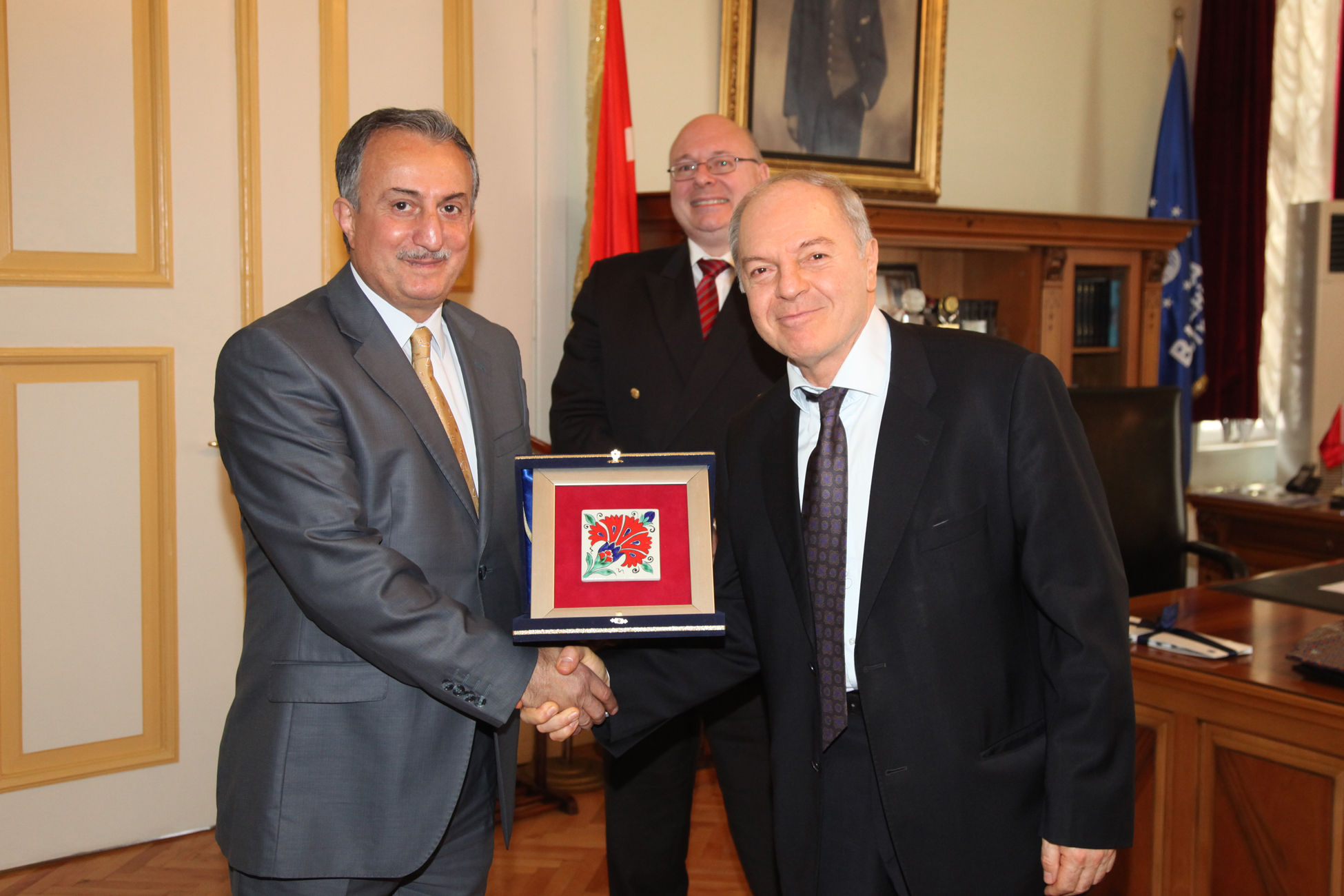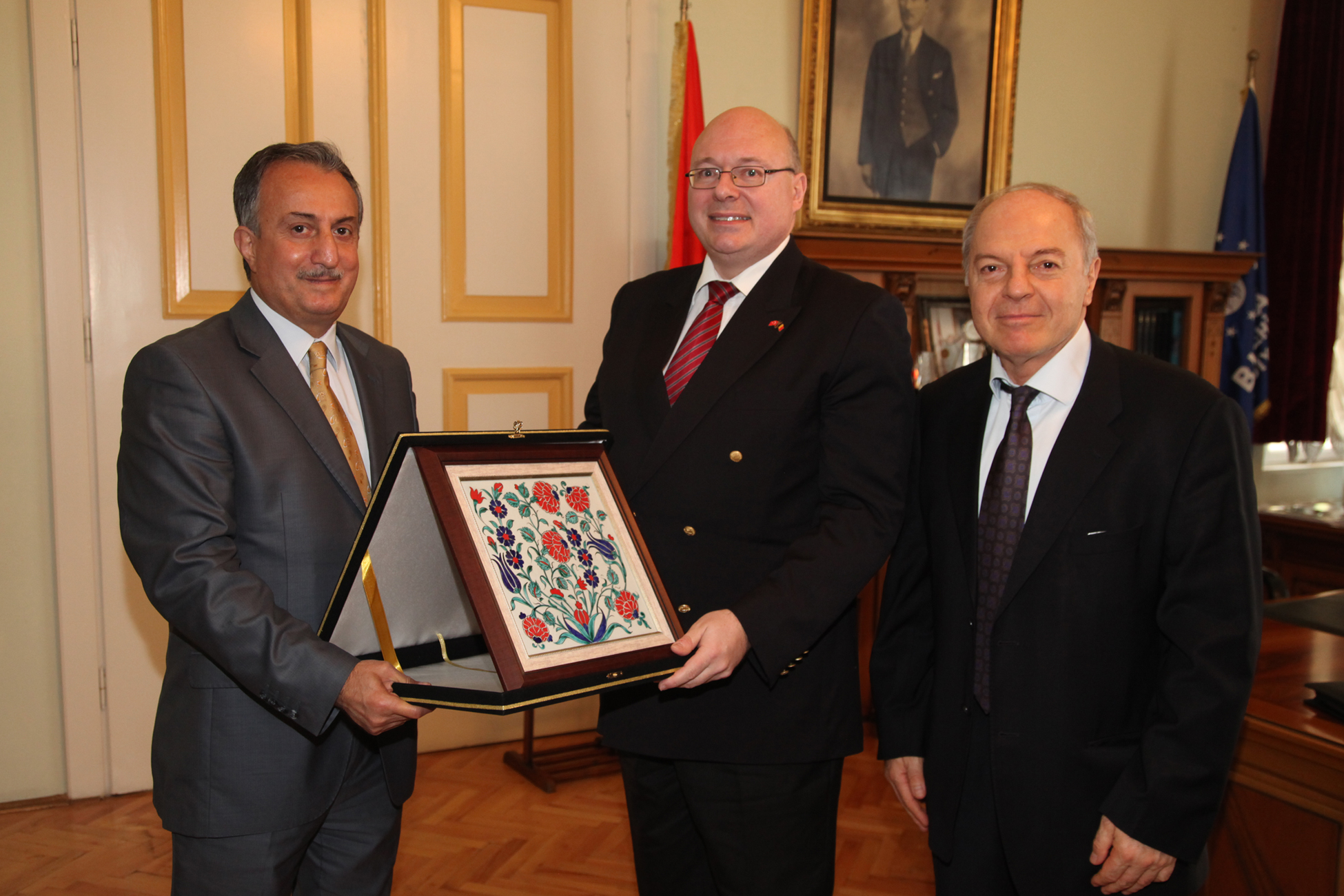 Karadağ, ziyaretin sonunda Başkonsolosu Henri Vantieghem’e günün anısına çini plaket verdi.