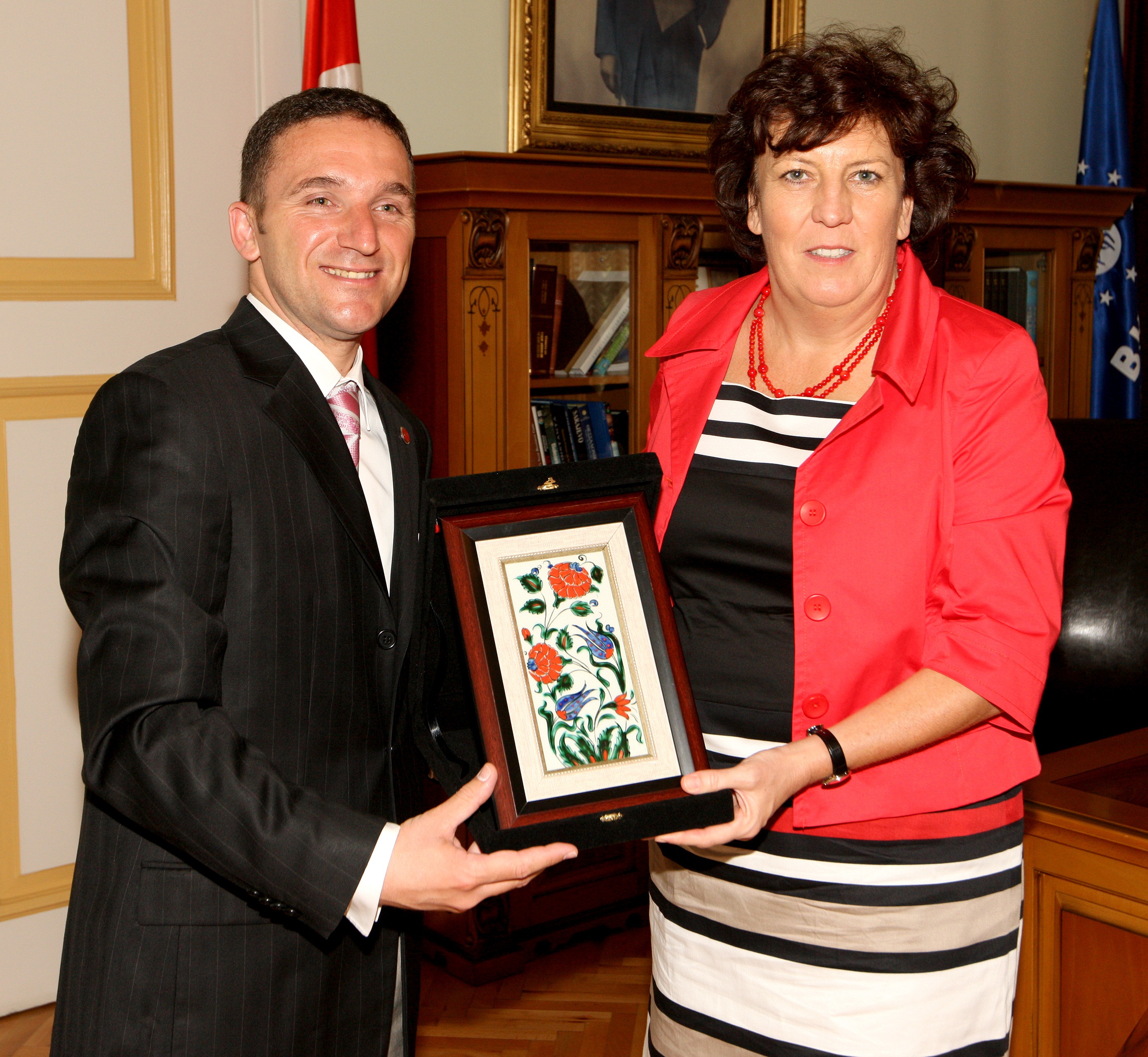 Büyükşehir Belediyesi Başkanvekili Atilla Ödünç’ün tarihi belediye binasında kabul ettiği Belçika Flaman Hükümeti Başbakan Yardımcısı ve İnovasyon, Kamu Yatırımları, Medya ve Yoksullukla Mücadele Bakanı Ingrid Lieten’e, ziyarette, Belçika Büyükelçisi Pol De Witte, Özel Kalem Sorumlusu Koen Pelleriaux, Basın Ateşesi Yeter Demirci, Flaman Parlamentosu Milletvekili Fatma Pehlivan, Hasselt Üniversitesi Rektörü Luc De Schepper, FWO (Fund for Scientific Research) Bilimsel Araştırmalara Finans birimi üyesi Dr. Hans Willems, Anvers Belediyesi Üyesi Güler Turan, Başkatip Ivan Feys, Flanders Drive firması temsilcisi Ger Van De Kerckhove, LMS firması temsilcisi Alex Vermeulen ve Uludağ İhracatçılar Birliği Uzmanı Deniz Başar da eşlik etti.