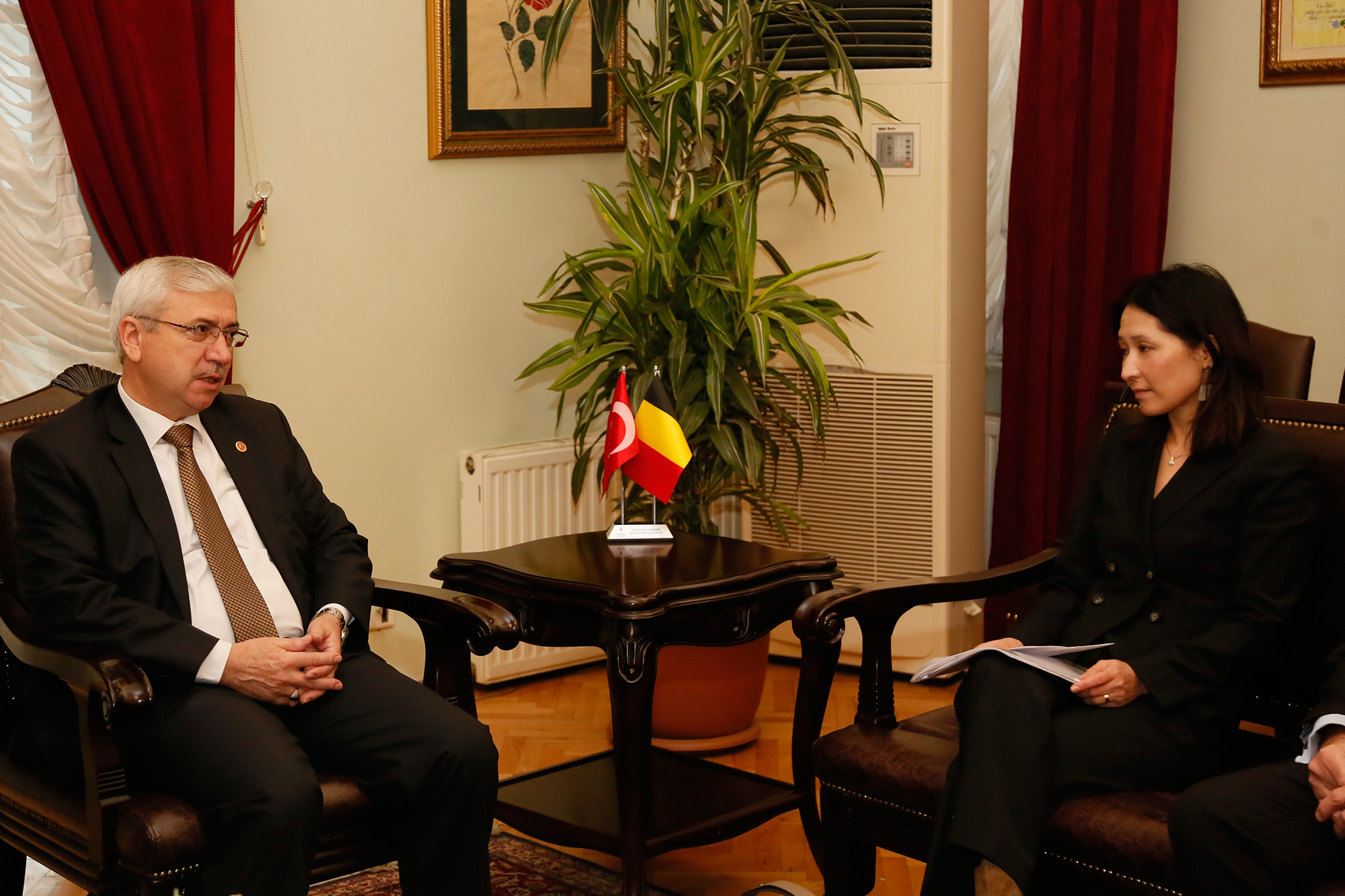 - SICAK BİR ATMOSFERDE GEÇEN GÖRÜŞMEDE, TÜRKİYE İLE BELÇİKA İLİŞKİLERİ İLE VAR OLAN TİCARİ BİRLİKTELİKLER VE MUHTEMEL YATIRIMLAR GÜNDEME GELDİ.