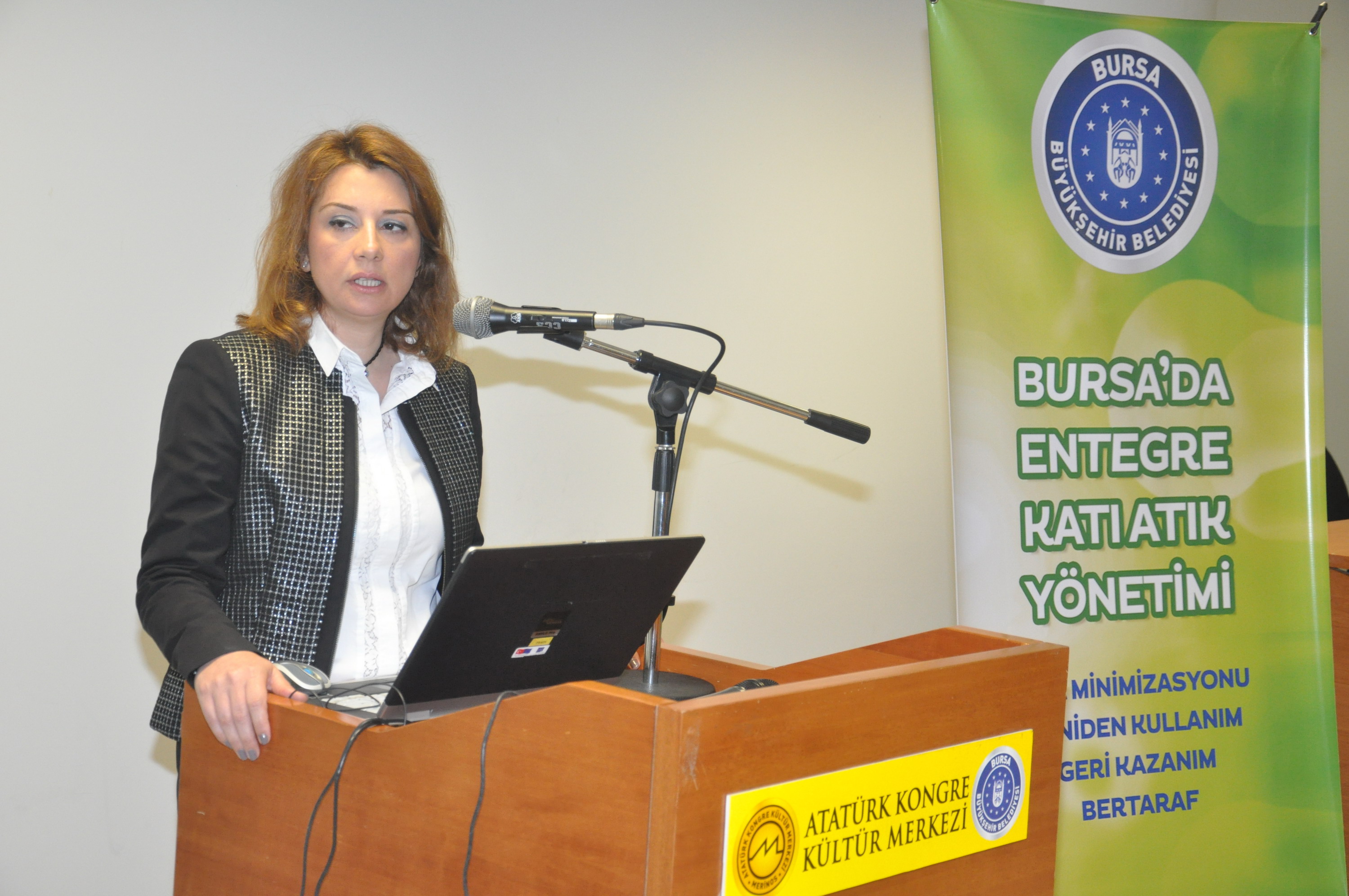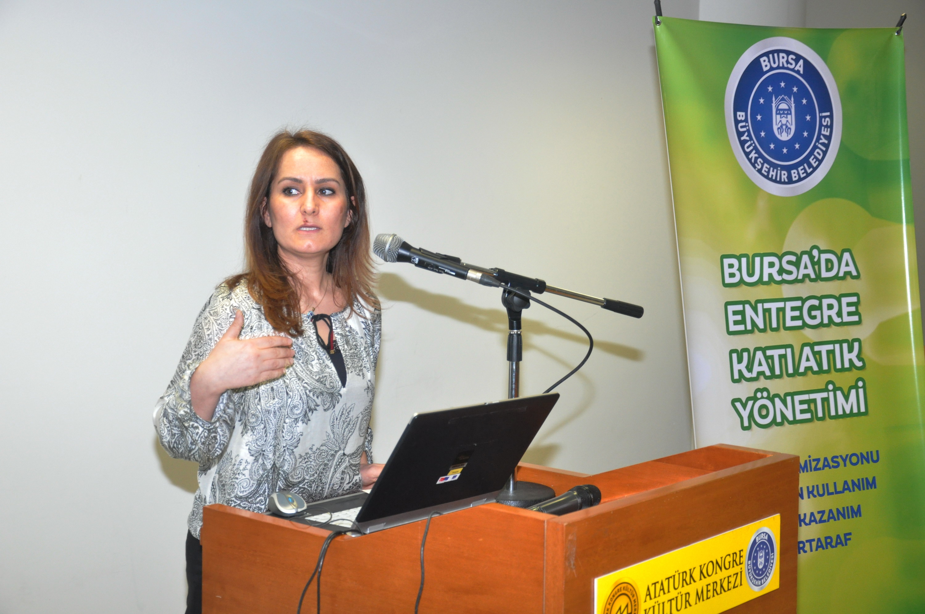 İSTAÇ Çevre Yönetim Şefi Aynur Kemirtlek ise Bursa Entegre Katı Atık Yönetim Planı hakkında çıktıları, verileri ve yapılan çalışmaları katılımcılarla paylaştı.