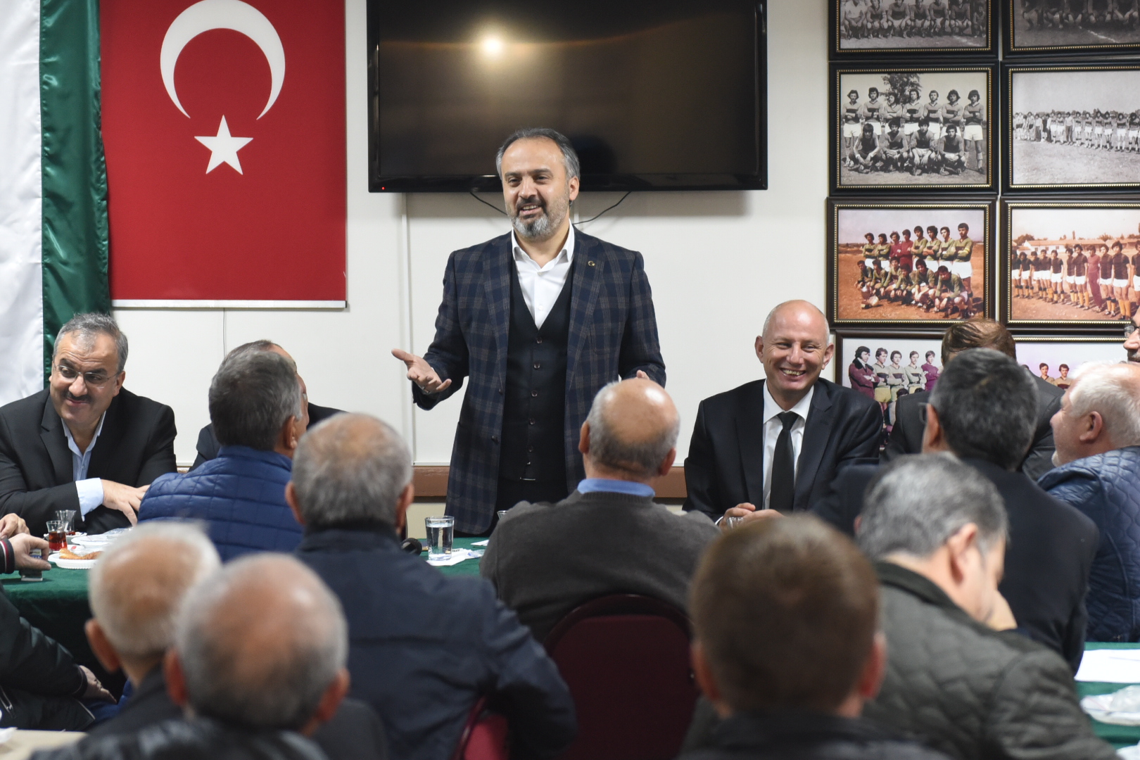 Bursa’ya hizmet eden herkese “Allah razı olsun” diyen Başkan Aktaş, eksiklikleri ve aksaklıkları tespit edip, iyi niyet ve samimiyetle çözüm üretme gayretinde olduklarını anlatarak, “A partisinden B partisinden, tüm samimiyetimle söylüyorum, yeter ki ortak değerlerimize, milli ve manevi değerlerimize saygı içerisinde olsun. Aynı sofra etrafında toplandık, sohbet ediyoruz. Vatan, bayrak, millet, devlet, bunlar ortak değerler. Yeter ki bunlara sahip çıksın, hangi partiden olursa olsun. Bunlarla problemi varsa, o adamla da bizim işimiz yok zaten. Hiçbir zaman ortak bir platformda, ortak bir noktada o anlayışta olanlarla bir araya gelmemiz asla mümkün değil. Dolayısıyla kim ne yaptıysa Allah razı olsun” şeklinde konuştu.