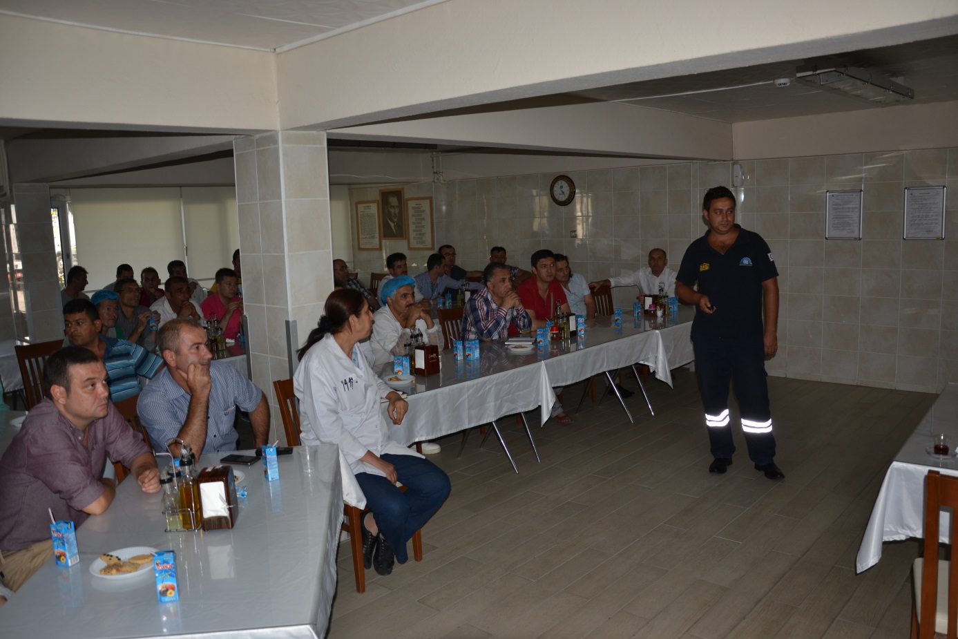 BESAŞ yemekhanesinde, organize sanayi bölgesi itfaiye şefliğinde görevli personel tarafından, tüm çalışanlara yangınların çıkış sebepleri, yangın türleri, yangın söndürme konularında bilgi verilip, yangında kullanılan ekipmanların içeriği ve kullanımı uygulamalı olarak anlatıldı. Eğitimin ardından Besaş tesislerinde yapılan tatbikatta, çıkartılan kontrollü yangına görevli personel nezaretinde müdahale edildi.