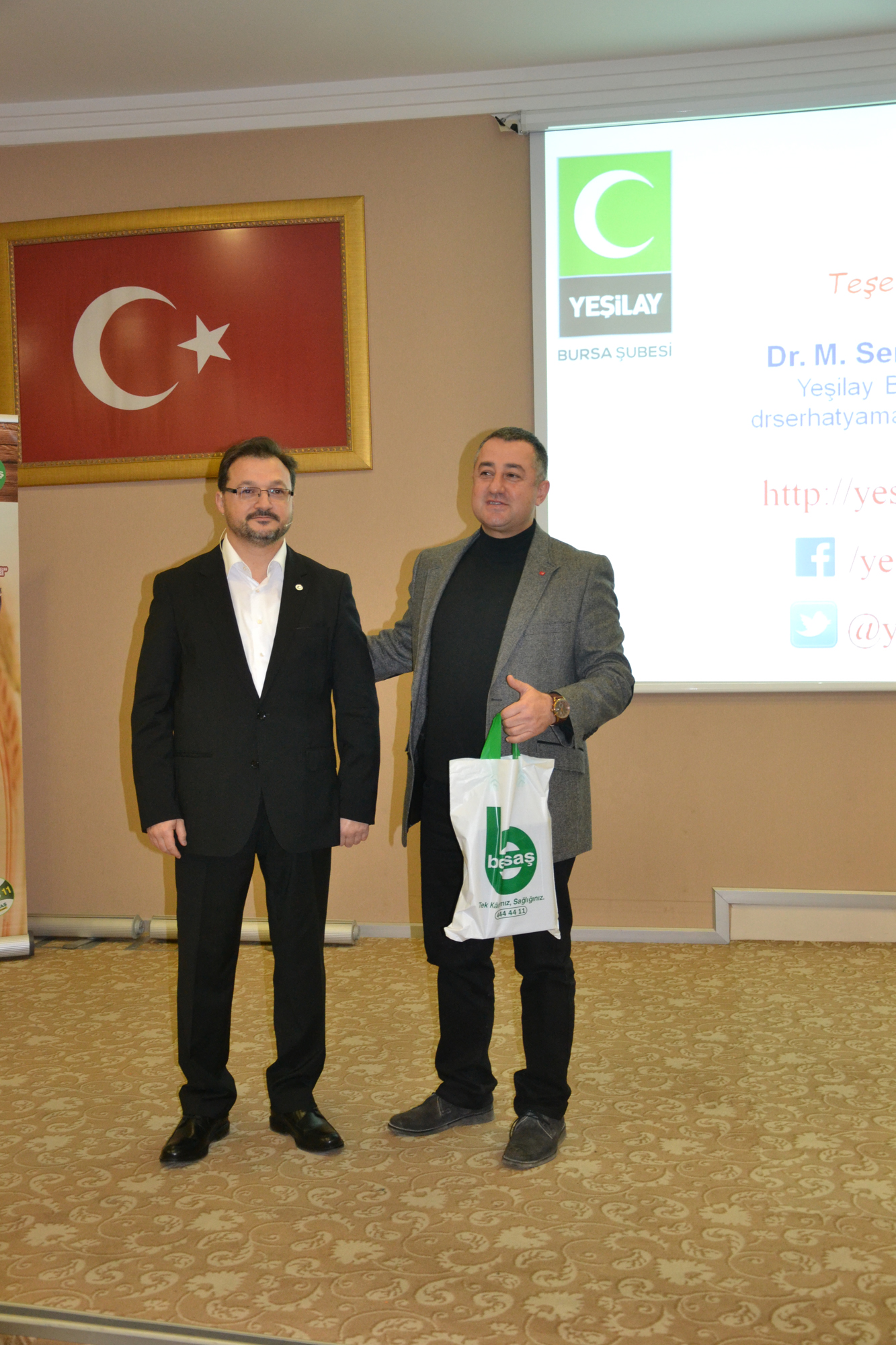 Program sonunda, BESAŞ Genel Müdür Yardımcısı Can Aydoğan, Yeşilay Bursa Şube Başkanı Dr. M. Serhat Yamalı’ya hediyesini takdim ederek, teşekkür etti. Ayrıca, katılımcılara eğitimle ilgili broşürler de dağıtıldı.