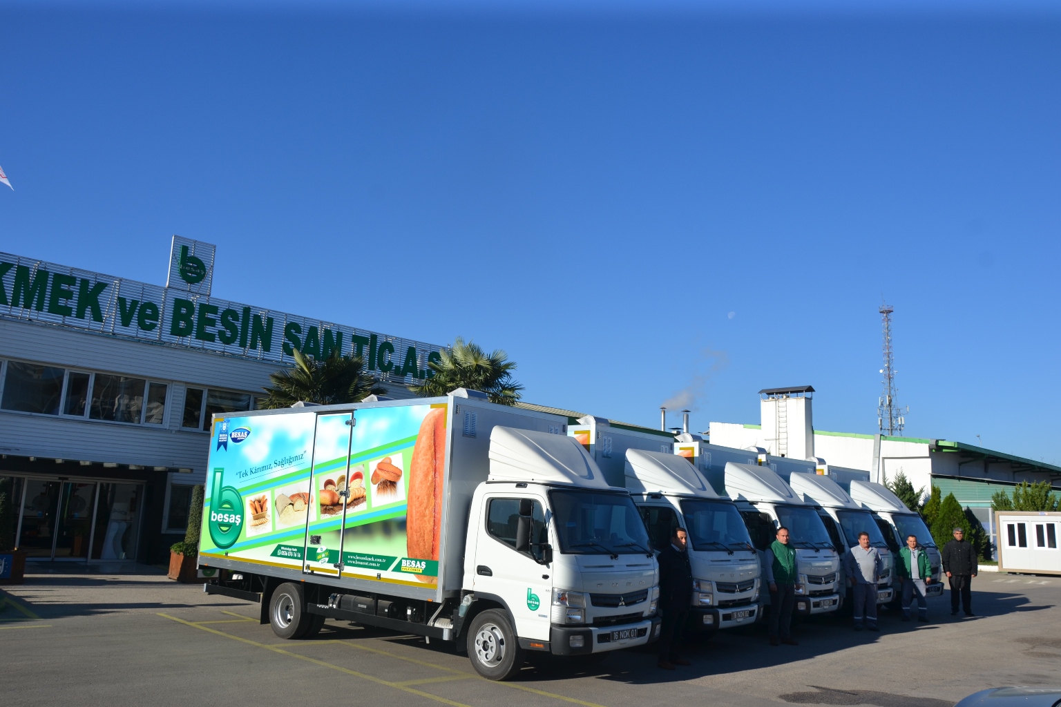 Türkiye’de ekmek ve unlu mamuller üreten firmalar arasında ürün ve hizmet kalitesi ile fark edilen lider bir firma olma doğrultusunda Bursa genelindeki 450 ayrı satış noktasına, ürünlerini herhangi bir aksilik olmadan zamanında ve hijyenik olarak ulaştırmayı hedefleyen BESAŞ, araç filosuna 5 yeni kamyon daha ekledi. Yıllık 100 milyona yaklaşan ekmek üretimiyle, Bursa’nın ekmek ihtiyacının yüzde 20’sini karşılayan BESAŞ genişleyen ürün yelpazesine paralel olarak lojistik altyapısında da yenileme çalışmalarına devam ediyor. Ekmek sevkiyatında kullanılan 27 araçlık kasalı kamyon filosunu sürekli yenileyen BESAŞ, 5 aracı daha yeniledi.