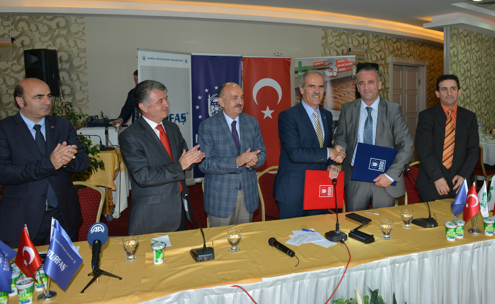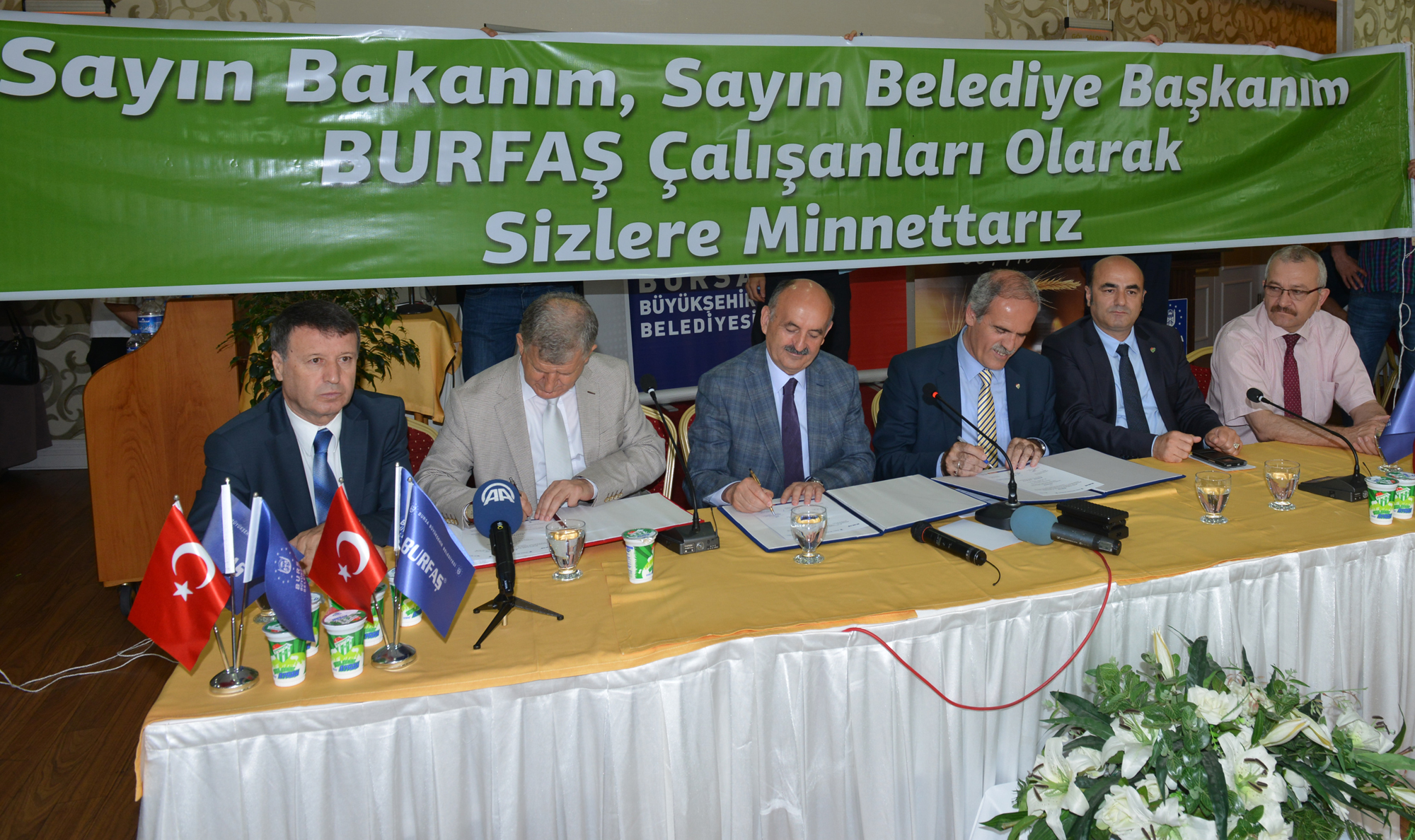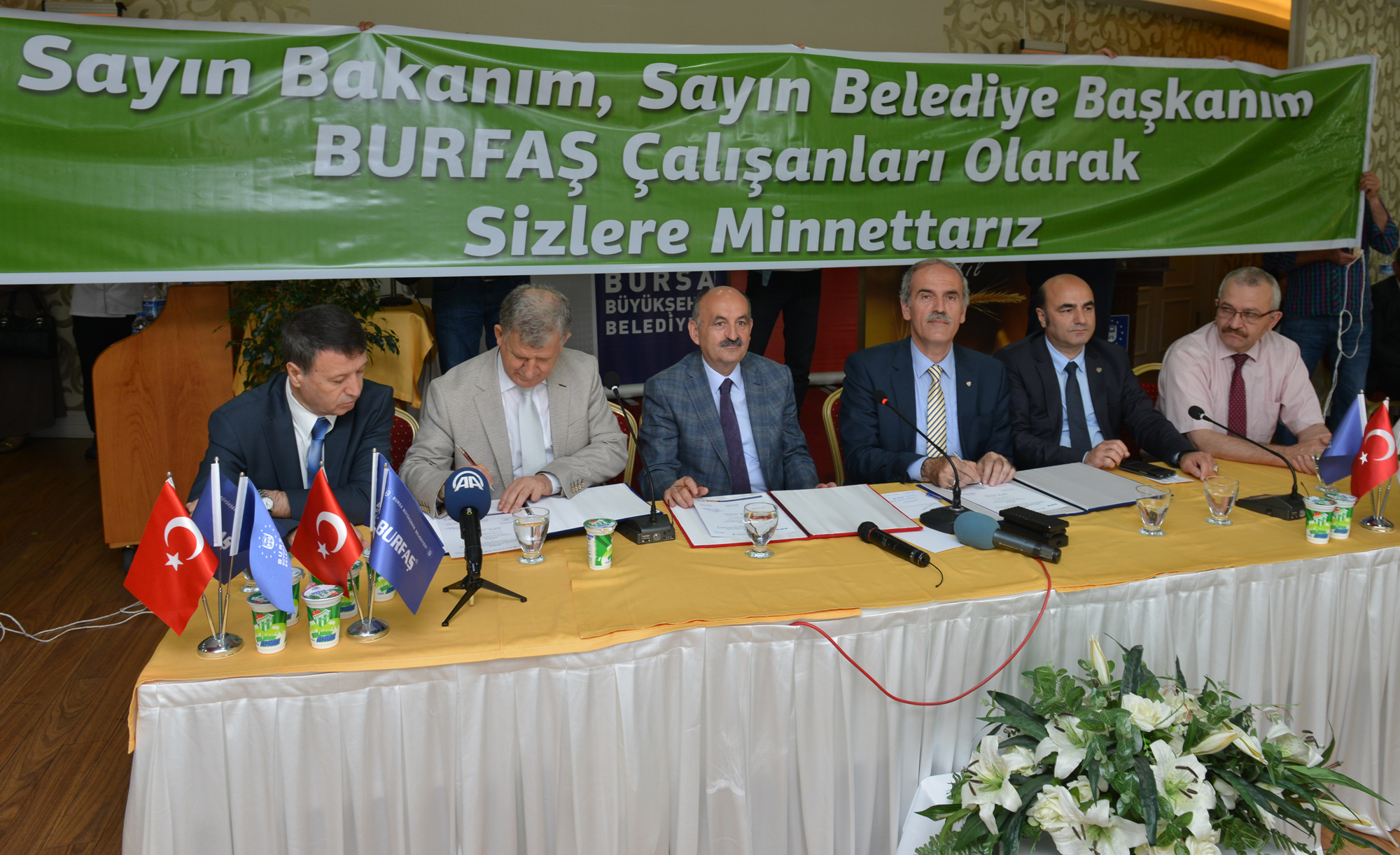 - BESAŞ ile HAK-İŞ’e bağlı Öz Gıda-İş Sendikası ve BURFAŞ ile TOLEYİS arasında yapılan toplu sözleşmeler, Sağlık Bakanı Dr. Mehmet Müezzinoğlu ve Bursa Büyükşehir Belediye Başkanı Recep Altepe ile sendika temsilcileri tarafından imzalandı.