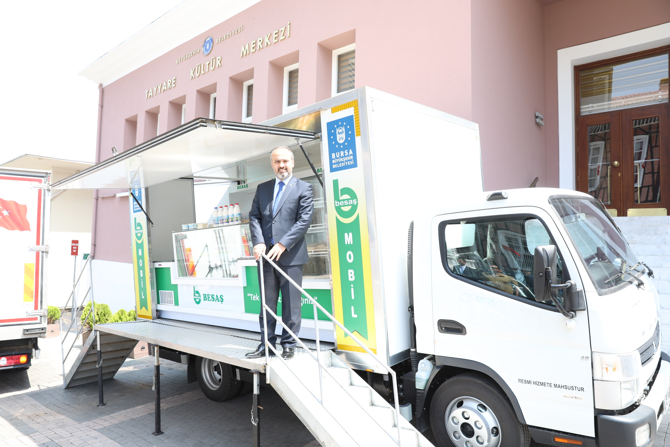 BURSA - Büyükşehir Belediye Başkanı Alinur Aktaş, BESAŞ’ın başta unlu mamuller olmak üzere soğuk zincir ürünlerini Bursa’nın her tarafına ulaştırmak adına hizmete aldığı mobil hizmet aracını basına tanıttı. Ucuz, sağlıklı ve kaliteli BESAŞ ürünlerinden artık herkesin faydalanabileceğini belirten Başkan Aktaş, mobil hizmet aracı ile bayi ağının bulunmadığı ya da sıkıntılı bölgelerde ürün satışlarının yapılacağını açıkladı.