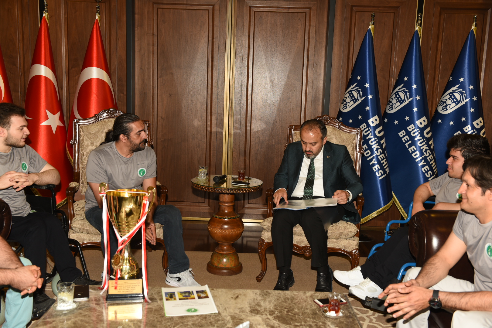 Büyükşehir Belediye Başkanı Alinur Aktaş, azim ve gayretlerinden dolayı takım oyuncularını kutladı. Bursa’nın adını çeşitli mecralarda duyuran tüm dernek ile spor kulüplerinin kendileri açısından değerli ve önemli olduğunu ifade eden Başkan Aktaş, BESK oyuncularını tebrik etti. 8-10 adamın bir araya gelerek ulusal müsabakalarda ter dökmesi ve sonuç almasının alkışlanacak bir olay olduğunu ifade eden Başkan Aktaş, “Bugün de elde ettikleri başarıyı bizimle paylaşmak için buraya geldiler. Kendilerine teşekkür ediyorum” diye konuştu.