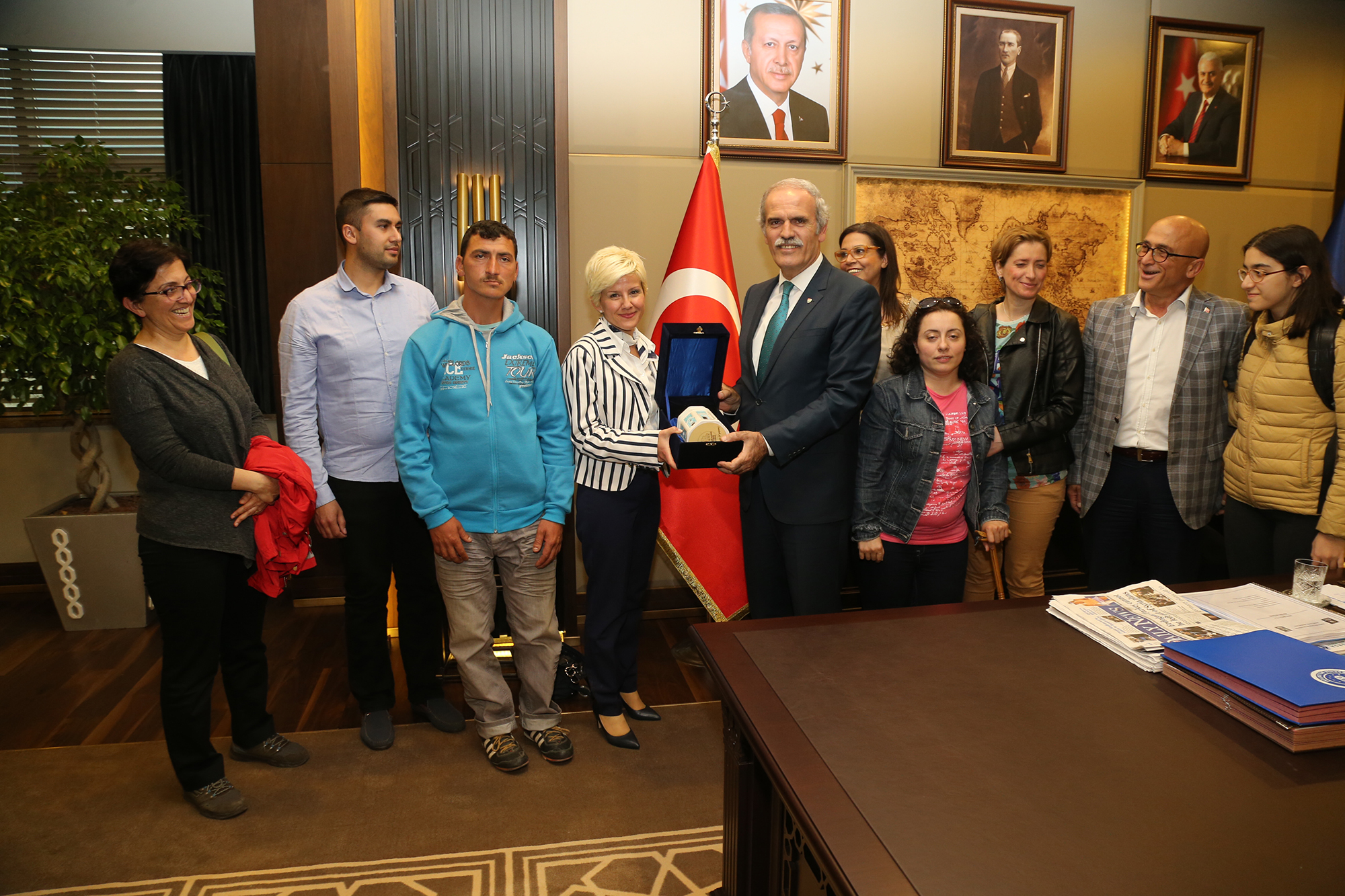 BURSA - Türkiye Beyazay Derneği Üst Kurul Üyesi Zafer Hıdıroğlu ve Bursa Şube Başkanı Füsun Koyunlular, yürüttükleri ‘Makedonya Kardeşlik Projesi’ne verdikleri destek nedeniyle Büyükşehir Belediye Başkanı Recep Altepe’ye teşekkür etti. Bursa Büyükşehir Belediye Başkanı Recep Altepe, her alanda Türkiye’ye örnek projelerin hayata geçirildiği Bursa’da engellerin kaldırılması noktasında da her türlü çalışmaları yaptıklarını söyledi.