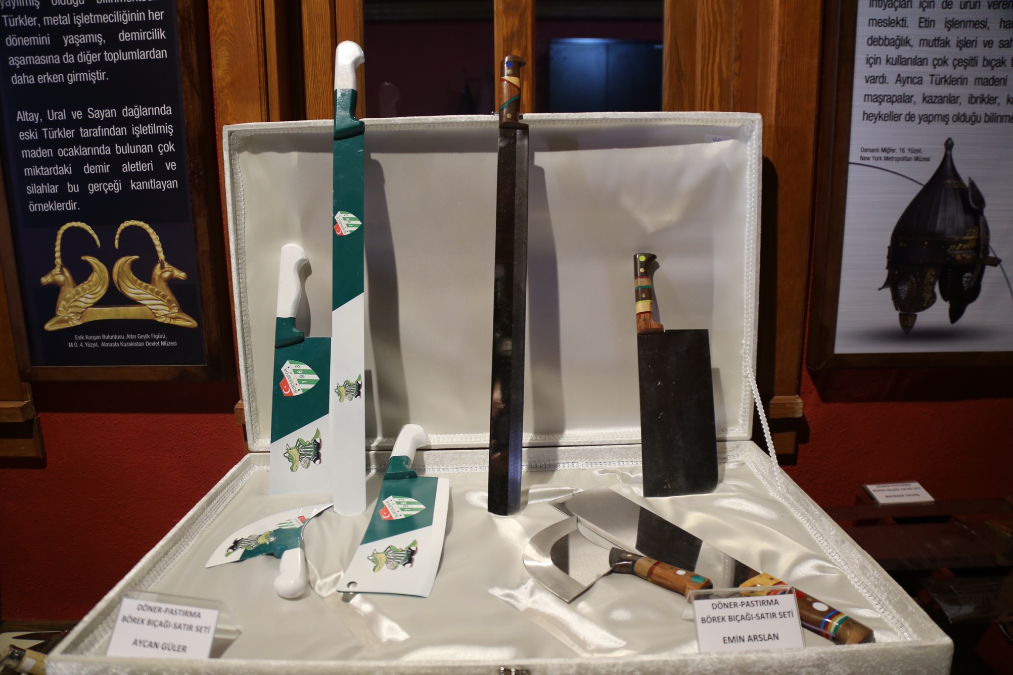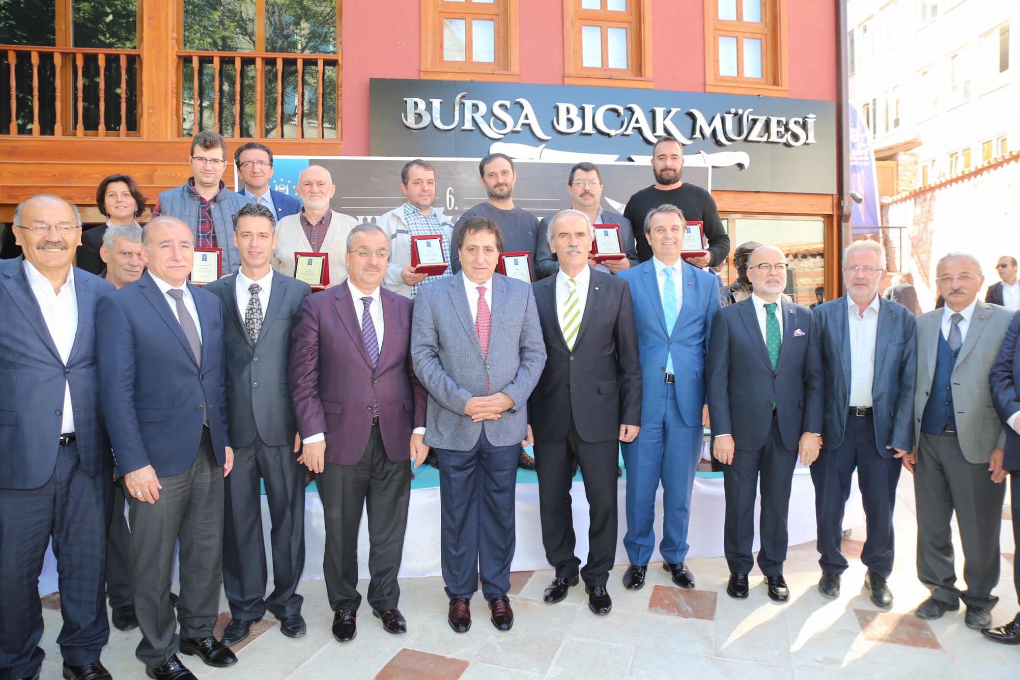 Yarışmada dereceye girenlere ödüllerinin verilmesinin ve toplu fotoğraf çekiminin ardından protokol üyeleri, müze bahçesinde açılan bıçak sergisini gezdi.