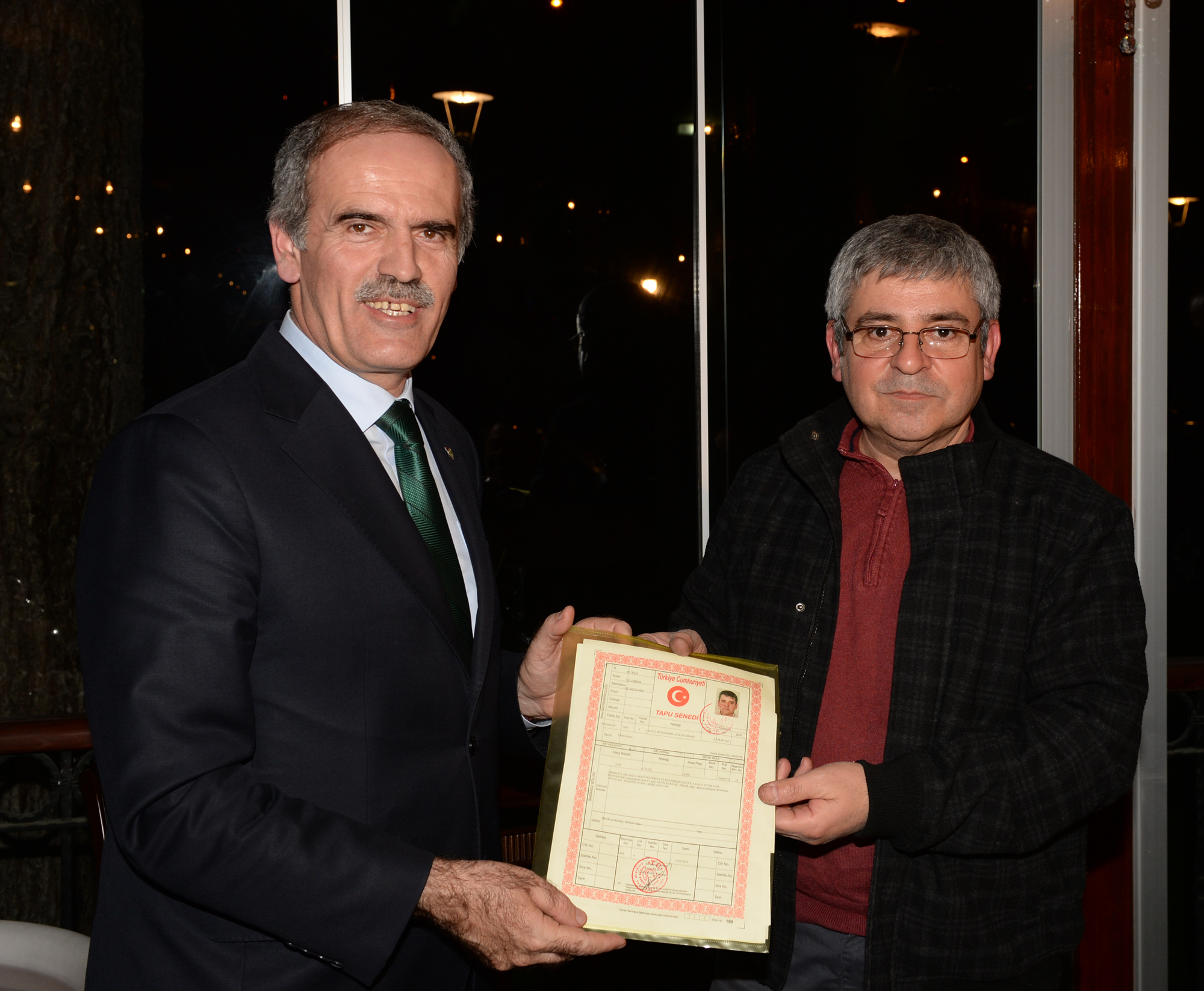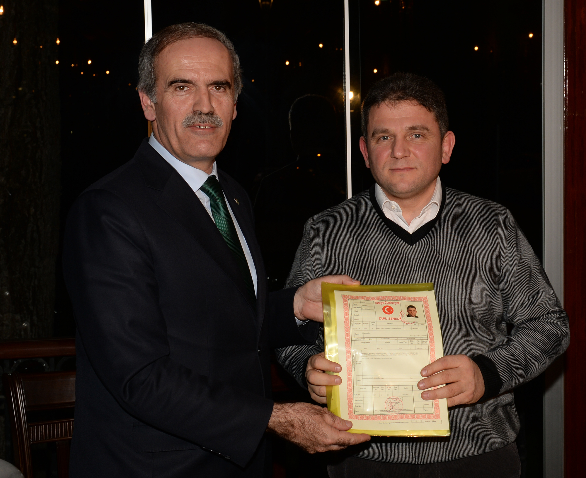 Konuşmasının ardından Başkan Altepe, aralarında ağabeyi Metin Altepe’nin de bulunduğu bıçakçı esnafına tapularını teslim etti.