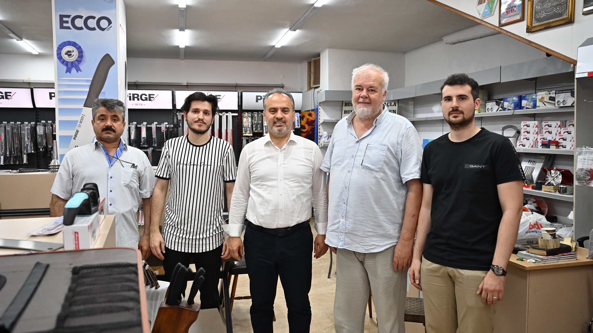Bursa Büyükşehir Belediye Başkanı Alinur Aktaş, geleneksel hale getirdiği bayram öncesi esnaf ziyaretlerine bu kez bıçakçılardan başladı. Başkan Aktaş, beraberindeki Bursa Milletvekili Mustafa Varank ve AK Parti İl Başkanı Davut Gürkan ile birlikte Kurban Bayramı öncesinde yoğun hareketliliğin yaşandığı Bıçakçılar Çarşısı’nı ziyaret etti. Bıçakçı esnafıyla sohbet eden Başkan Aktaş, Kurban Bayramı’nın hayırlı ve bol kazançlar getirmesi dileğinde bulundu.