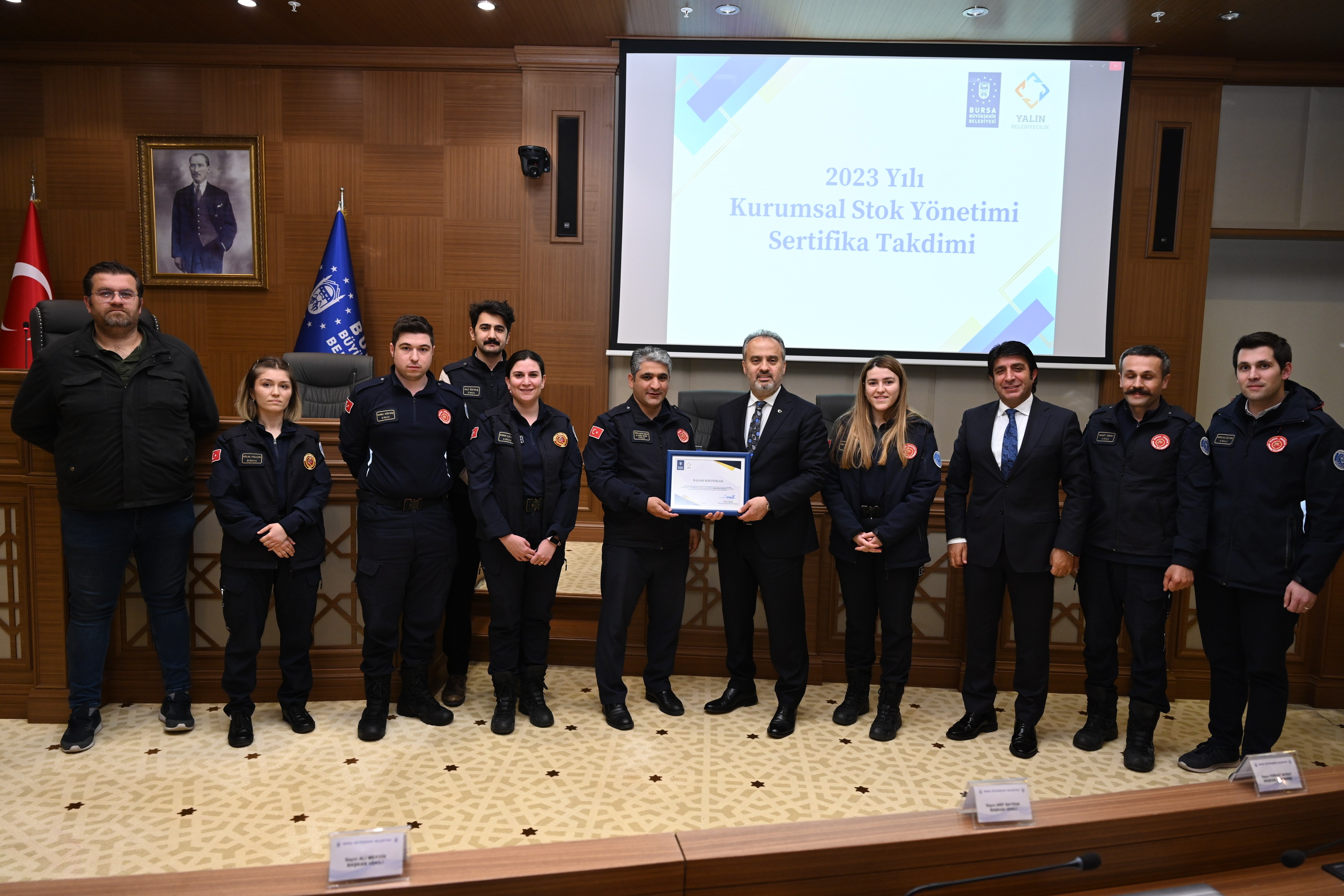 En iyi iki Daire Başkanlığına Bursa Büyükşehir Belediye Başkanımız tarafından başarı sertifikaları takdim edildi. Kurumun sahip olduğu 166 alanın; fiziki yapısı, düzeni ve işleyişi bakımından üç ana başlıkta 19 kriterden oluşan değerlendirme sorularına göre puan verildi. 91 puan ile Bilgi İşlem Dairesi Başkanlığı birinci, 82 puan ile İtfaiye Dairesi Başkalığı ikinci oldu. Her iki daire başkanlıklarına başarı belgeleri Büyükşehir Belediye Başkanı Alinur Aktaş tarafından verildi.