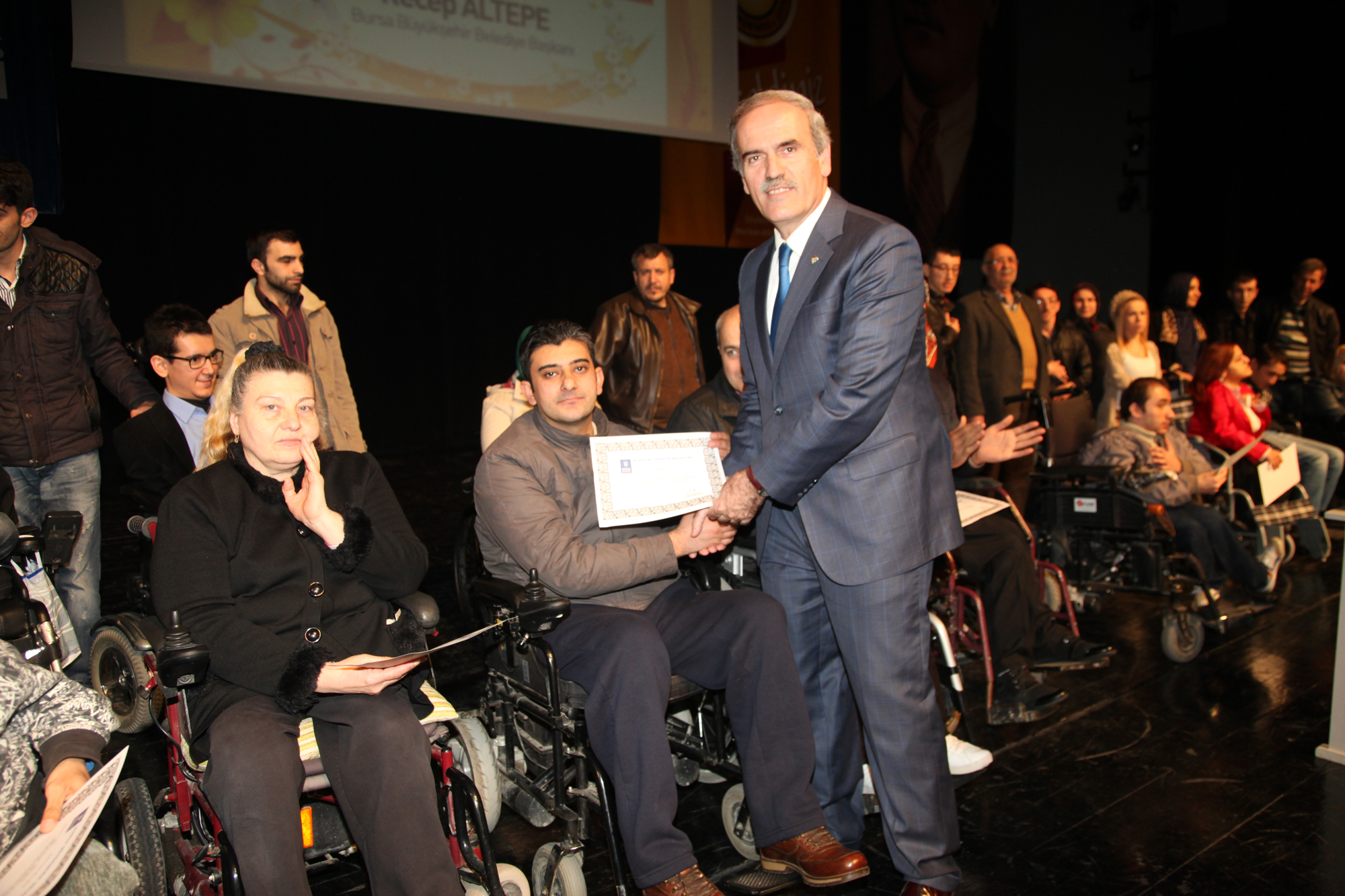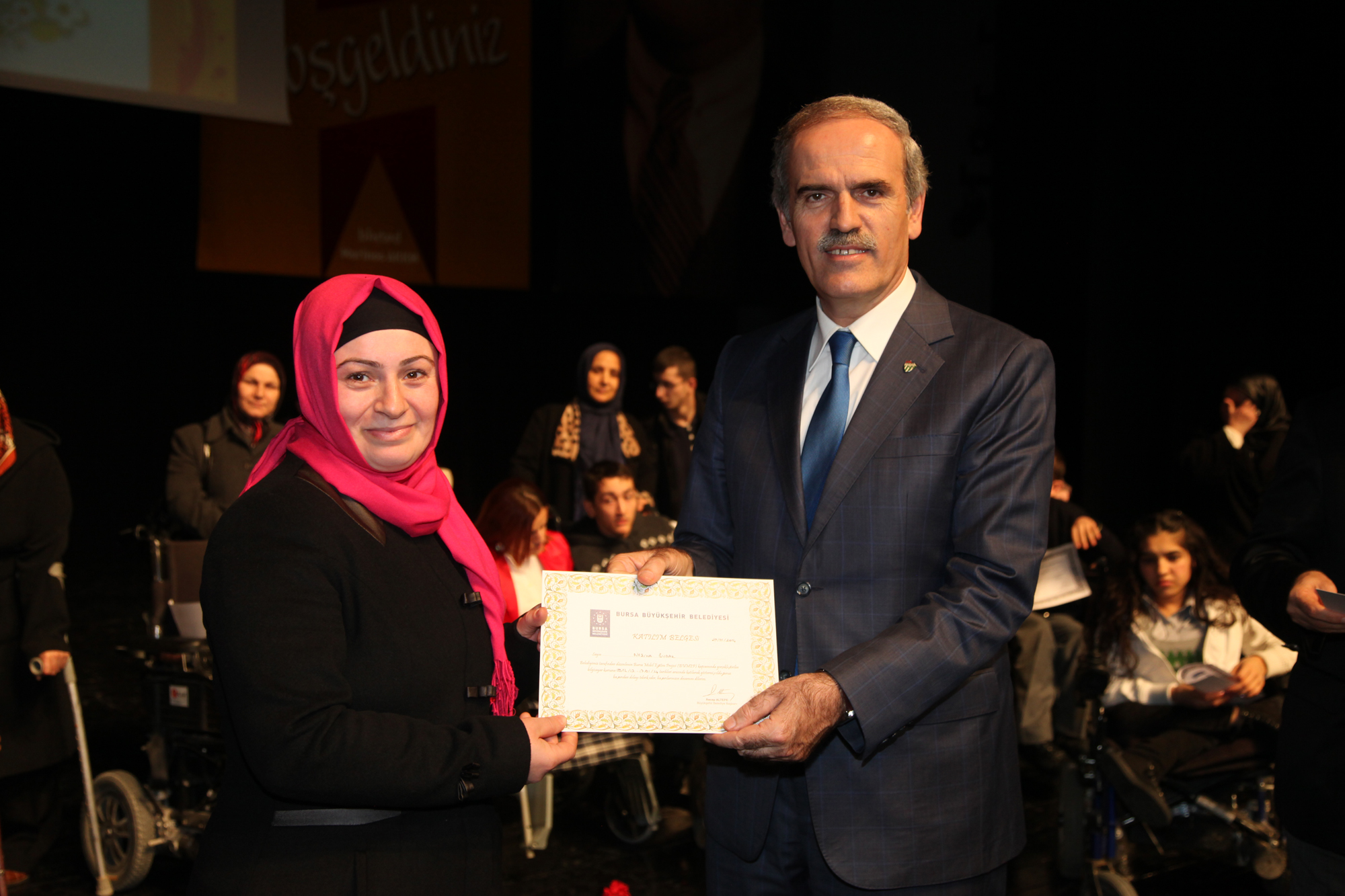 - BURSA BÜYÜKŞEHİR BELEDİYESİ TARAFINDAN TAM DONANIMLI 10 OTOBÜSLE MAHALLELERDE EV HANIMLARINA YÖNELİK OLARAK DÜZENLENEN ÜCRETSİZ MOBİL EĞİTİM PROJESİNİN (BUMEP) BİR AYAĞINI OLUŞTURAN BURSA ENGELSİZ MOBİL EĞİTİM PROJESİNİ (BENMEP) BAŞARIYLA TAMAMLAYAN 91 ENGELLİ KURSİYER, SERTİFİKALARINA KAVUŞTU.