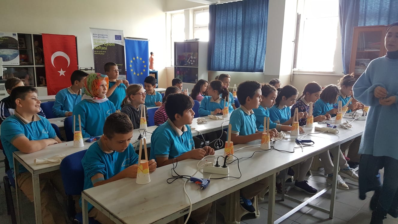 Avrupa Birliği Bilgi Merkezi koordinasyonunda gerçekleştirilen ve AB fonundan finanse edilen proje ile iklim değişikliğine dikkat çekildi. ‘Yeşil Enerji- Temiz Enerji’ başlığı altında yürütülen proje kapsamında, İl Milli Eğitim Müdürlüğü tarafından belirlenen imkânları kısıtlı ortaokullarda öğrenim gören öğrencilere bilimsel atölye çalışmaları ile küresel iklim değişikliğine yol açan etkenler anlatıldı. İki gün süren proje etkinliğine 450’nin üzerinde öğrenci katıldı. Keles Davut Zeki Akpınar Yatılı Bölge Ortaokulu ile Mustafakemalpaşa’da bulunan Züferbey Yatılı Bölge Ortaokulu’nda gerçekleştirilen etkinliklerde öğrencilere onlarca farklı deneyle zenginleştirilen ‘Yeşil Enerji’ atölye çalışmaları yaptırıldı. Katılımcı öğrencilere, iklim değişikliğin etkileri, enerji verimliliği ve yenilenebilir enerji kaynaklarını konu alan mobil planetaryum gösterileri sunuldu.
