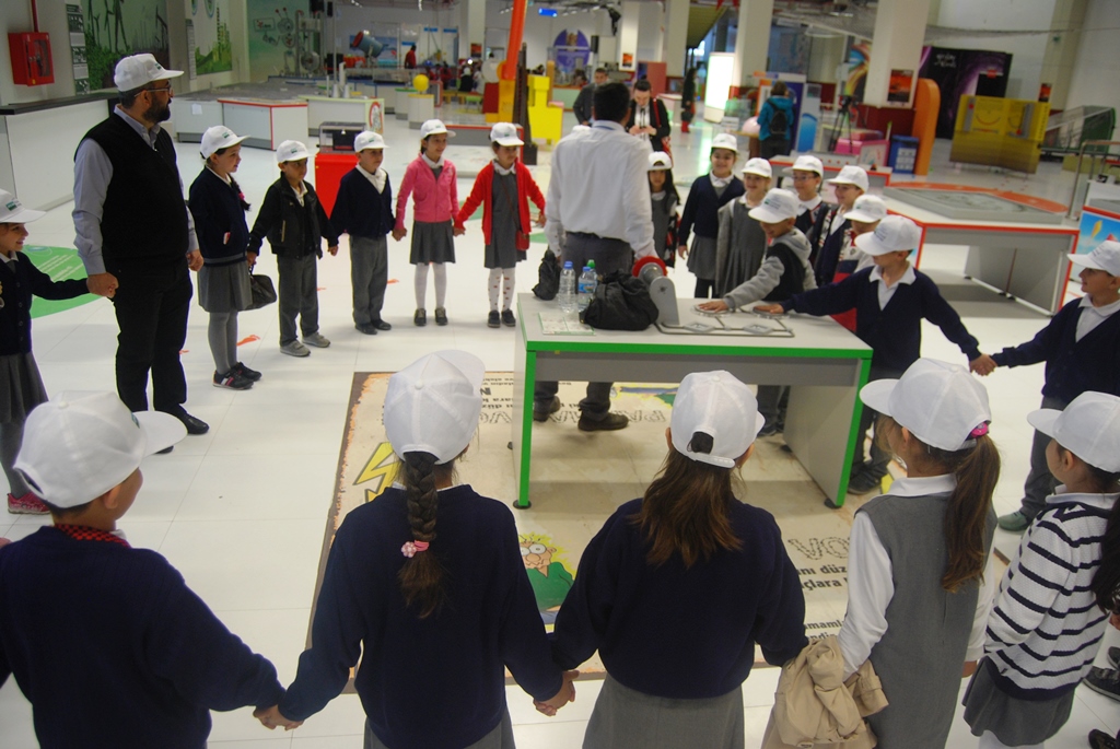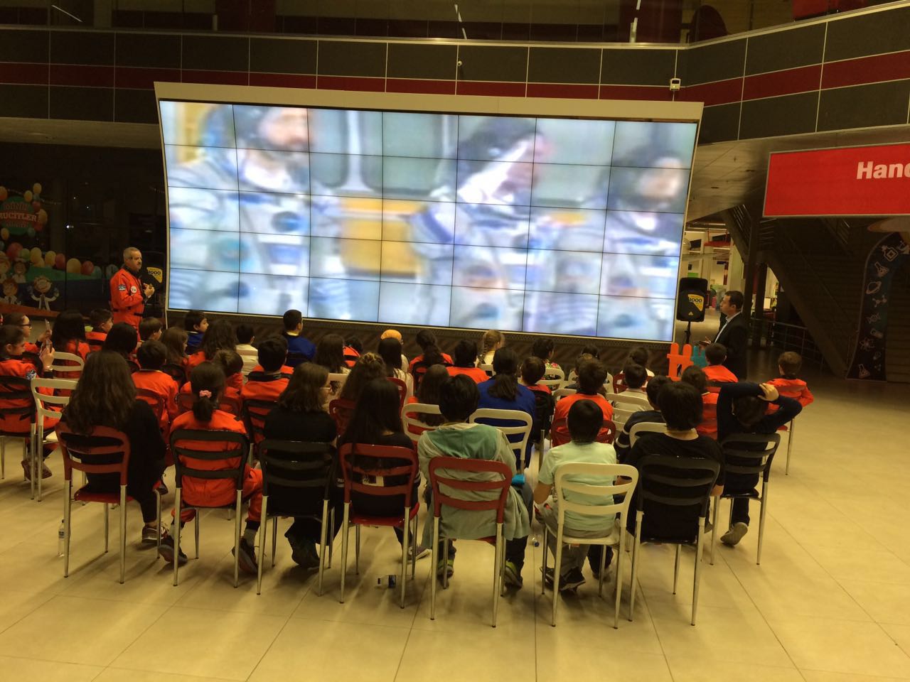 Merkezde bilim iletişimcileri tarafından temalı turlara katılan 60’a yakın öğrenci daha sonra planetaryumda gökyüzünü keşfe çıktı. İlk kez böyle bir merkeze gelen çocukların heyecan ve mutluluğu gözlerine yansıdı.