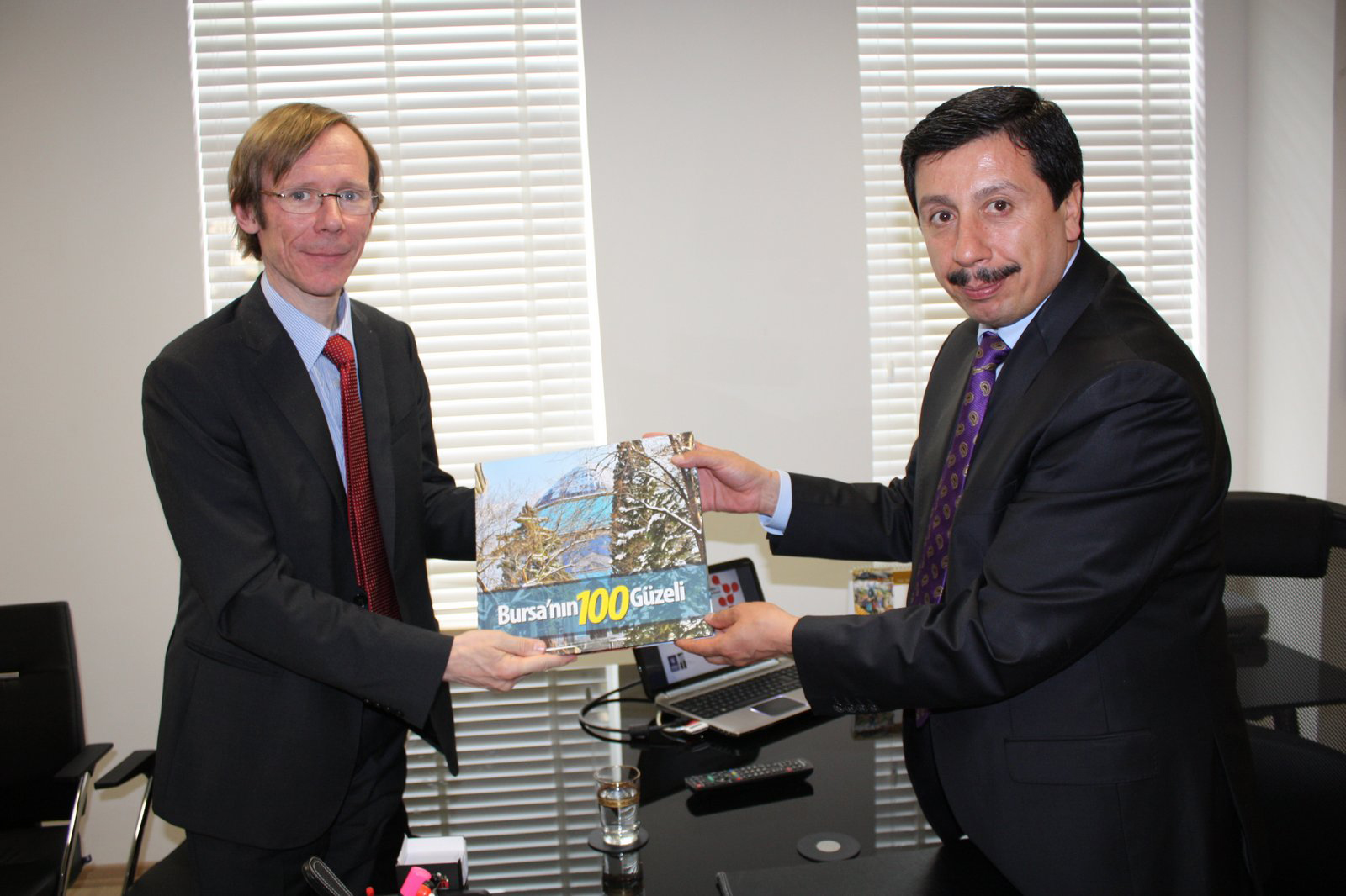 Ziyaretin ardından Genel Koordinatör Rıfat Bakan, Müsteşar Yardımcısı Alexis Michel ve ODTÜ Bilim ve Teknoloji Merkezi Müzesi Müdürü Dr. Tuğba Tanyeri Erdemir´e günün anısına Bursa´nın 100 Güzeli kitabını hediye etti.