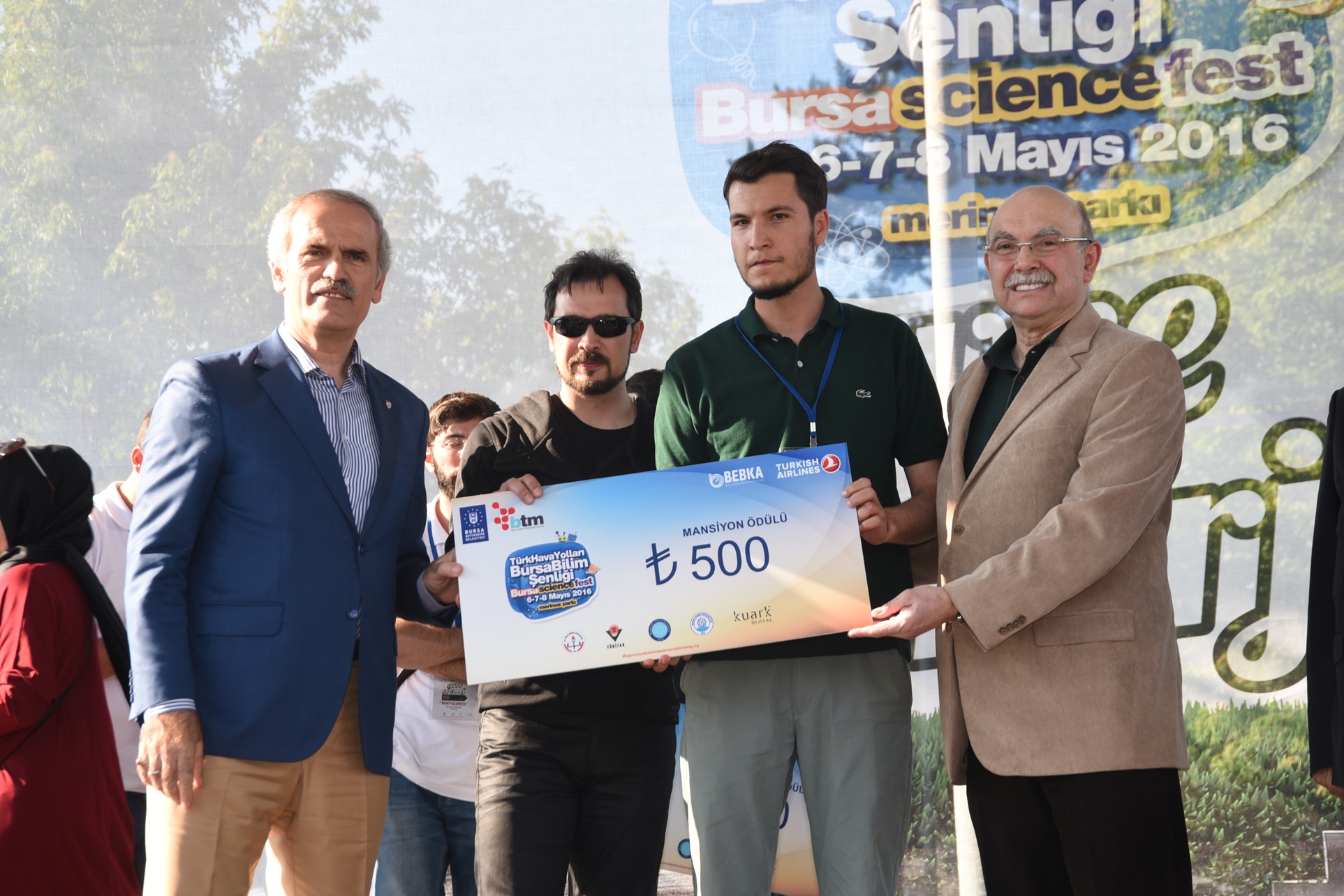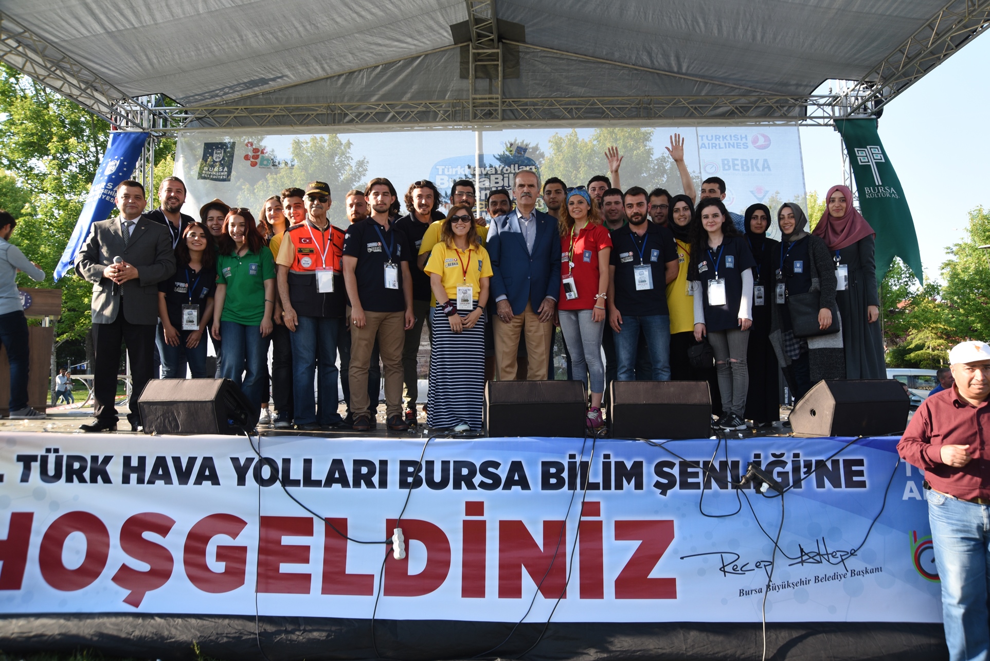 BURSA - Bursa Büyükşehir Belediyesi ve BEBKA tarafından Türk Hava Yolları’nın ana sponsorluğunda 6-7-8 Mayıs tarihlerinde Bursa Bilim ve Teknoloji Merkezi’nin ev sahipliğinde Merinos Park’ta gerçekleştirilen ve THY Bursa Bilim Şenliği kapsamında yapılan proje yarışmasının finalistleri, ödüllerini Büyükşehir Belediye Başkanı Recep Altepe’nin elinden aldı.