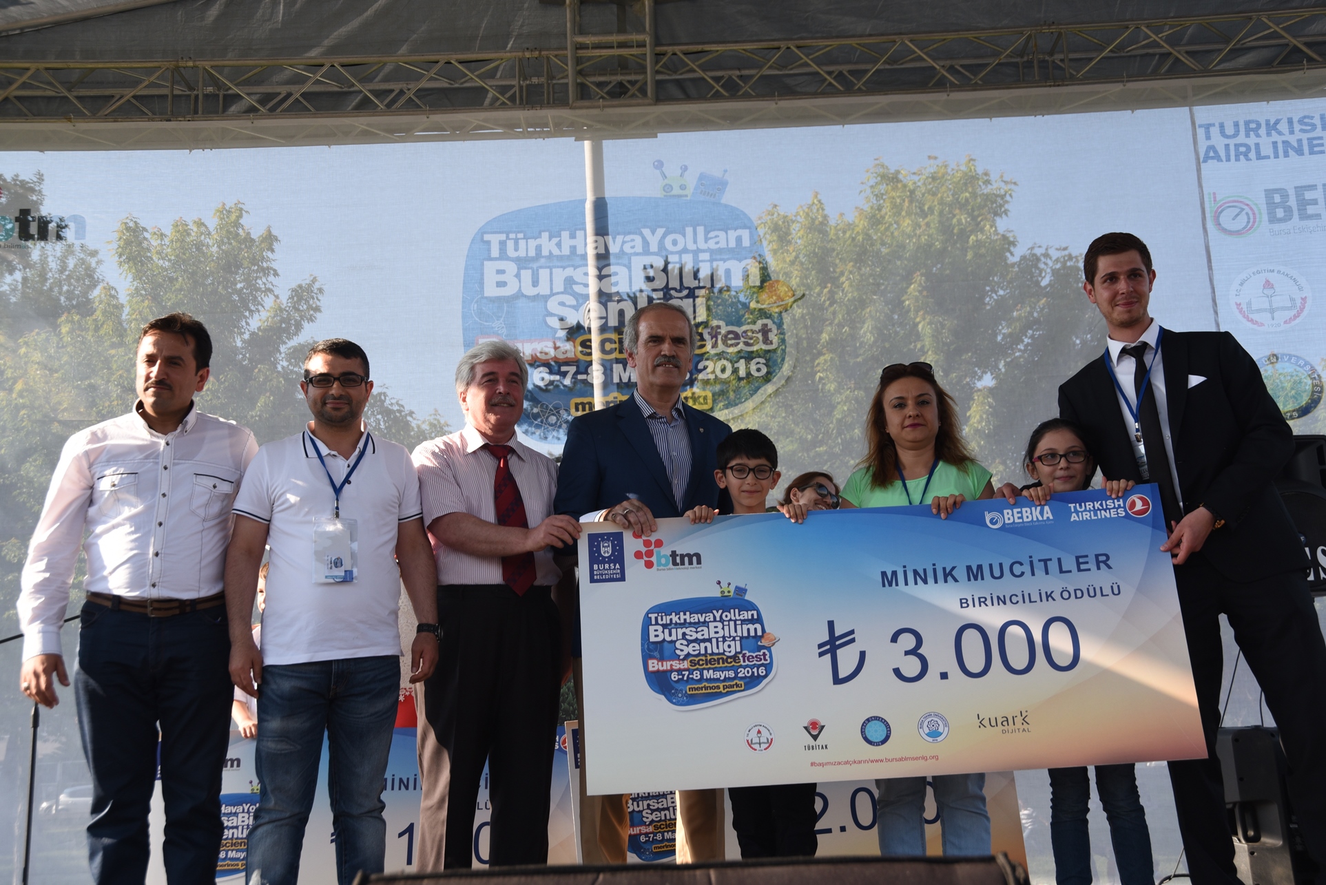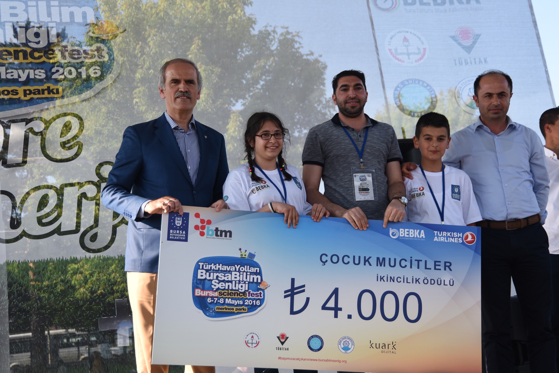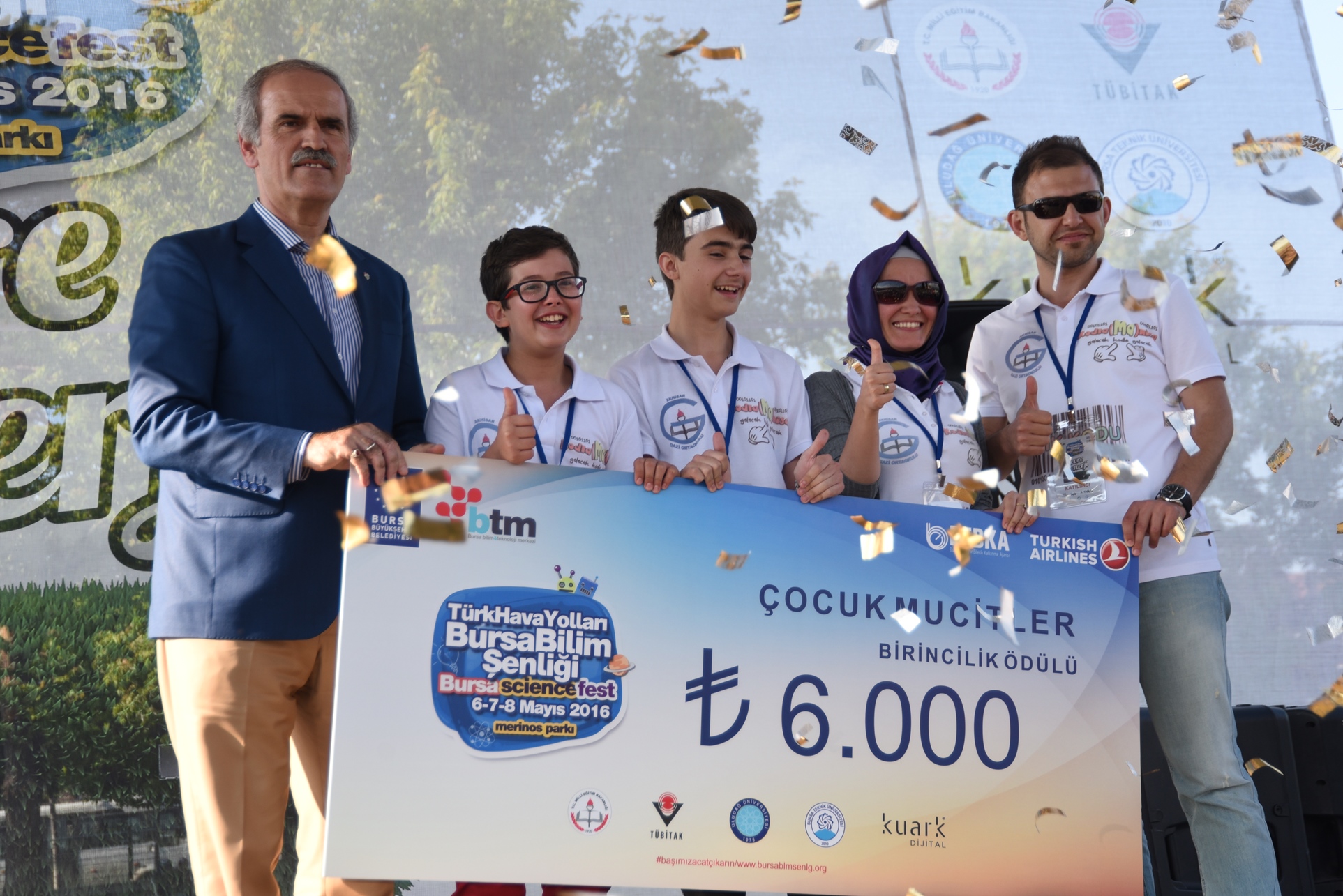 - BURSA BÜYÜKŞEHİR BELEDİYESİ VE BEBKA TARAFINDAN TÜRK HAVA YOLLARI’NIN ANA SPONSORLUĞUNDA 6-7-8 MAYIS TARİHLERİNDE BURSA BİLİM VE TEKNOLOJİ MERKEZİ’NİN EV SAHİPLİĞİNDE MERİNOS PARK’TA GERÇEKLEŞTİRİLEN VE THY BURSA BİLİM ŞENLİĞİ KAPSAMINDA YAPILAN PROJE YARIŞMASININ FİNALİSTLERİ, ÖDÜLLERİNİ BÜYÜKŞEHİR BELEDİYE BAŞKANI RECEP ALTEPE’NİN ELİNDEN ALDI.