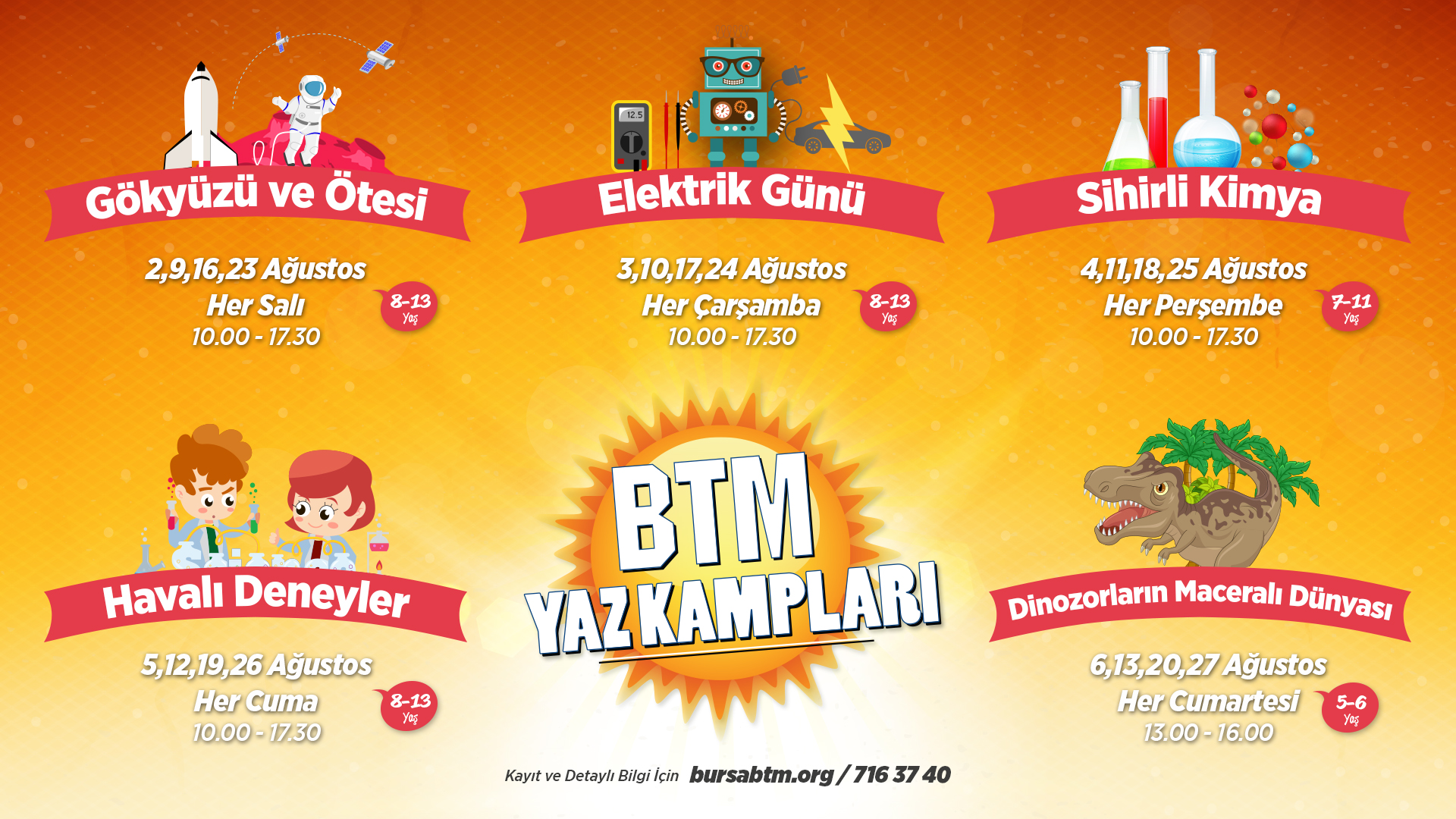 - BTM’nin 5 ile 13 yaş arası çocuklara yönelik eğlence ve bilimin iç içe olduğu yaz kampları Ağustos ayında başlıyor.
