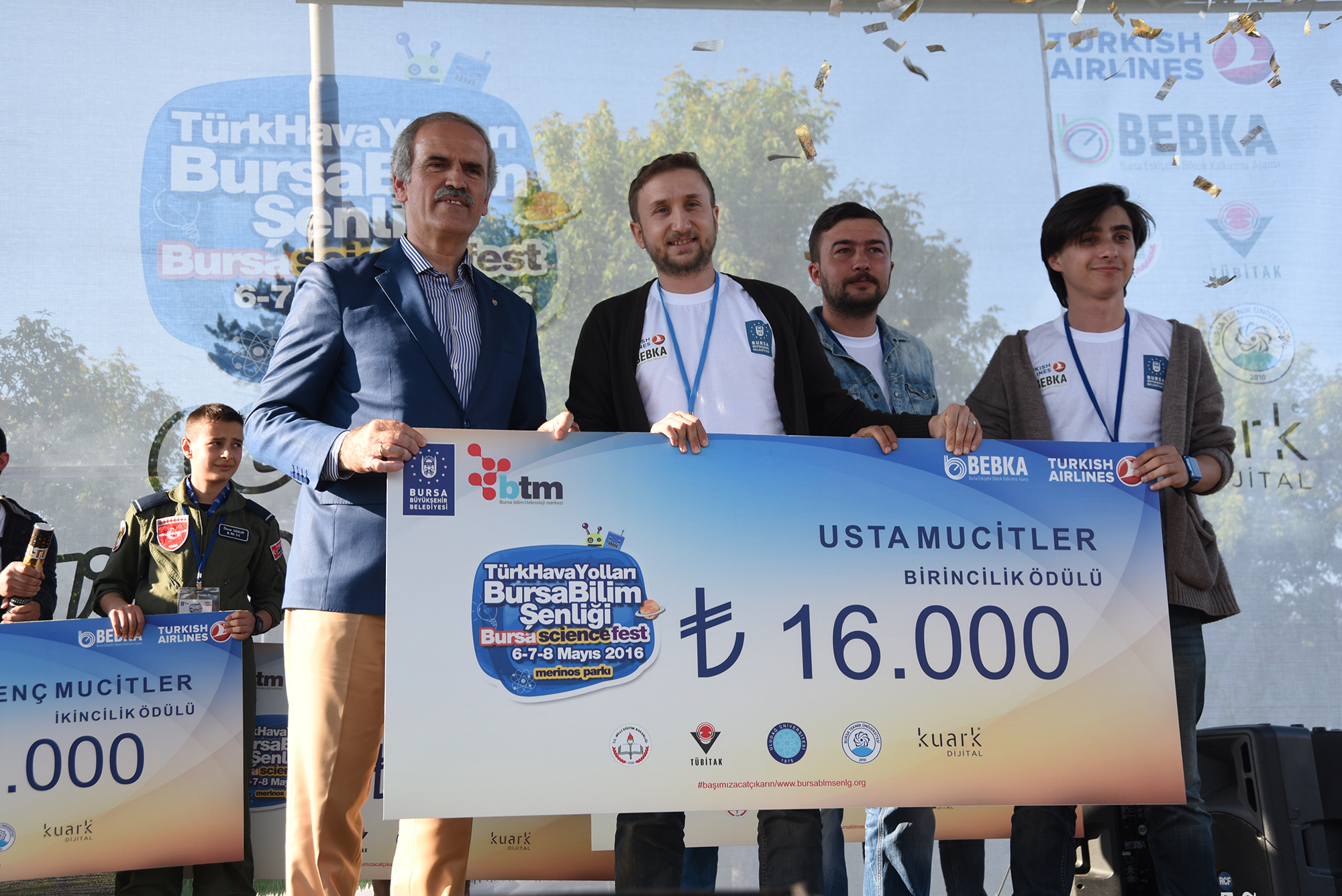 TÜBİTAK, Uludağ Üniversitesi, Bursa Teknik Üniversitesi, Milli Eğitim Bakanlığı, Kuark dijital, CLK Uludağ Elektrik, Eker, Emko ve Pırlant tarafından desteklenen “Çevre ve Enerji’’ başlıklarının ana temasını oluşturduğu Türk Hava Yolları Bursa Bilim Şenliği, yıl da Türkiye’nin 4 yanından bilim meraklılarını Bursa’da buluşturdu. Geçtiğimiz yıl 150 bin kişinin katıldığı şenliğe bu yıl 230 bin kişi katıldı. Katılımcılar şenlik alanını gezmenin ötesinde bizzat atölye çalışmalarına katılarak kenti üretimlerini gerçekleştirdi. Geçtiğimiz 39 bin olan atölye çalışması bu yıl 73 bin olarak gerçekleşti. Şenlik kapsamında bu yıl ikincisi düzenlenen ve toplamda 102 bin TL para ödülünün dağıtıldığı ve adeta ‘bilimin oscarları’ olarak nitelenen proje yarışmasında büyük ödülün sahibi usta mucitler kategorisinde Oğuz Aydemir oldu. Aydemir, ‘Ses Frekanslarını Titreşim Diline Dönüştürebilen Sistemler ile İşitme Engelli Bireylerin Eğitimi’ adlı projesiyle 16 bin TL’lik para ödülünün de sahibi oldu.
