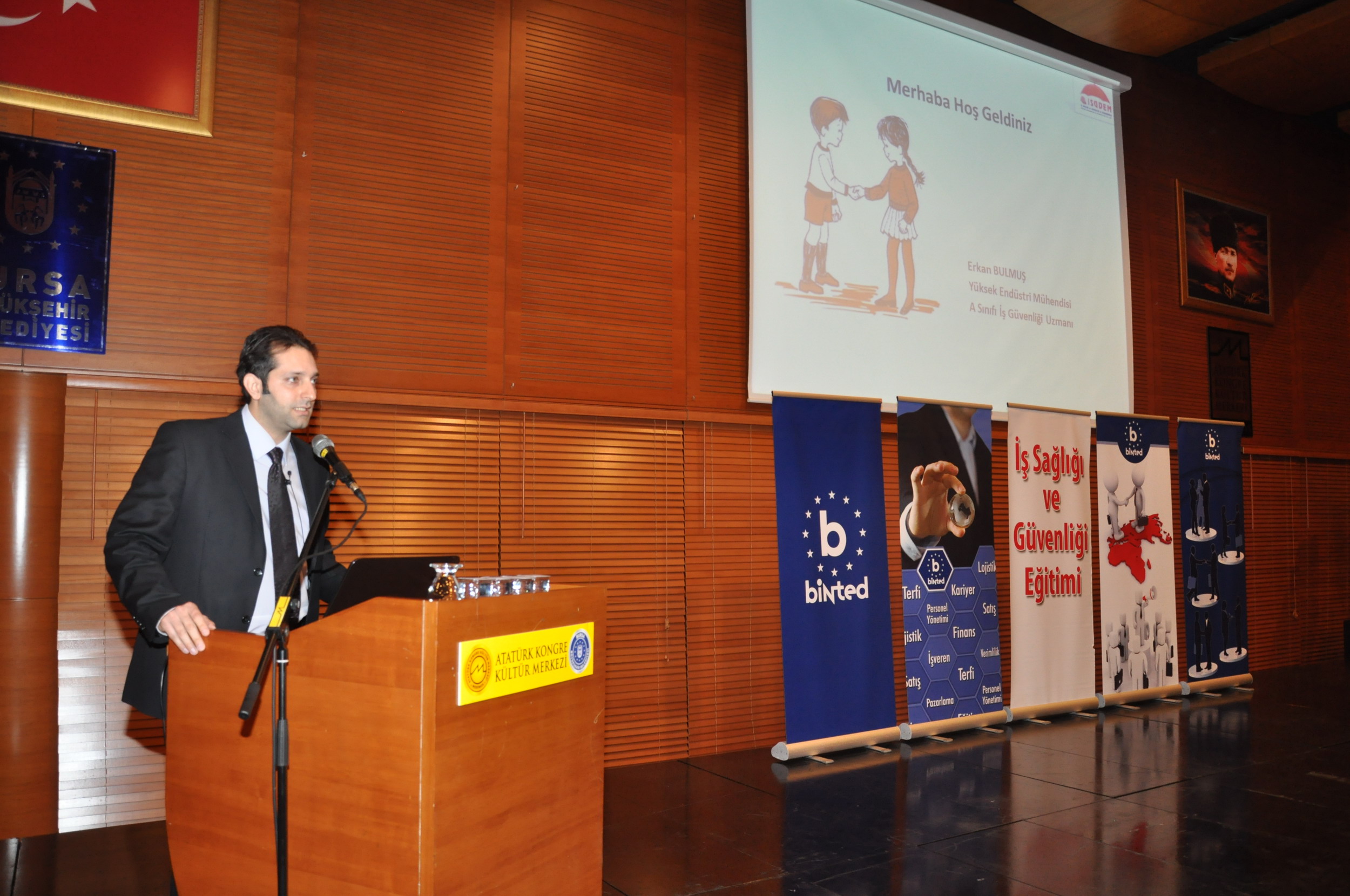 - Bursa Büyükşehir Belediyesi iştiraklerinden Binted tarafından belediyelerin ve şirketlerin bünyesinde çalışan personeline yönelik ‘İş Sağlığı ve Güvenliği’ konulu eğitim semineri düzenlendi.