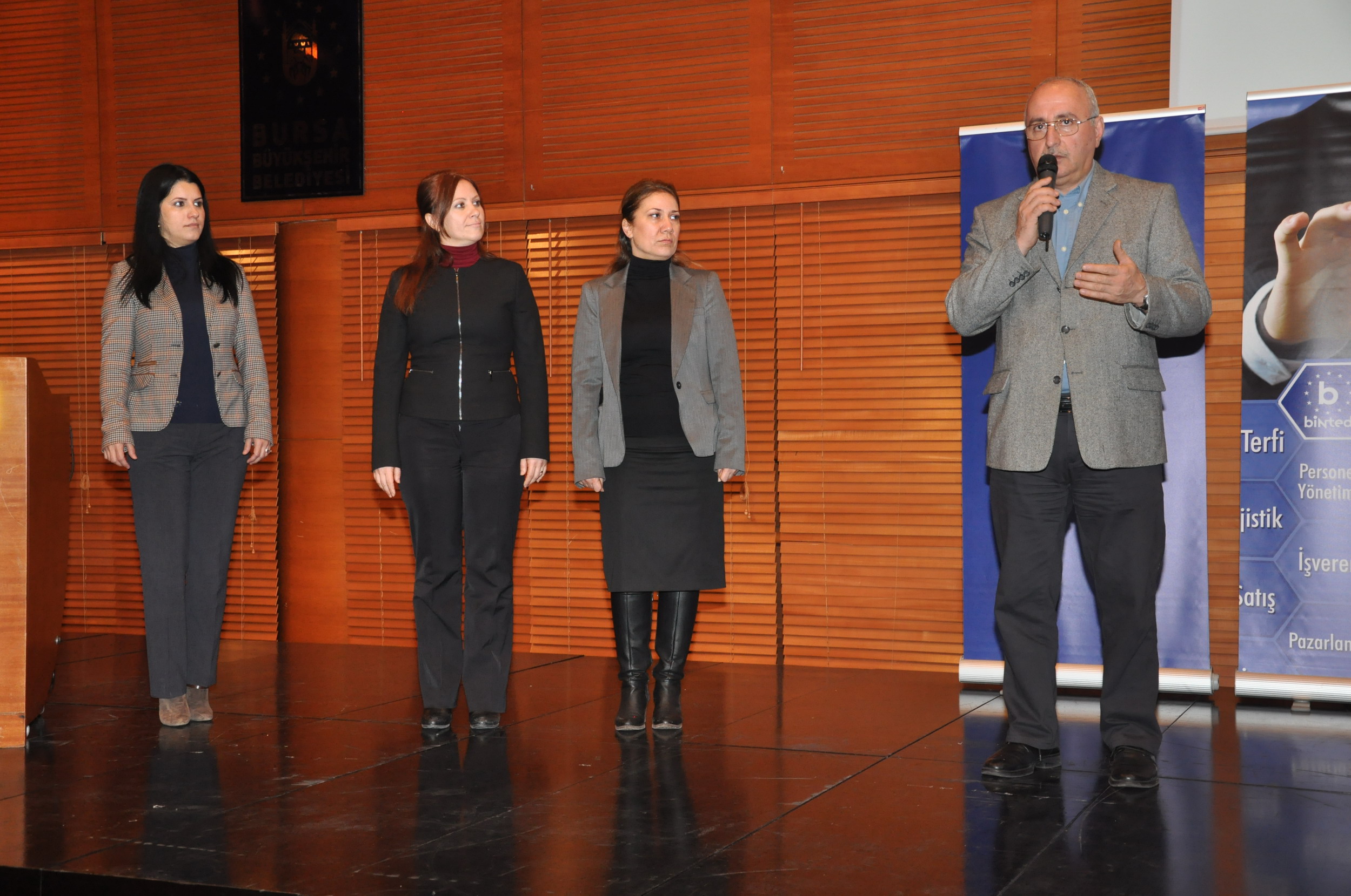 Bursa İnsan Kaynakları Taahhüt, Eğitim, Danışmanlık Hizmetleri, İmar İnşaat ve Tic. Ltd. Şti. (Binted) tarafından Atatürk Kongre Kültür Merkezi (Merinos AKKM) Hüdavendigar Salonu’nda iki oturum halinde düzenlenen eğitime, Büyükşehir Belediyesi Başkan Danışmanı ve Binted Ortaklar Kurulu Başkanı Semih Pala, Binted Genel Müdürü Birgül Yıldız Günay, Binted yöneticileri ve personeli katıldı.