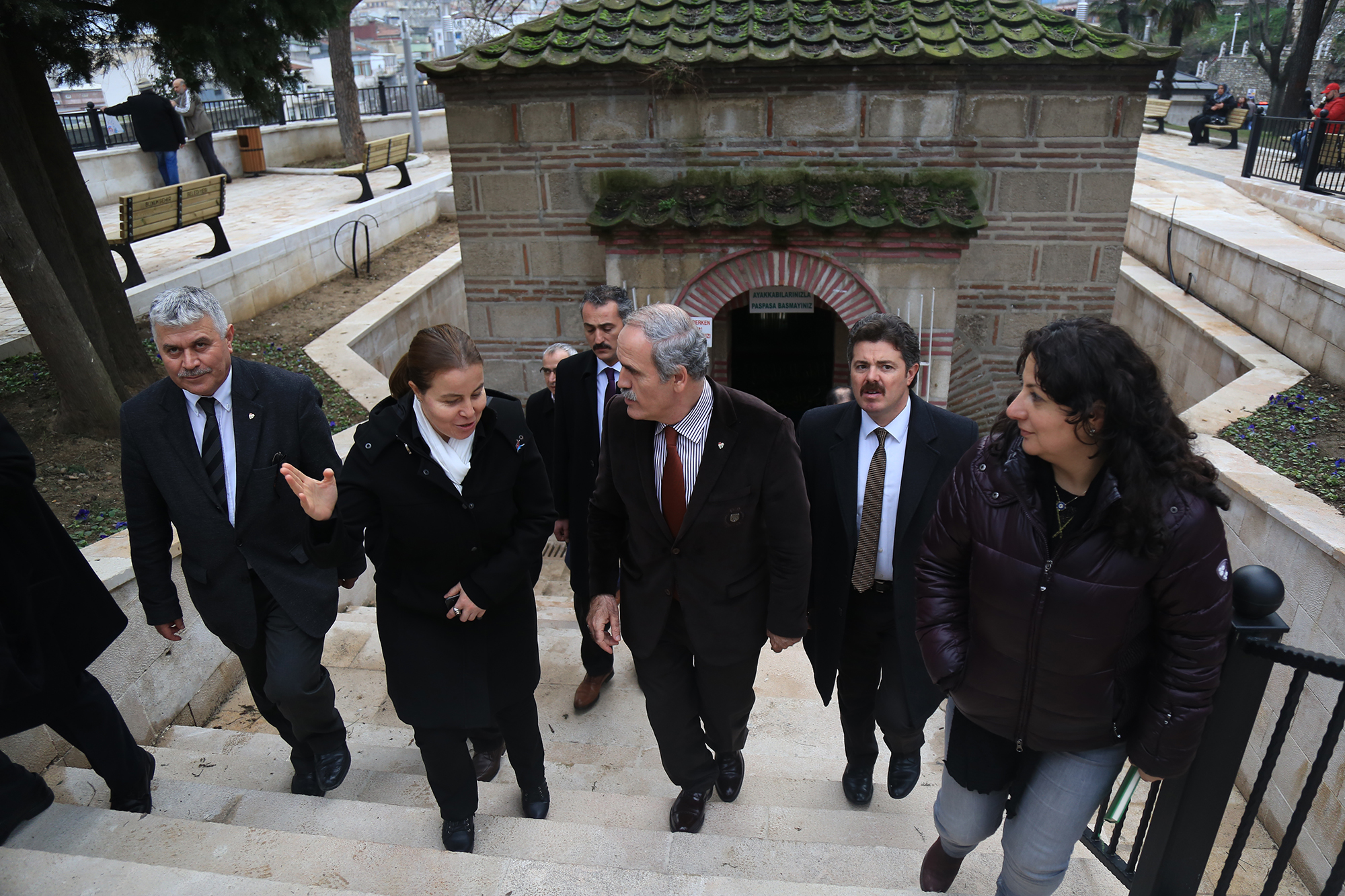 Osmanlı İmparatorluğu’na 130 yıl başkentlik yapan, sahip olduğu ruhaniyetli kimliği nedeniyle Bursa dışında ölenlerin de aralarında bulunduğu 6 padişah ve 20 şehzadenin ebedi istirahatgahı olan Bursa’da ecdat yadigarı eserler bir bir ayağa kaldırılırken, türbeler de ecdada yakışır hale getirilmeye devam ediyor. Arşivlere 16’ncı yüzyılda yaşadığı bilinen iyi okçuluğuyla ünlenen ve Okçu Baba olarak anılan Nusret Paşa’nın Saltanat Kapı karşısında bulunan türbesinin çevresi de Büyükşehir Belediye tarafından yeniden düzenlendi. Türbe çevresindeki zemin özel taşlarla döşenirken, yerleştirilen oturma grupları ile bölgele bir anlamda yeni bir meydan kazandırılmış oldu.