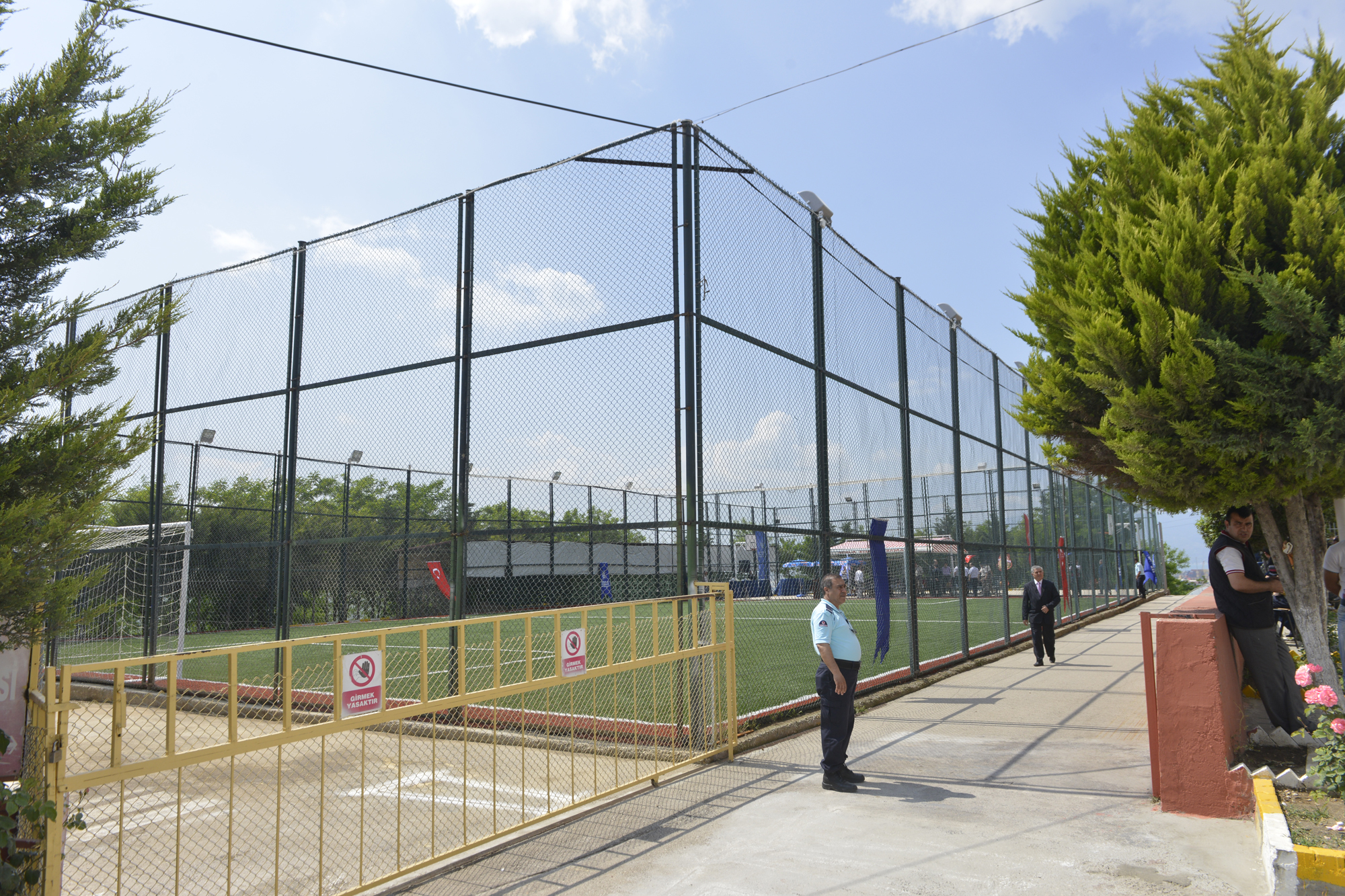 Bursa’nın spor kenti olması hedefiyle geçtiğimiz dönem eğitim kurumları, amatör kulüpler ve şehrin farklı noktalarına 150’nin üzerinde spor tesisi kazandıran Büyükşehir Belediyesi, yeni dönemin ilk spor tesisini Gemlik Açık Ceza İnfaz Kurumu’na kazandırdı. Gemlik Açık Ceza İnfaz Kurumu bahçesindeki engebeli toprak alanı suni çim kaplanıp, aydınlatma sistemleriyle modern bir futbol sahasına dönüştürüldü. Mahkumlara daha sağlıklı ortamda spor yapma imkanı sunan tesis, Gemlik Kaymakamı Cahit Işık, Büyükşehir Belediyesi Başkanvekili Abdullah Karadağ, Gemlik Belediye Başkanı Refik Yılmaz, Gemlik Cumhuriyet Başsavcısı Mehmet Ayaz, Gemlik Açık Ceza İnfaz Kurumu Müdürü Orhan Gökçek ile mahkumların da katıldığı törenle hizmete açıldı.