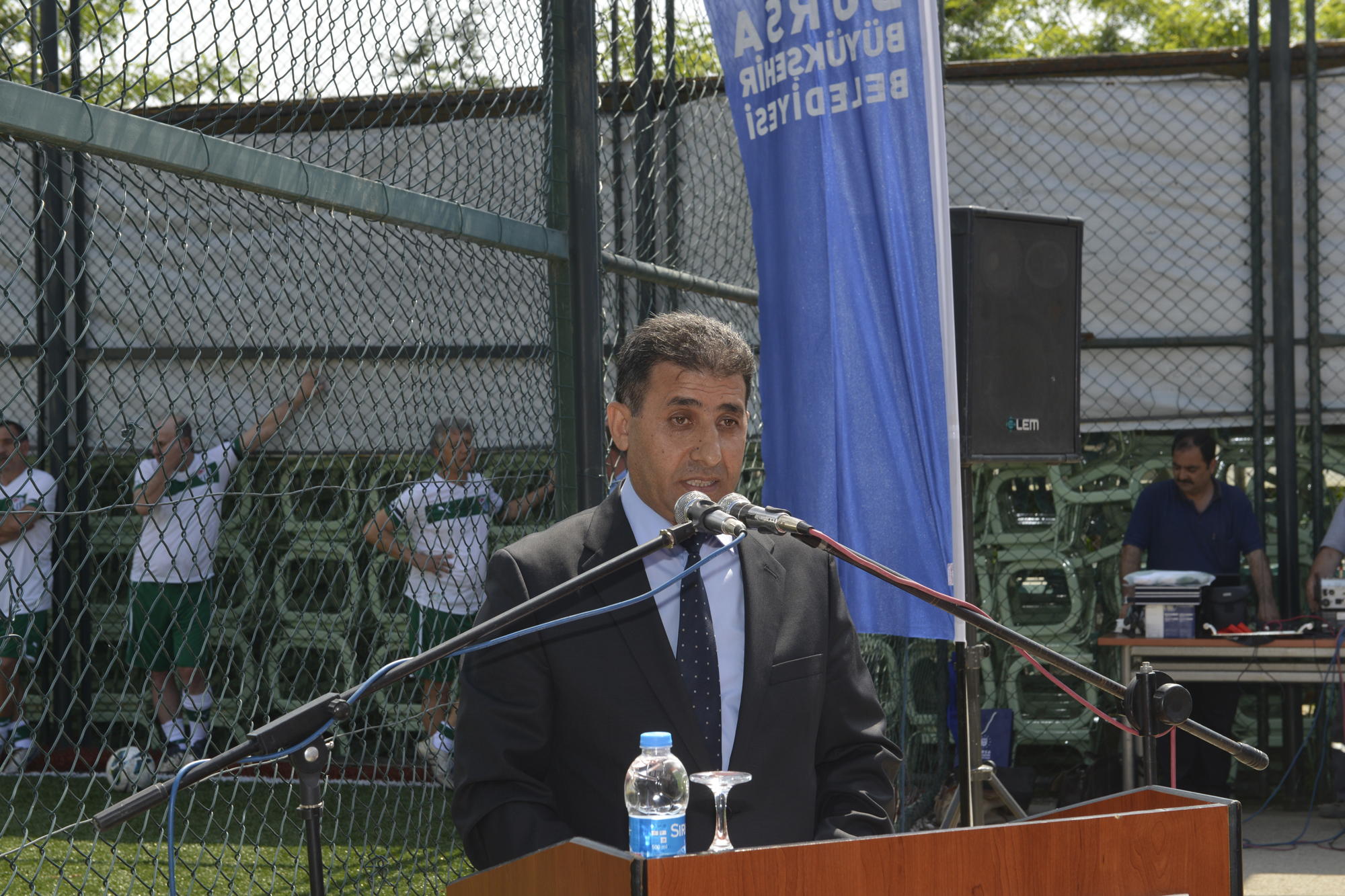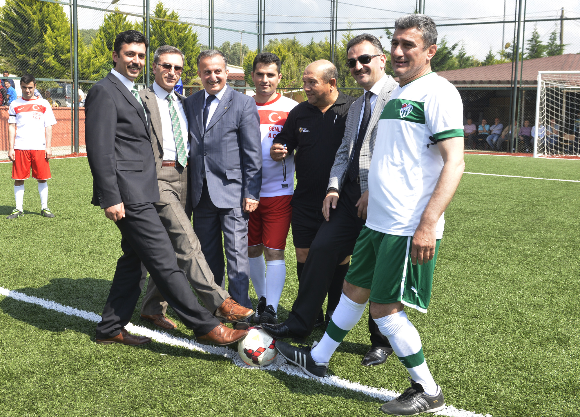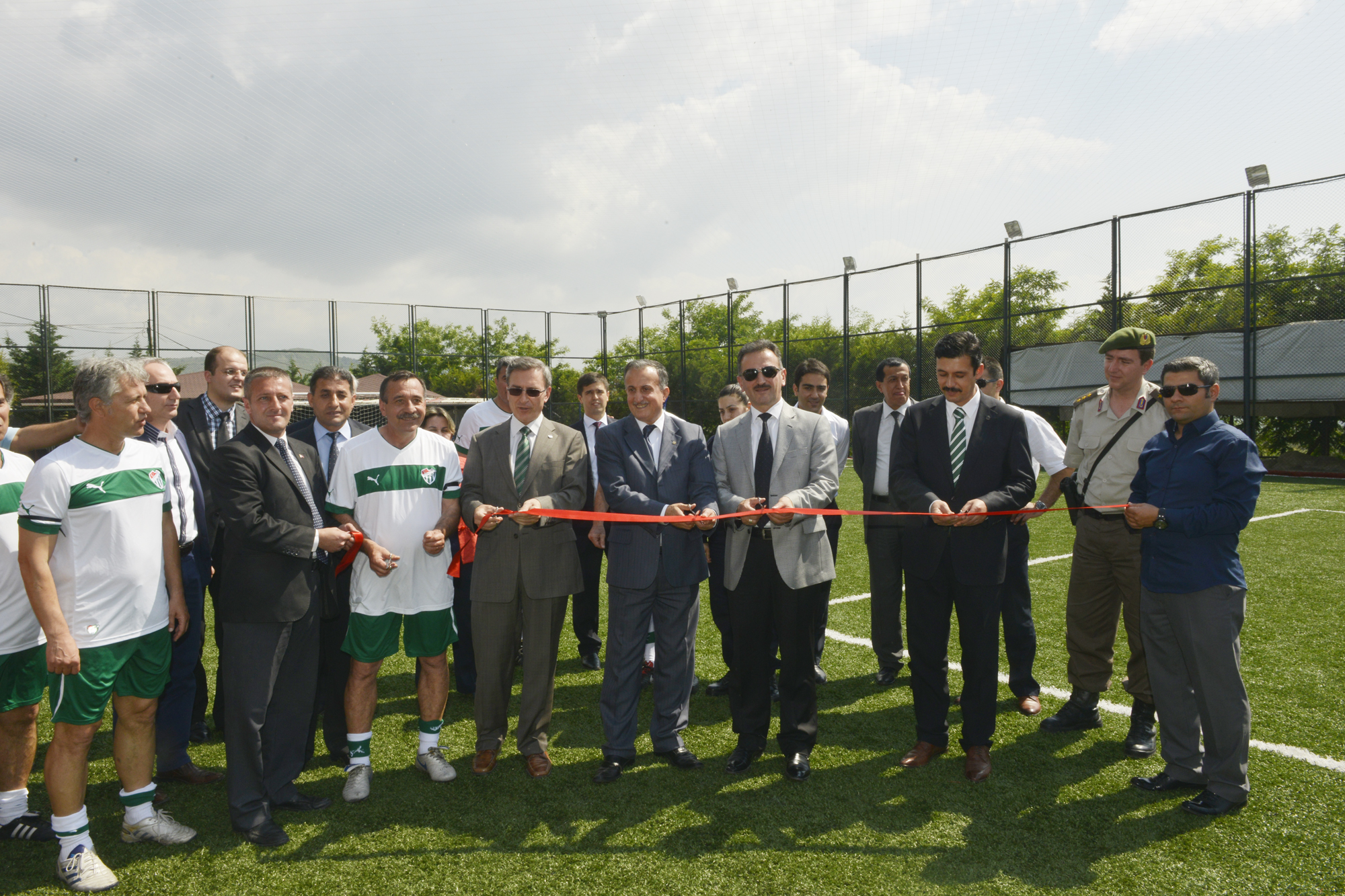 Konuşmaların ardından sahanın açılış kurdelesi kesilirken, Bursaspor şöhretler karması ile mahkumlar arasında oynanan ilk maçın başlama vuruşunu Büyükşehir Belediyesi Başkanvekili Abdullah Karadağ ile protokol üyeleri yaptı.