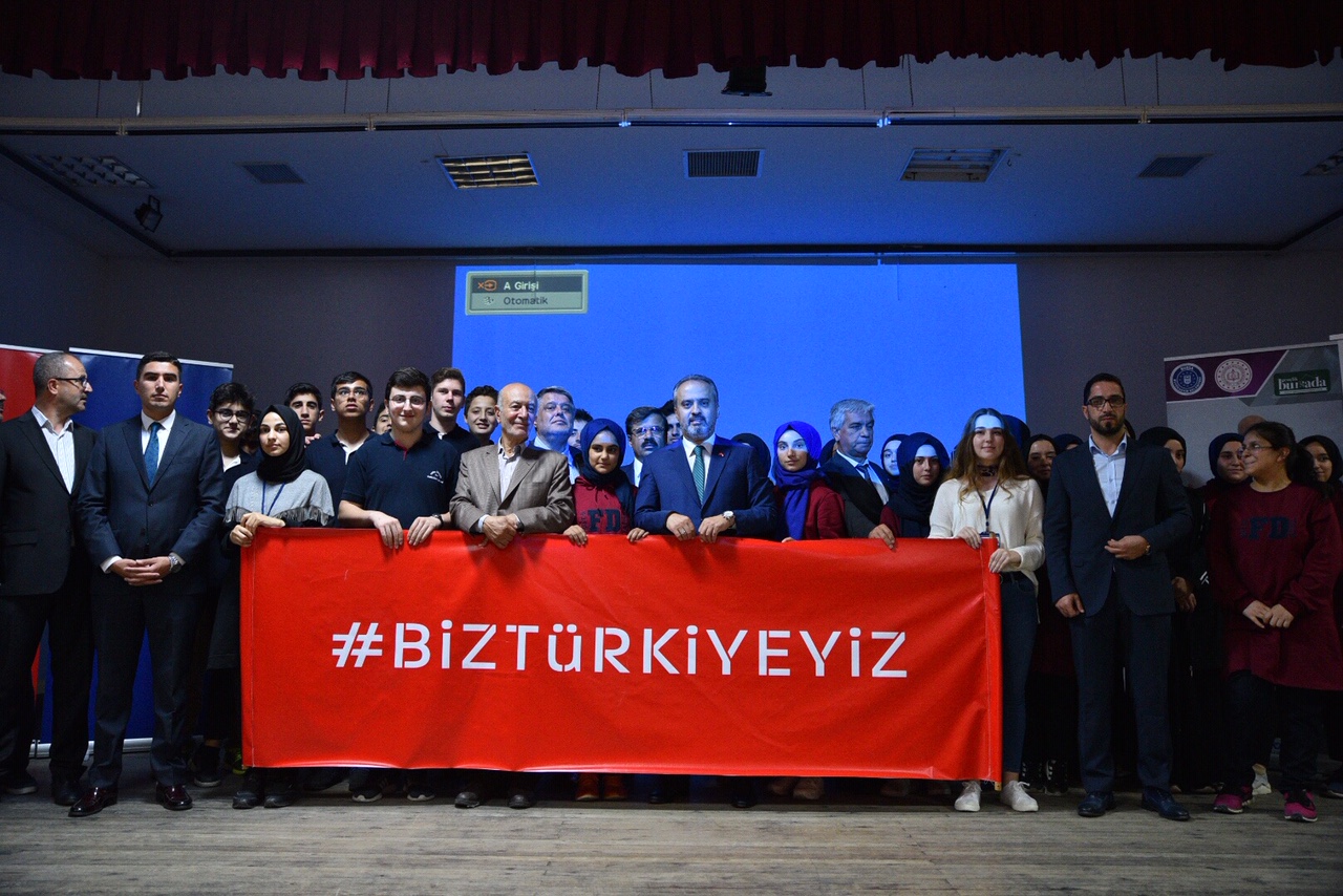 BURSA – Bursa Büyükşehir Belediye Başkanı Alinur Aktaş, ‘Yakın Dönem Fikir Adamları’ programı nedeniyle bir araya geldiği gençlere, geleceklerine dair hedef belirlemeleri ve bu hedef doğrultusunda da heyecanla çalışmalarını tavsiye etti. Etkinlikte, “Biz Türkiye’yiz” mesajı verildi.