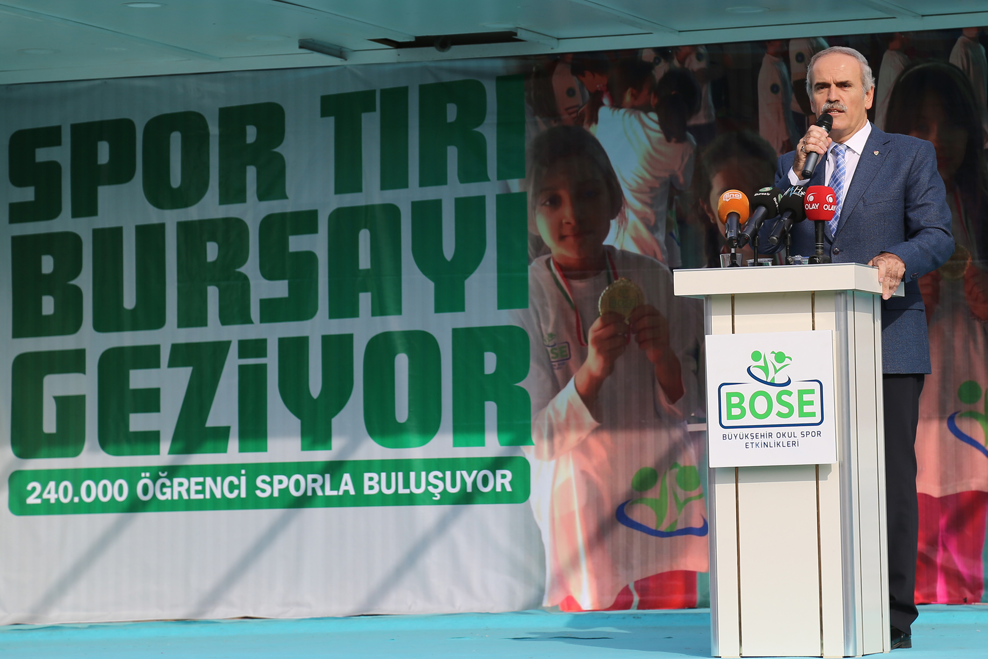 BURSA - Bursa Büyükşehir Belediyesi’nin Türkiye Okul Sporları Federasyonu ve İl Milli Eğitim Müdürlüğü işbirliğiyle bu yıl üçüncüsünü düzenlediği Büyükşehir Okul Spor Etkinlikleri (BOSE), Merinos Parkı’nda yapılan açılış töreniyle start aldı. Büyükşehir Belediye Başkanı Recep Altepe, geçen yıl yapılan organizasyonda 17 ilçede 225 bin öğrenciyi sporla buluşturduklarını hatırlatarak, bu yılki hedeflerinin 245 bin öğrenci olduğunu açıkladı.