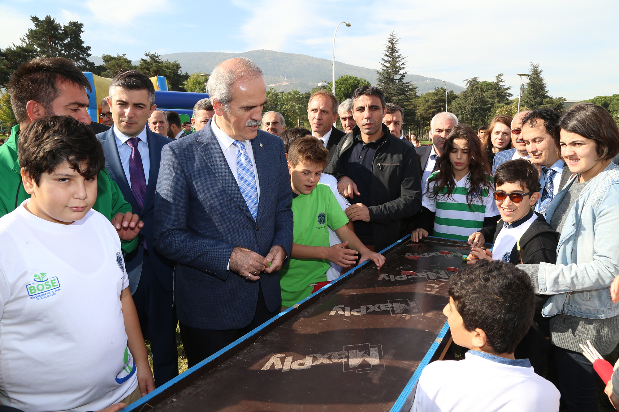 Etkinliklerin açılışında konuşan ve Bursa’nın tarih başkenti olmasının yanında bir spor kenti olması için de gereken her türlü fiziki yatırımı bir bir gerçekleştirdiklerini belirten Büyükşehir Belediye Başkanı Recep Altepe, yeni neslin spora yönlendirilmesini Bursa ve Türkiye’nin geleceği açısından kaçınılmaz gördüklerini söyledi. Okullarda sporun canlanması ve çocukların spora olan ilgisini daha da artırmak hedefiyle düzenledikleri etkinliklerde geçen yıl 225 bin öğrenciyi sporla buluşturduklarını söyleyen Başkan Altepe, bu yılki hedeflerinin 245 bin öğrenci olduğunu açıkladı. Rengarenk giysileriyle Merinos Parkı’nı adeta bayram yerine çeviren çocuklara seslenen Başkan Altepe, “Yarının yöneticileri olan gençler, sizler bizim gözbebeğimizsiniz. En güzel şekilde yetişmeniz, sporcu, ahlaklı, bilgi yüklü ve vizyon sahibi ender birer birey olmanız için çalışıyoruz. Bu nedenle her yıl hedefi daha da artırarak, Türkiye’ye örnek spor şenlikleri düzenliyoruz. İstiyoruz ki daha bu yaşta spor yapmanın keyfine varın. Bu ayrıcalığı yaşayın. Bu nedenle tüm okulların eksikliklerini gideriyoruz. Gerekli görülen her yere spor alanları kazandırıyoruz. Çünkü her şey geleceğimiz olan siz gençlerimiz için. Bu güzel çalışmaya katkı sağlayan herkese teşekkür ediyorum. Hepinize iyi eğlenceler diliyorum” dedi.