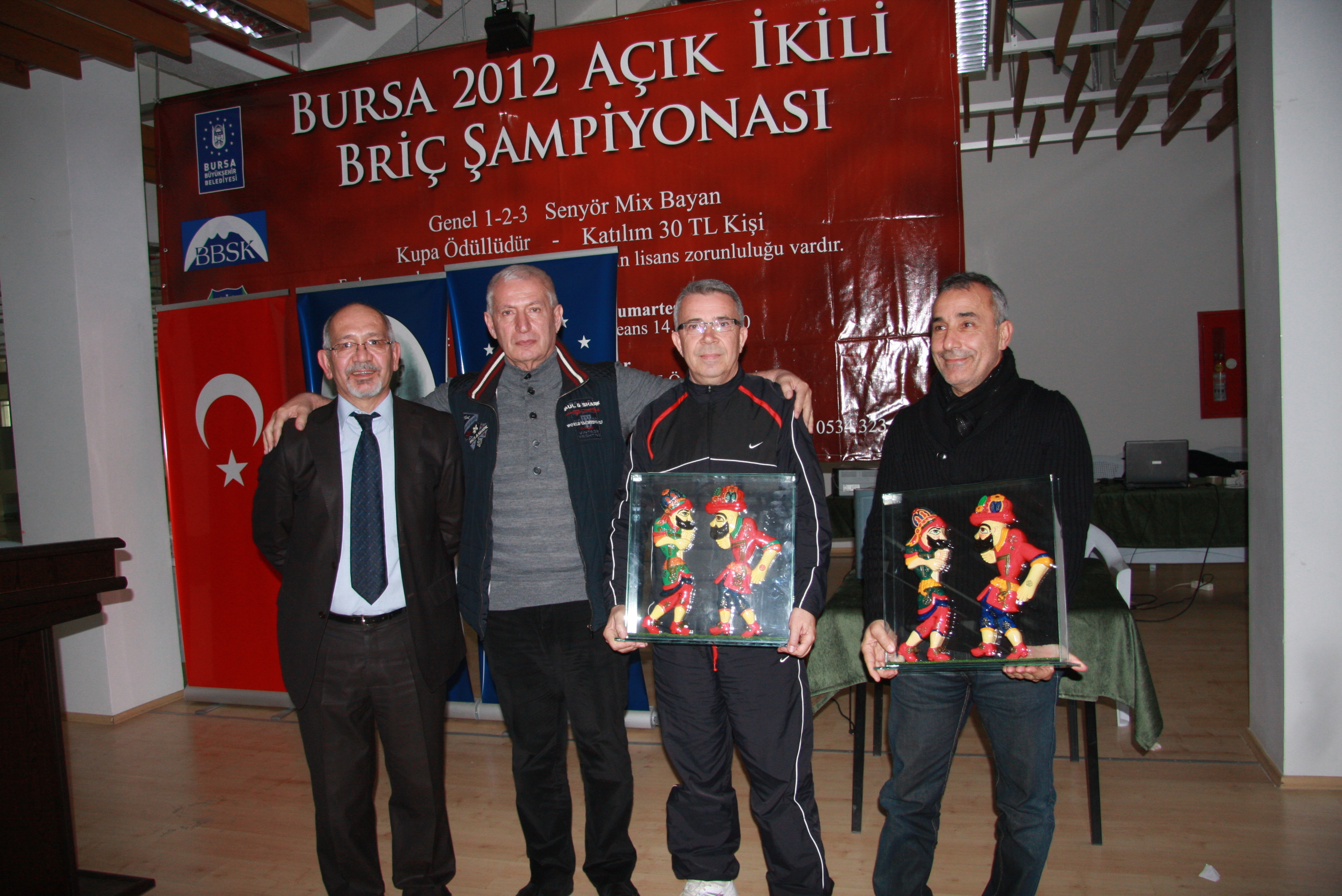 Bursa Briç Spor Kulübü tarafından Büyükşehir Belediyesi´nin katkılarıyla düzenlenen 2012 Bursa Açık İkili Briç Şampiyonası, haftasonu nefes kesen karşılaşmalara sahne oldu. Atatürk Kongre Kültür Merkezi´nde (Merinos AKKM) gerçekleştirilen ve 2 gün süren organizasyonda Türkiye´nin çeşitli illerinden 52 çift mücadele etti. Renkli görüntülere sahne olan organizasyonda açıkta Bursalı briççiler Ramazan Çınar ile Servet Karayılanoğlu çifti birinci oldu.