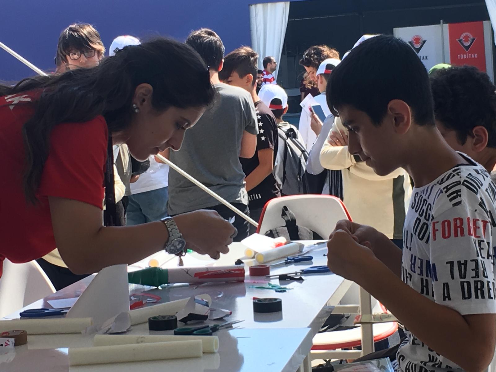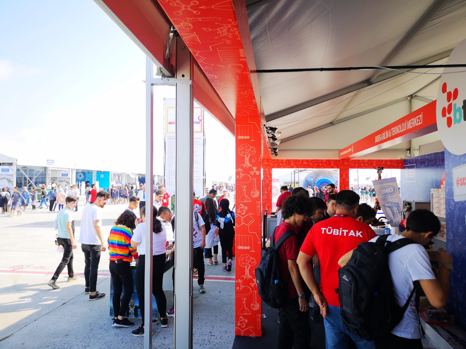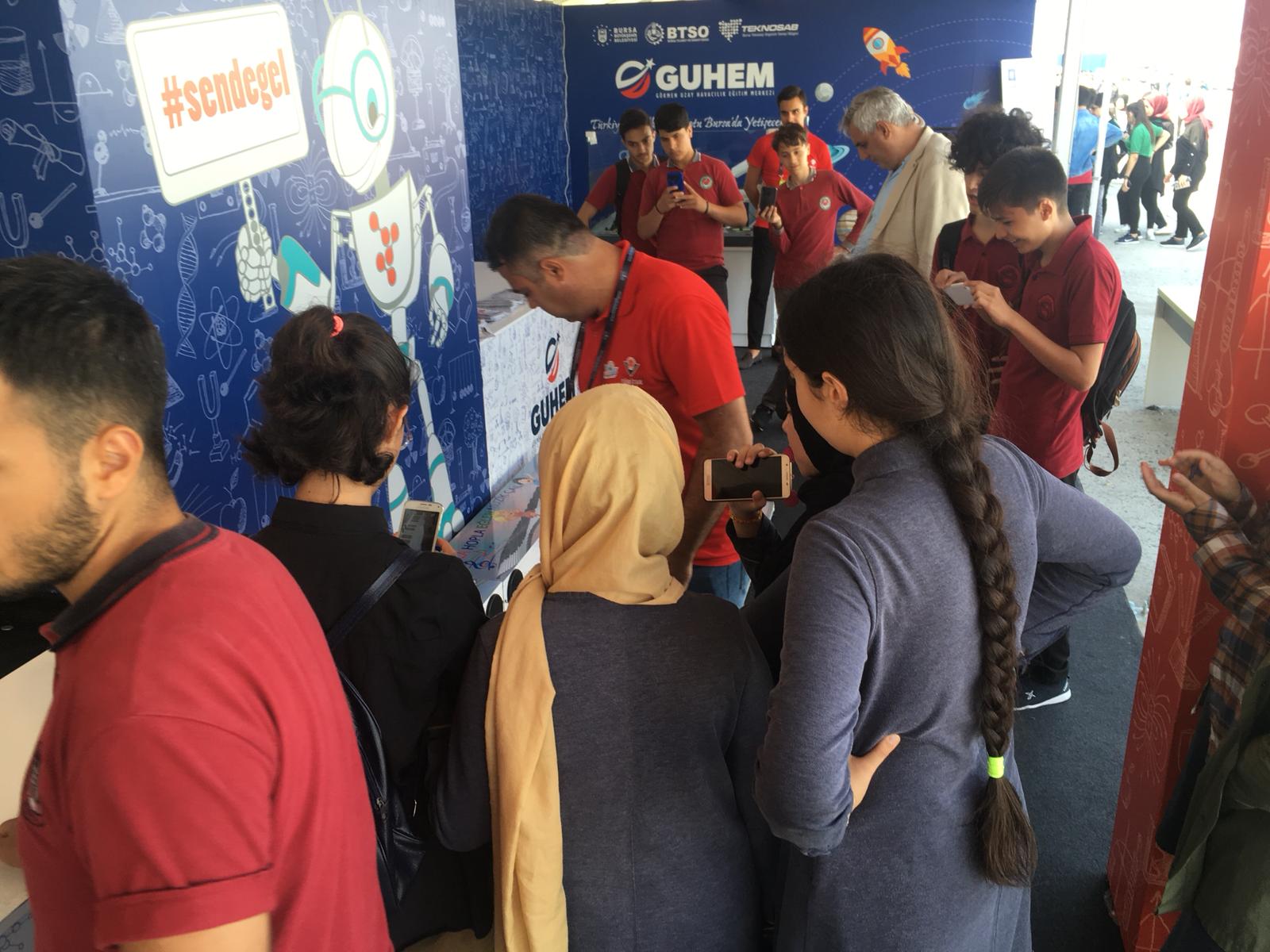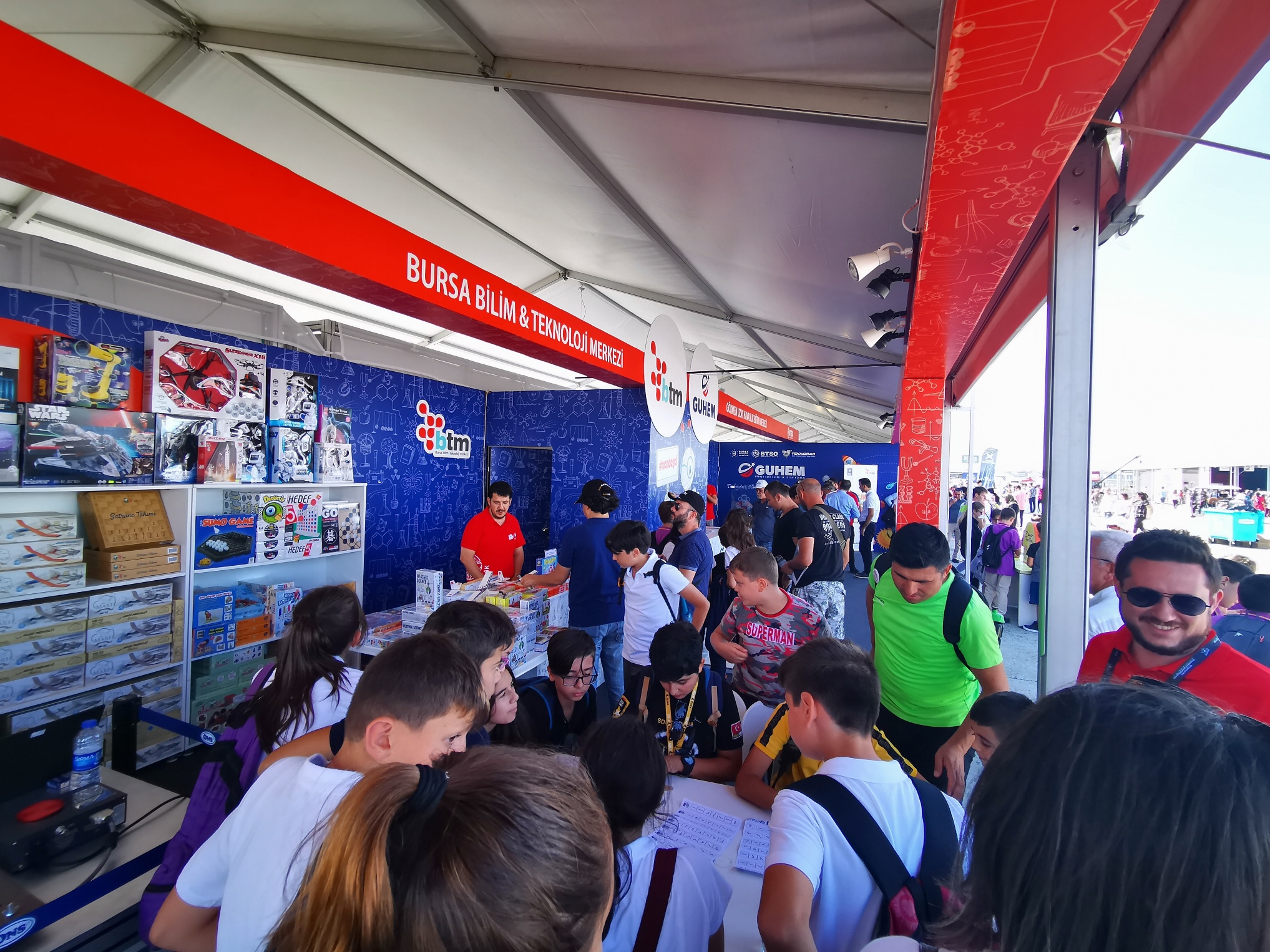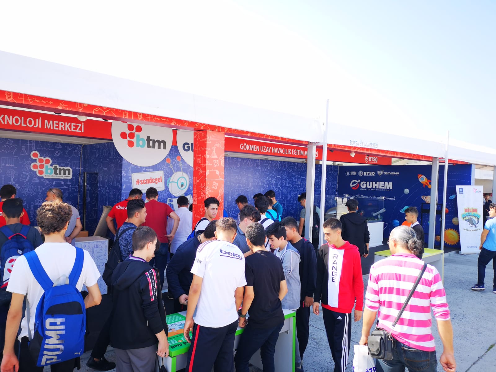 BURSA – Sanayi ve Teknoloji Bakanlığı ile Türkiye Teknoloji Takımı Vakfı (T3 Vakfı) öncülüğünde ülkenin önemli kurum, firma ve markalarının destekleri ile Atatürk Havalimanı’nda düzenlenen İstanbul Havacılık, Uzay ve Teknoloji Festivali (TEKNOFEST) ilk günden rekor ziyaretçi sayısına ulaştı. Kurum, kuruluş ve firmaların “milli teknoloji hamlelerinin” görücüye çıktığı festivale Bursa Bilim ve Teknoloji Merkezi (BTM) öğrencilerin bilimsel yeteneklerini geliştiren atölye çalışmaları ve kendi ürettiği yerli ve milli deney düzenekleri ile festivale renk kattı. Bursa BTM standını ziyaret edenler, deney düzeneklerini deneyimlemelerinin yanı sıra, merkezin organizasyonları ve faaliyetleri hakkında bilgi aldı. TÜBİTAK alanında bulunan BTM’nin standında yer alan Türkiye’nin ilk uzay ve havacılık temalı girişimi, Gökmen Uzay Havacılık ve Eğitim Merkezi (GUHEM)’in maketi de ilgi odağı oldu. Bursa Büyükşehir Belediyesi, TÜBİTAK ve BTSO işbirliğinde yapımı devam eden merkez, ziyaretçilerden tam not aldı. BTM standında ayrıca ONS Makinenin havacılık ve savunma sanayinde kullanılmak üzere ürettiği insansı robotları da ziyaretçilerinden yoğun ilgi gördü.