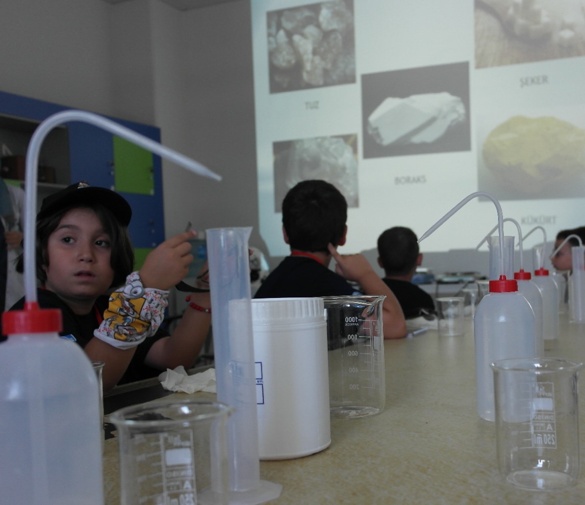 BTM’nin yaz programındaki ilk etkinliği olan Doğa Bilimleri Kampı renkli görüntülerle başladı. 8 Ağustos tarihine kadar sürecek olan kamp, 8-12 yaş gurubuna yönelik olarak düzenlendi. Kamptaki ilk günlerine, kayıt heyecanı ile başlayan geleceğin mucitleri, deniz topu ile tanışma oyununu oynadıktan sonra kendi kristal ağaçlarını büyüttüler. Beyazdan sarıya dönen sıvılar ve polimer kilden robot yapımı gibi atölye çalışmalarını da gerçekleştiren öğrenciler kamplarının ilk gününde bilim insanı olmanın keyfini doyasıya yaşadı.