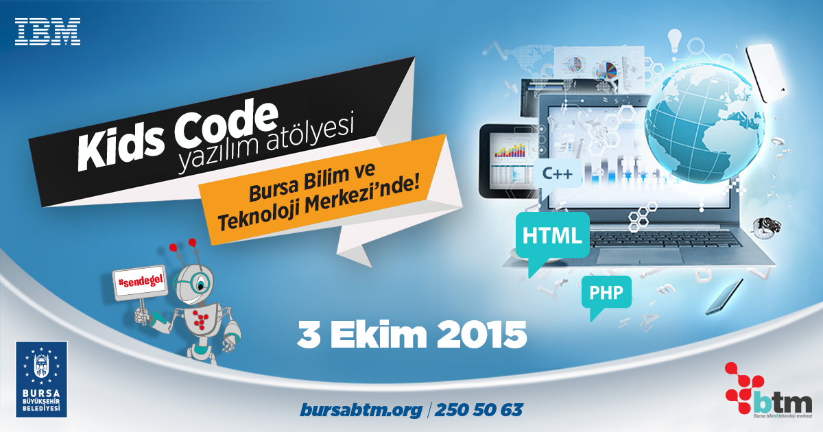 Tematik Atölyelere 3 Ekim’de IBM Kids Code Yazılım Atölyesi ile başlayan BTM, IBM ile kurumsal sosyal sorumluluk projesi kapsamında 50 katılımcı ile ücretsiz yazılım atölyesi gerçekleştirdi. Kodlama ve yazılım teknolojisi ile geleceğin bilişimcileri, web-sitesi tasarlama ve mobil uygulamaların alt yapısını öğrenerek, kodlamaya giriş yaptılar. Özellikle bilişim teknolojisine ilgi duyan çocukların seçildiği atölye çalışması sonrasında veliler ve çocuklar BTM&IBM işbirliğine teşekkür ederek, bu tarz etkinliklerin Bursalı bilim sever çocuklar için devam etmesini istediklerini söylediler.