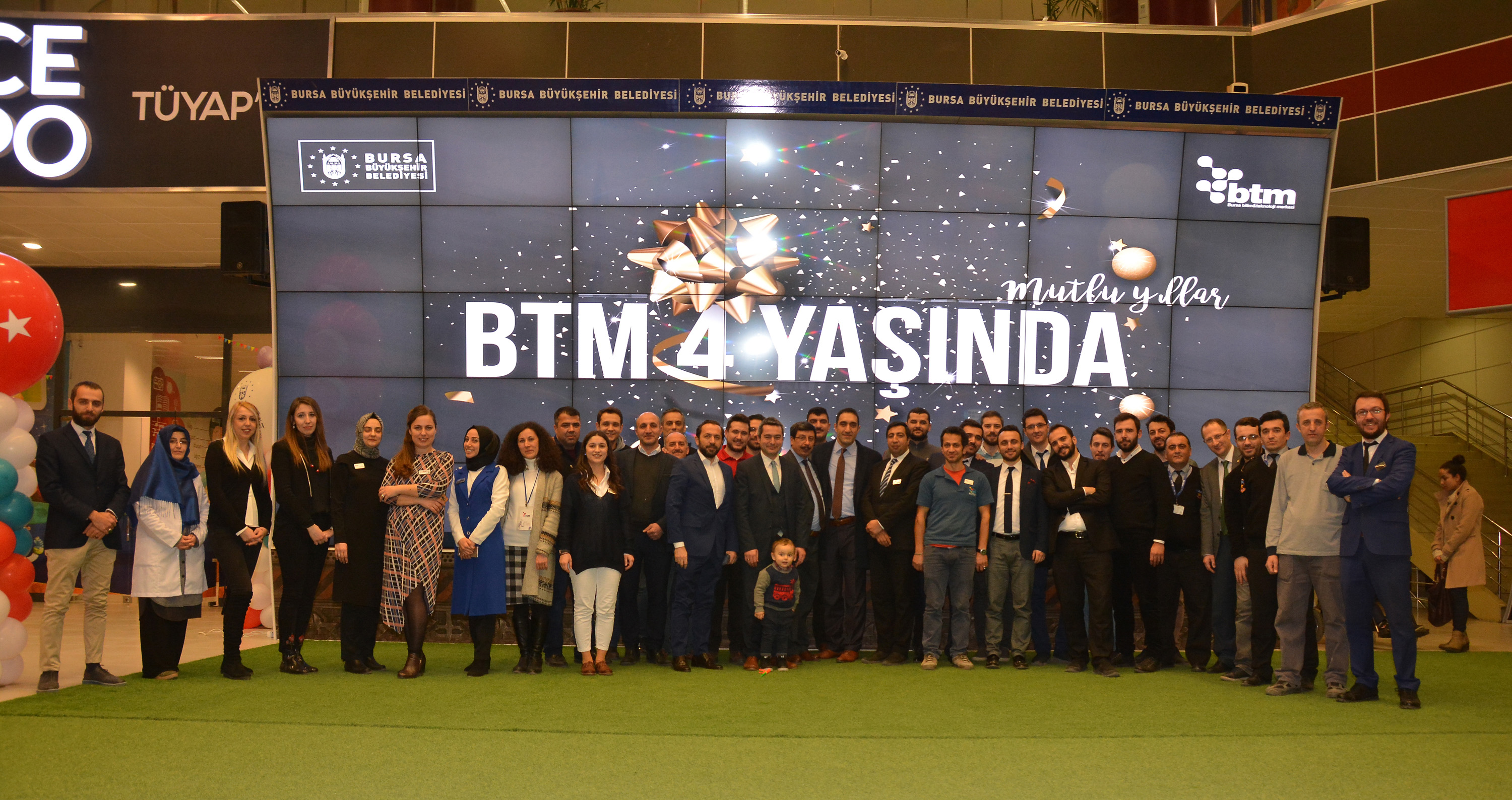 Çocuklar ve gençler başta olmak üzere tüm toplumun ilgisini bilim ve teknolojiye çekmek ve bilimsel konuları hem daha kolay anlaşılır hem de eğlenceli bir şekilde sunmak amacıyla geliştiren BTM’nin 4. kuruluş yıldönümü, Bursa’nın iş dünyası ile bilim insanlarını bir araya getirdi. Bursa Büyükşehir Belediyesi Başkanvekili Abdullah Karadağ, Uludağ Üniversitesi Rektörü Profesör Doktor Yusuf Ulcay, Bursa Kültür A.Ş. Yönetim Kurulu Başkanvekili Fehim Ferik ile BTM çalışanları ve bilim meraklıları, BTM’nin 4. yıl gururunu hep birlikte yaşadı.