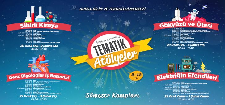 - BURSA BÜYÜKŞEHİR BELEDİYESİ BİLİM VE TEKNOLOJİ MERKEZİ’NDE YAPILACAK SÖMESTR KAMPLARI KONTENJANLARI ETKİNLİKTEN GÜNLER ÖNCE BİLİM SEVERLERİN YOĞUN İLGİSİ İLE DOLDU!