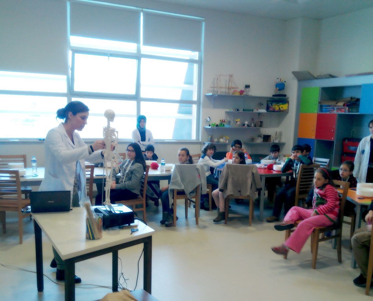 Geleceğin doktoru olmaya aday 23 öğrenci atölyede kas, eklem ve kemik adam maketi yaptı, kemik gelişiminde etkili olan besinlerin içerisinde bulunan glikoz ve protein gibi organik maddelerin tayini deneyini gerçekleştirdi. Atölyede, iskelet sisteminin detaylarını eğlenerek öğrenen çocukların mutluluğu da yüzlerine yansıdı.