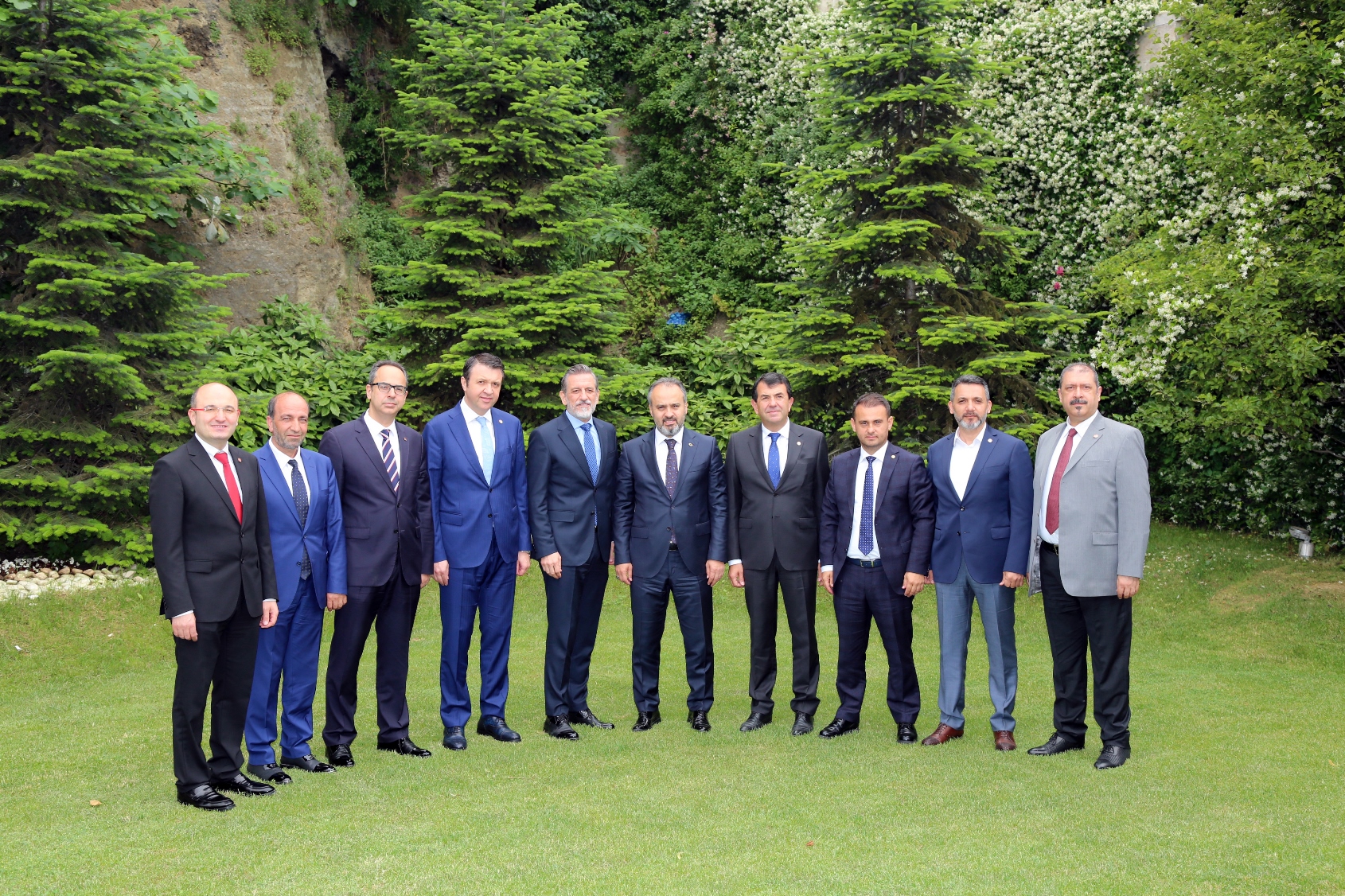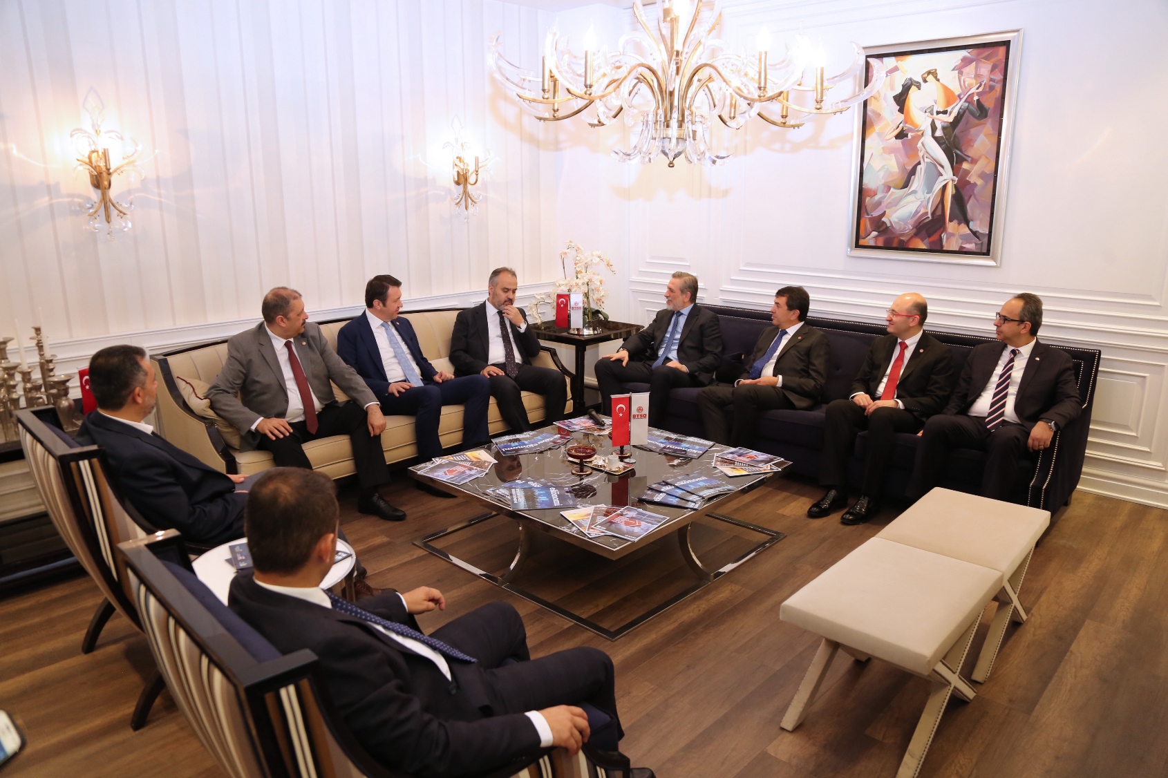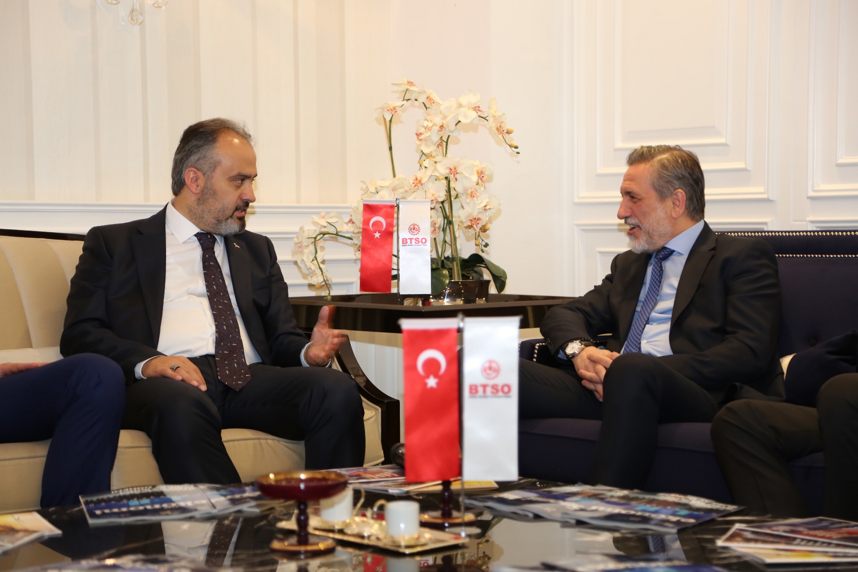 BURSA - Büyükşehir Belediye Başkanı Alinur Aktaş, seçimlerde güven tazeleyen Bursa Ticaret ve Sanayi Odası (BTSO) Başkanı İbrahim Burkay, Meclis Başkanı Ali Uğur ve yönetim kurulu üyelerini ziyaret ederek, görevlerinde başarılar diledi.
