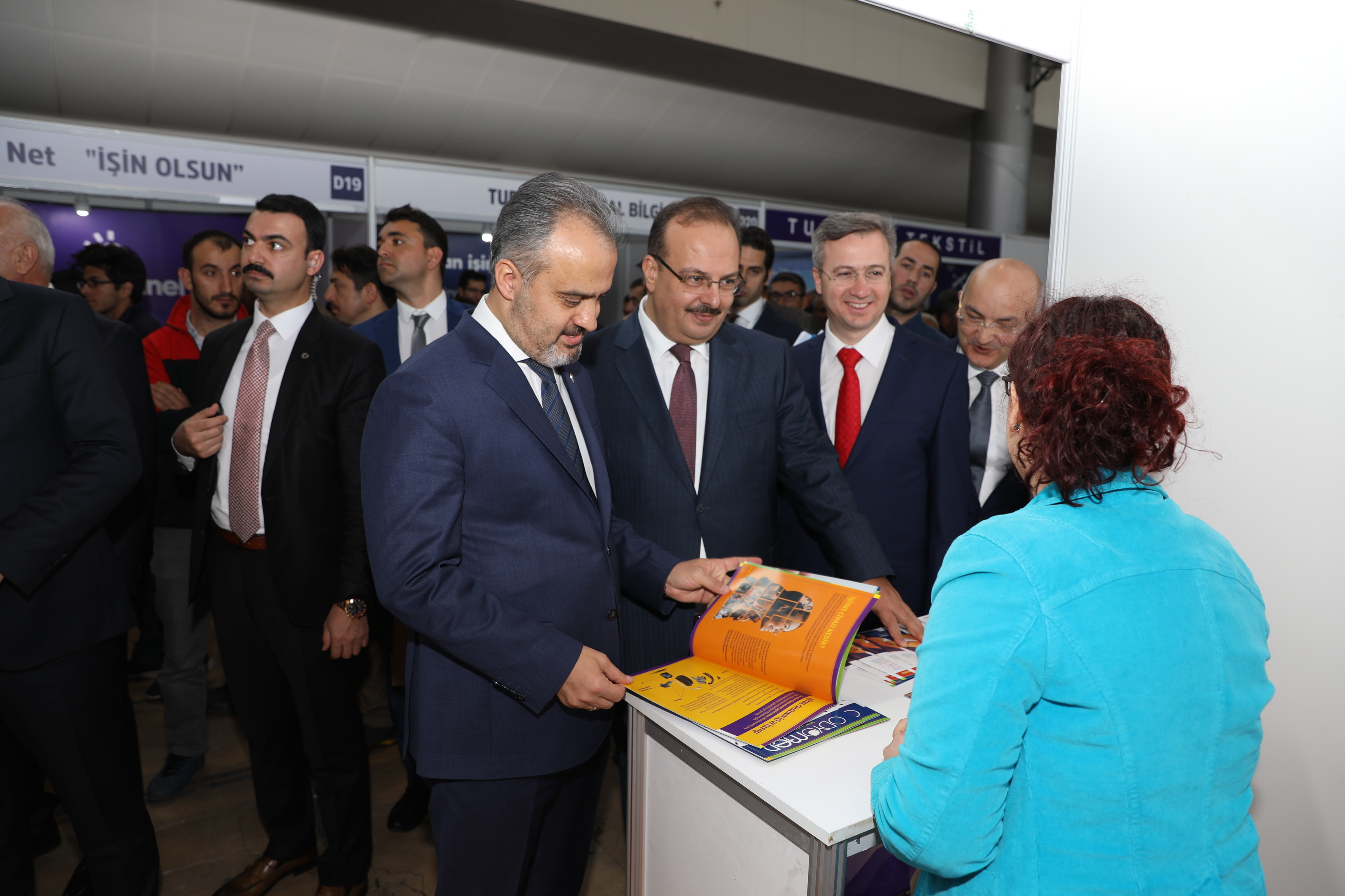 Bursa Büyükşehir Belediye Başkanı Alinur Aktaş, açılış töreninde yaptığı konuşmada, bir taraftan güney hattında ülkenin bekası için önemli bir mücadele verilirken diğer taraftan da yeni yatırımlarla istihdam sahaları açılmaya gayret edildiğini söyledi. Özellikle iş arayan gençlere tavsiyelerde bulunan Başkan Aktaş, “İş arayan gençlerimizde belediyeye veya kamu kuruluşlarında işe girmek gibi bir beklenti var. Benimde en fazla karşılaştığım talep bu. Ancak belediye benim şahsi mülküm değil, ortak bir değer. Belirli sürelerde buralarda görev yapılır, vakti gelince de başkaları çalışır. Bizler sadece bu kurumların emanetçileriyiz. Çalışılacak tek yer belediyeler veya kamu kurumları değil. Son yıllarda özel sektörde de gayet güzel işlere imza atılıyor. Üniversiteyi bitiren veya bitirmeyen, mesleği olan veya olmayan bu noktada projeksiyonunu biraz daha geniş tutmalı. Bu buluşmanın da ana gayesi bu. Bu buluşmalar sayesinde birilerinin hayatına dokunabilirsek ne mutlu bize” dedi.