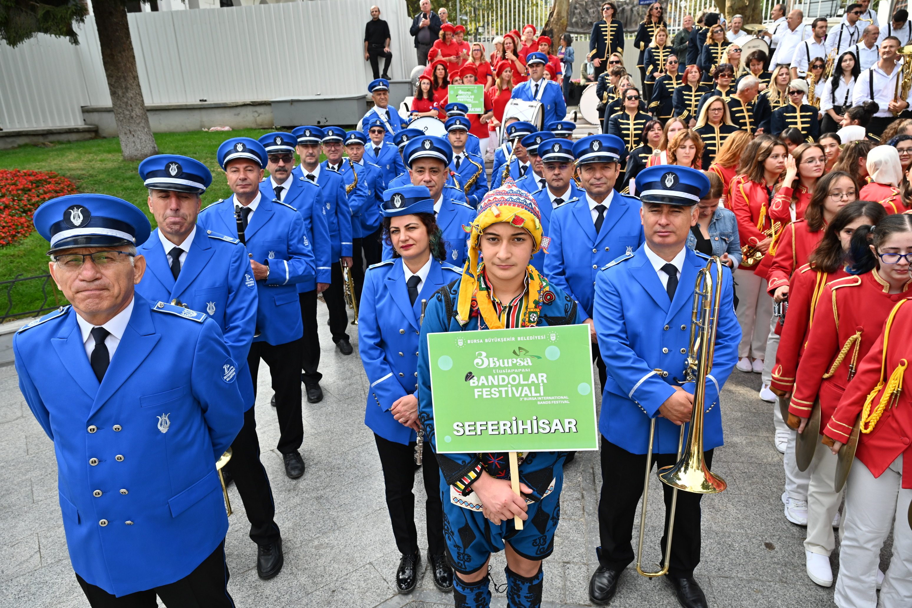Düzenlediği birbirinden farklı etkinliklerle Bursa’nın kültür sanat hayatına renk katan Bursa Büyükşehir Belediyesi, 3. Uluslararası Bandolar Festivali’nde yurt içi ve yurt dışından gelen bando takımlarına ev sahipliği yapıyor. Festival kapsamında Azerbaycan Savunma Bakanlığı Haydar Aliyev adına Harp Enstitüsü Orkestrası, Bursa Barış Kadın Bandosu, Bolu Belediye Bandosu, Bosna Hersek Rudarska Glabza Kakanj Bandosu, Bursa Büyükşehir Belediye Bandosu, Bursa Kız Lisesi Bandosu, Edirne Belediye Bandosu, Gaziantep Büyükşehir Belediye Bandosu, Gemlik Belediye Ritim Bando Takımı, İstanbul Büyükşehir Belediye Bandosu, Kazakistan Cumhuriyeti Devlet Servisi Cumhurbaşkanlığı Bandosu, Mudanya Belediye Bandosu, Mustafakemalpaşa Belediye Bandosu ve Seferihisar Belediye Bandosu Bursalılarla buluştu. Atatürk Anıtı’na çelenk sunulması ile başlayan etkinlikte tüm bandolar hep birlikte İstiklal Marşı’nı icra etti. Ardından başlayan kortej yürüyüşünde İnönü ve Cumhuriyet Caddesi bando ekiplerinin marşlarıyla yankılandı. Vatandaşların da alkışlarıyla tempo tuttuğu yürüyüşün ardından 15 Temmuz Demokrasi Meydanı’nda tören düzenlendi.