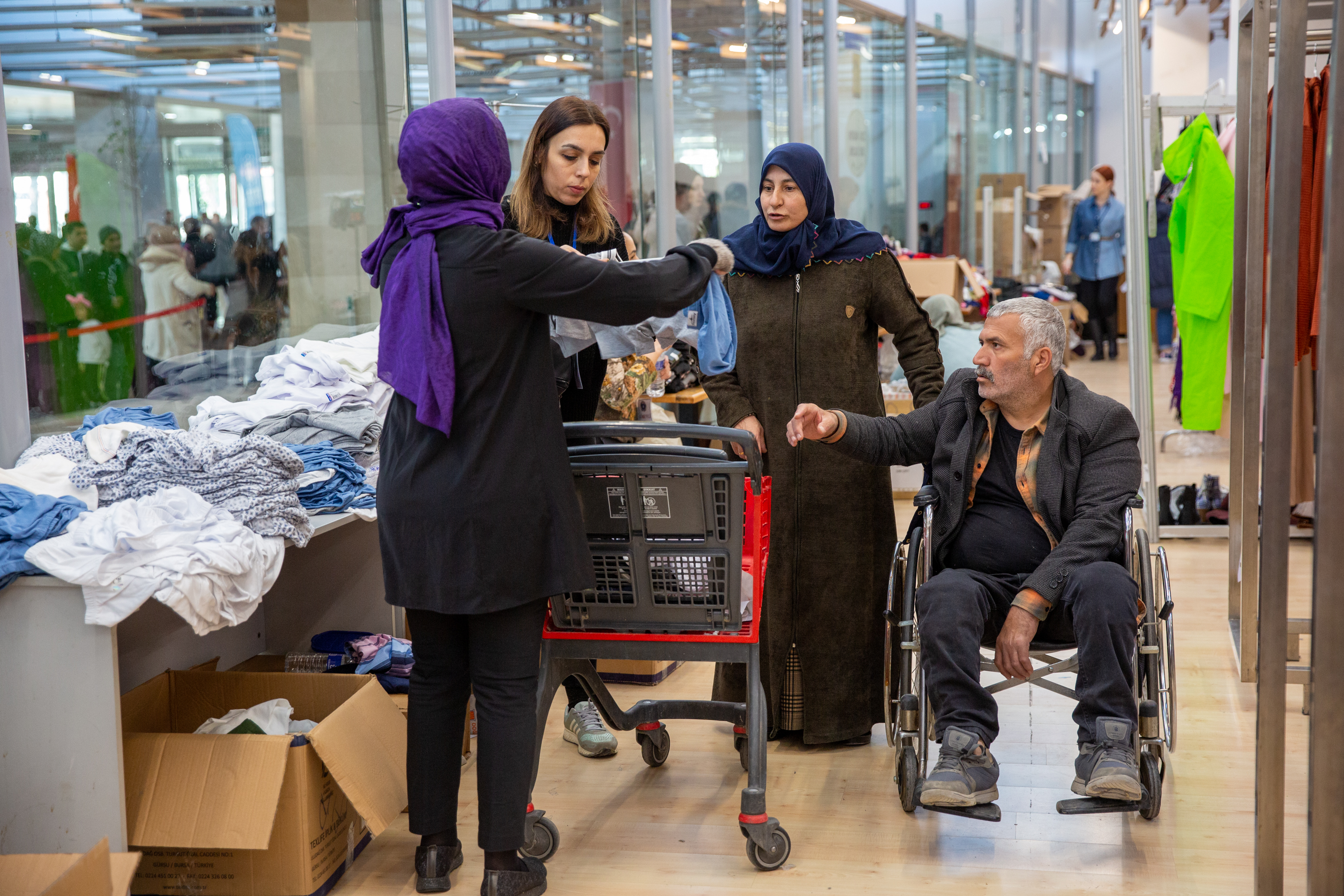BURSA – Bursa Büyükşehir Belediyesi tarafından kente gelen depremzedelerin ihtiyaçlarının karşılanması için kurulan kardeşlik mağazasının tek sermayesi sevgi. Hayırseverlerin getirdiği yeni kıyafetler, hijyen malzemeleri ve erzak kolileri ‘mağaza konseptiyle’ ihtiyaç sahipleri ile buluşturulurken, alışveriş için gelen afetzedelerin çocuklarına da uzmanlar tarafından ‘oyunlar eşliğinde’ psikolojik destek sağlanıyor.